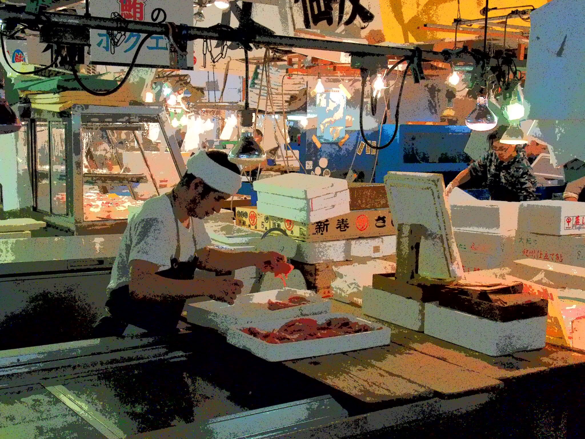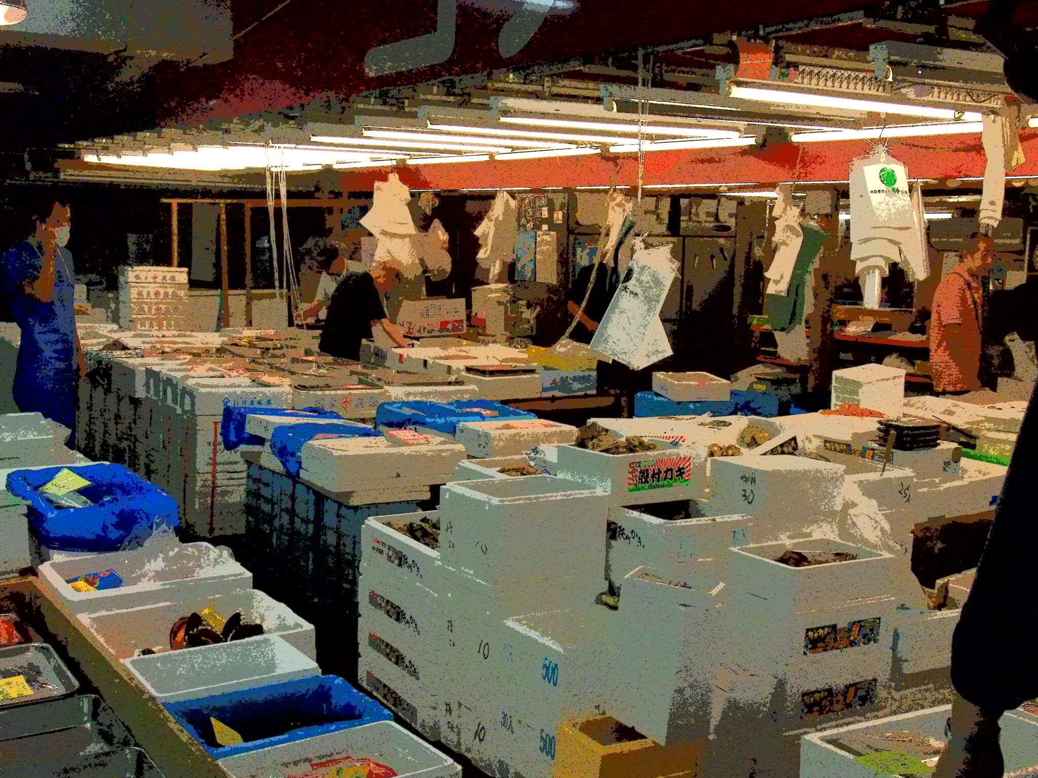 Some more fun facts about Tsukiji, it employees between 60-65,000 people; more than 400 varieties of fish or sold here and they process at least 700,000 metric tons of fish per year (source: Wikipedia).