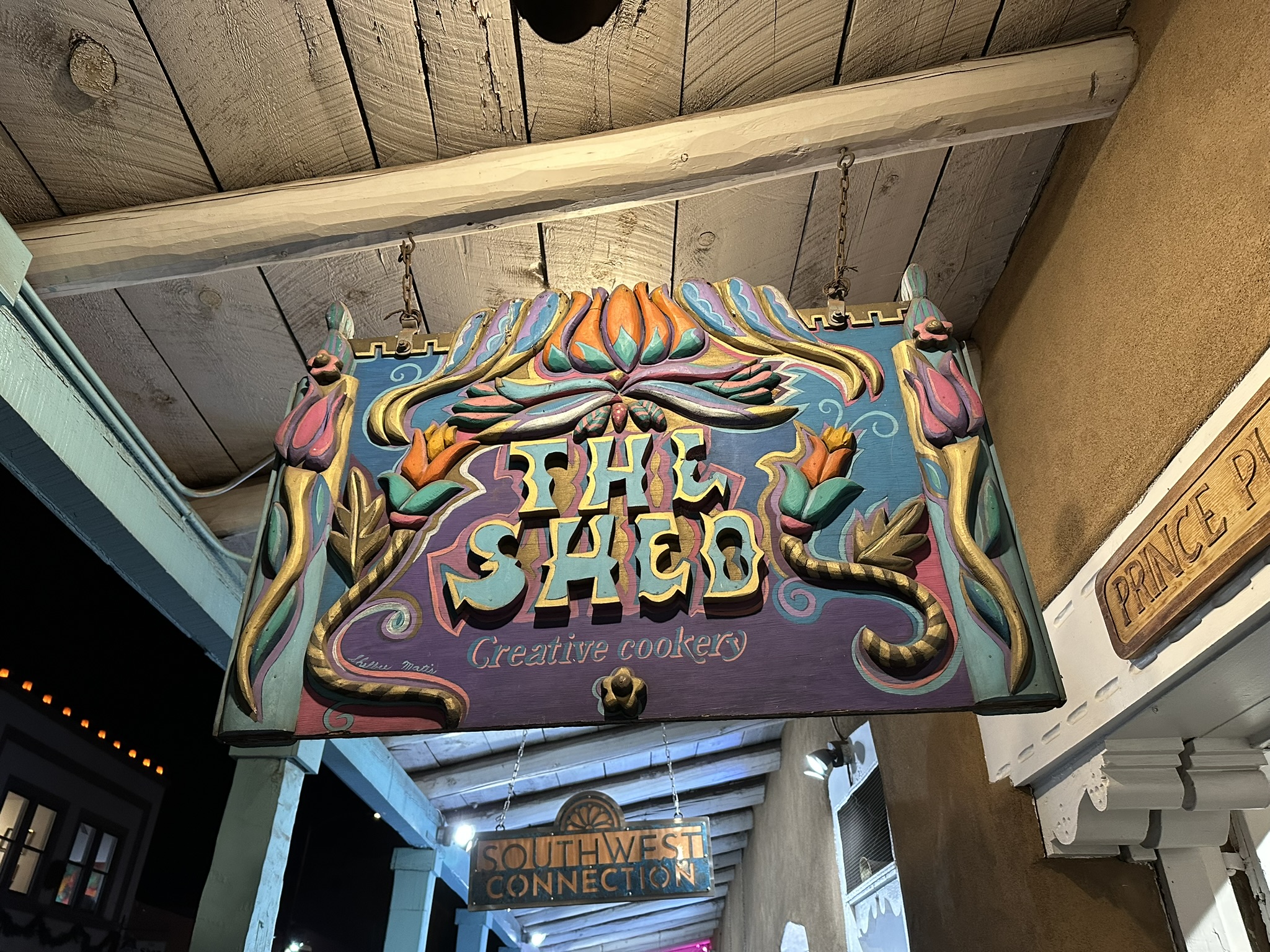 The Shed. Traditional New Mexican. Crazy good and crazy busy. Expect a long wait regardless of time of year. The bar is bustling too. Open since 1953, this place has all sorts of little nook and cranny rooms and a patio in the warm weather.
