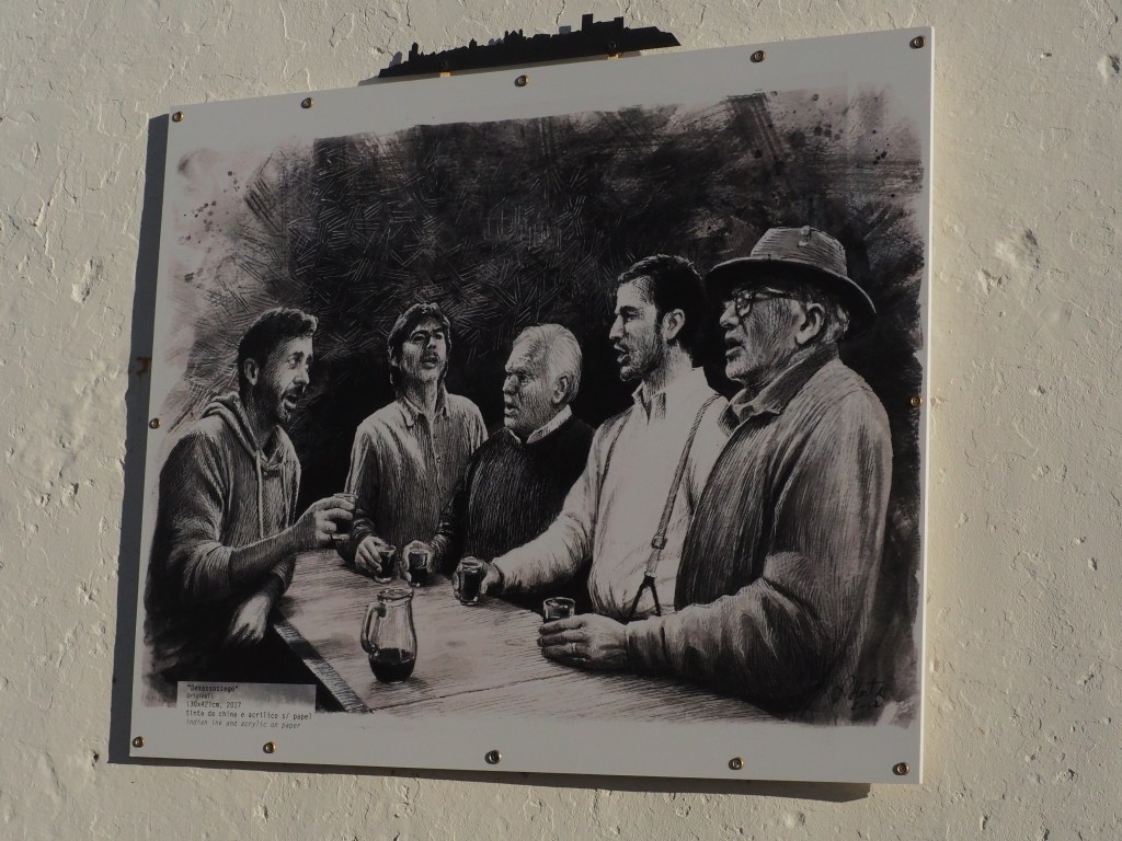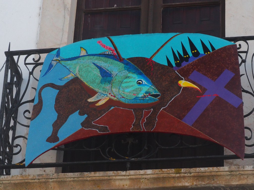 One of the museums, the Museo Do Fresco, is dedicated to a fresco dating back to the 15th century, which was discovered in October of 1958 when the parish building was being repaired. It depicts two panels, the lower one depicts a “good judge” being crowned by “the figures of Justice and Mercy” with the acquitted defendant staring up at him admiringly. To the good judge’s right, sits the “bad judge” being tempted by a rich man with gold to his right, the villain to his left and Satan whispering in his ear over his shoulder. Above the lower panel, two angels sit on either side of Christ, “symbolically proclaiming the incorruptibility of divine justice”. No pictures allowed in the museum, so you’ll just have to come check it out for yourself. We did capture an image of the bad judge portion in the second museum we visited and wrote about in the following paragraph (image below) . (Source and quoted: pamphlet provided at the Museo Do Fresco).