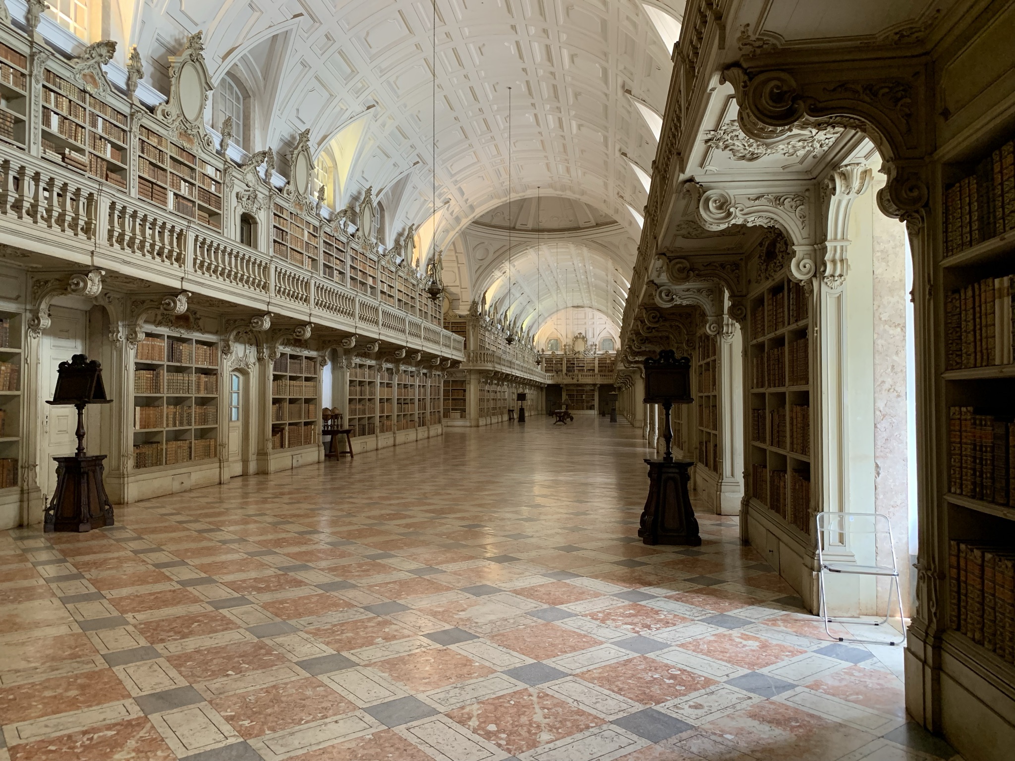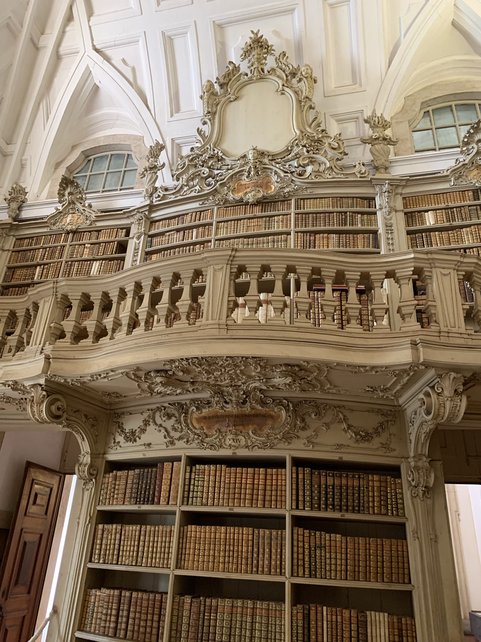 Your tour concludes in the section of the house that was used by the monks in simple (albeit ample) quarters and spills into their massive library of book lined walls from floor to ceiling. Some of the books here date back to the 15th century. Portugal’s libraries are something to behold. We’ve visited the one at the University at Coimbra and attended a candlelit concert of Beethoven (pre pandemic) in the library of the Academia da Ciencia in Lisbon. We have not yet been to the Lello Bookstore in Porto but it was among the inspirations for JK Rowling’s Harry Potter series. We’d read a review that the books in Mafra are being slowly chewed away by the rats in the library but, fortunately, can offer no visual confirmation of said atrocity.