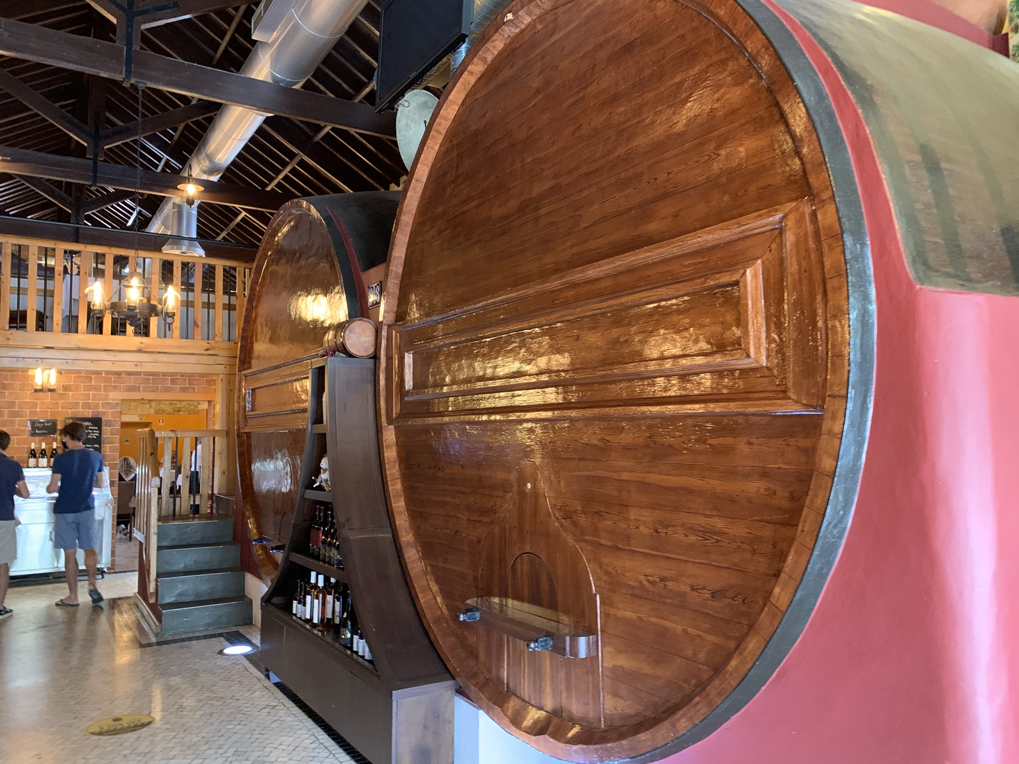 After our visit, we ate amongst cherry tomatoes, lettuce, mint and the locals at Adega do Convento down a quiet side street just about five minutes from the National Palace. It’s indoor dining room is rather plain and reminiscent of a sports bar in the US with its many TVs playing on the walls, but it’s outdoor courtyard dining area was great and its bar area with massive wine casks is quite something. The food was great too.