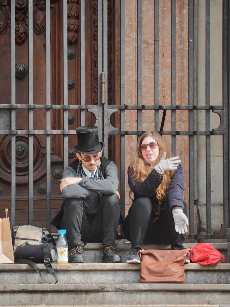 Over the river Saone we went and up to the neighborhood of Croix Rousse. We concluded our day one tour with the very contemporary mural of Canuts. First painted as a tribute to the city’s silk weaving tradition in 1987, it was updated to reflect neighborhood changes ten years later and again in 2013 to reflect further updates and age the subjects in the mural. We concluded with a sip of vin rouge overlooking the river as the sun set behind the basilique to the west.