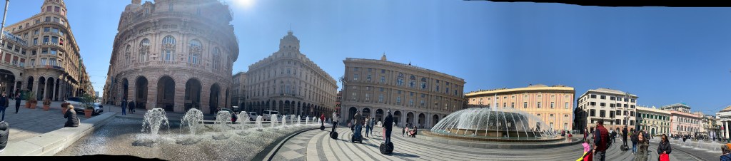 We found a great walking tour to explore the city which we’d highly recommend. It took us past all of the major sites starting with the Piazza della Vittoria and its memorial arch to those Genoese lost in World War I, to Genoa’s central square the Piazza de Ferrari with its large fountain and gorgeous surrounding buildings and a great place for people watching.