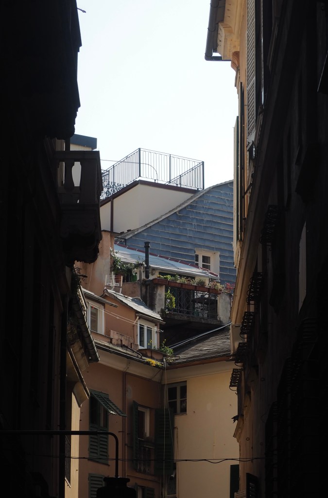 As we crossed over from France into Italy and switched trains just past the border we were treated to a coastal train ride with mountains to the left of us and the Mediterranean and coastline to the right. We cruised along past the first towns of the Italian Riviera, destination: Genoa (or Genova).