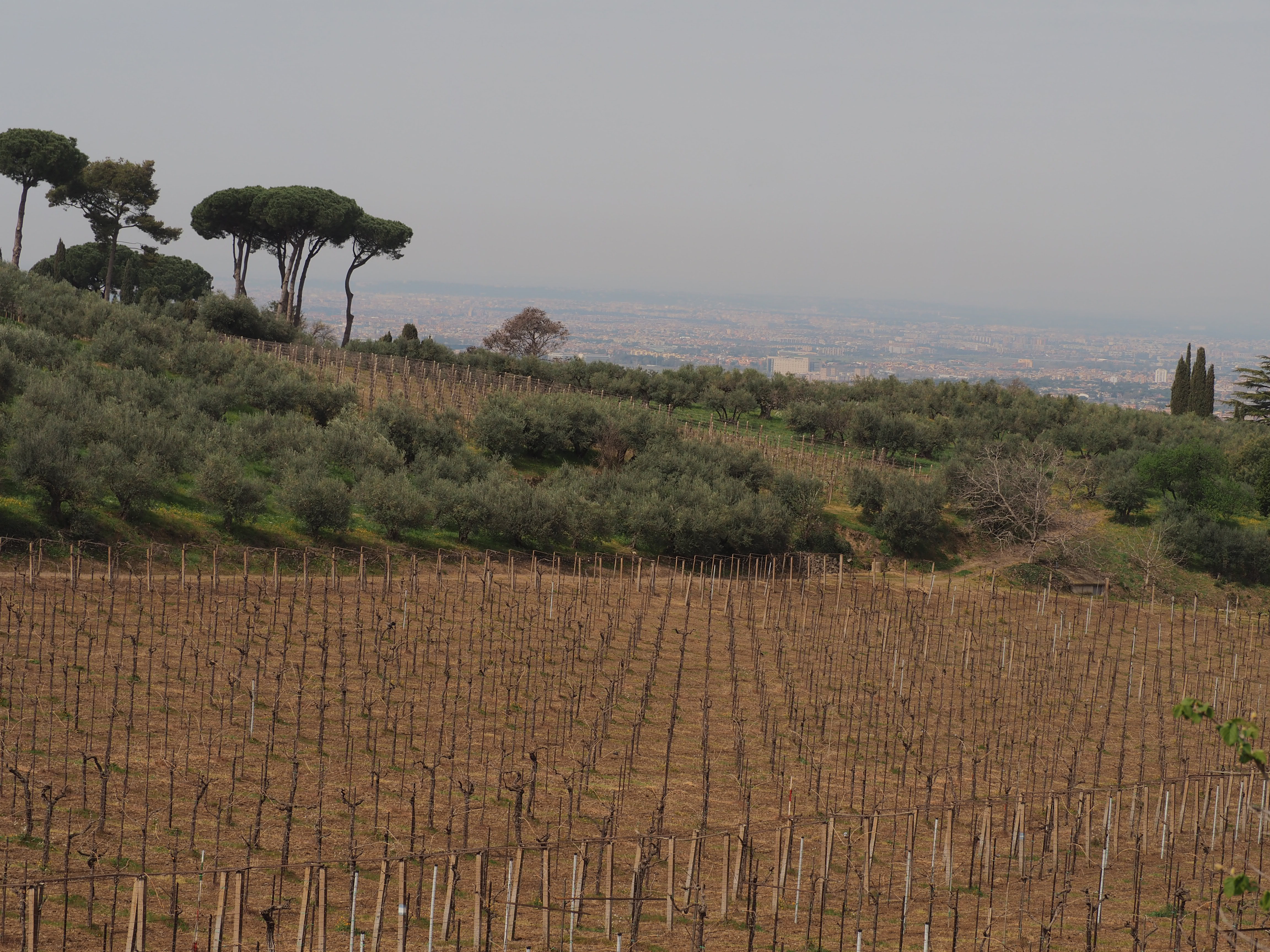 To beat the crowds of Rome for a few hours on a Sunday where they were running the Rome Marathon we booked a wine tasting and lunch in Frascati. Frascati is a small city in the hills southeast of Rome which also houses the Pope’s summer residence nearby. After navigating the marathon-imposed closed off streets on our walk to Roma Termini and boarding our train, we were delivered to the Frascati train station.