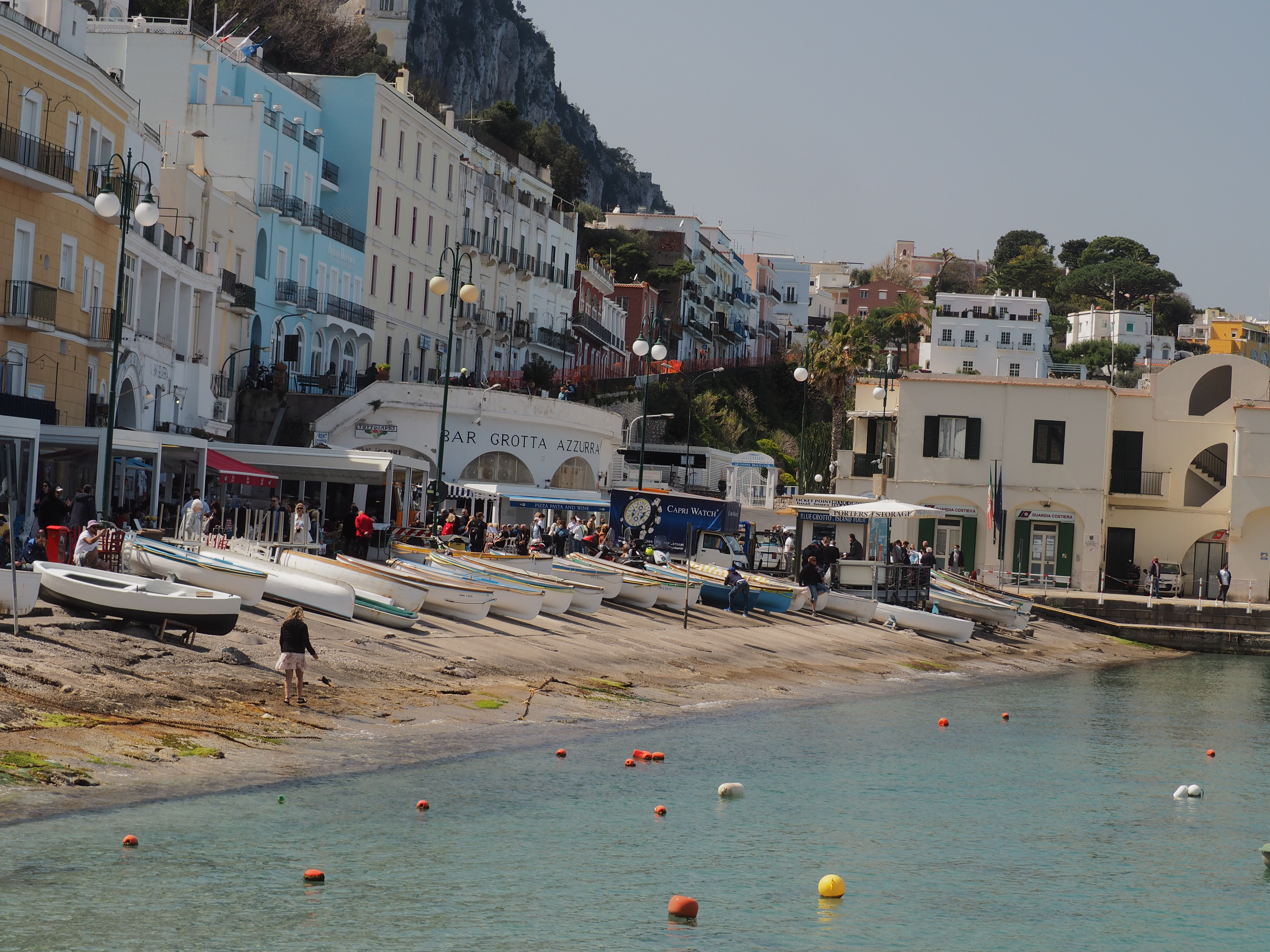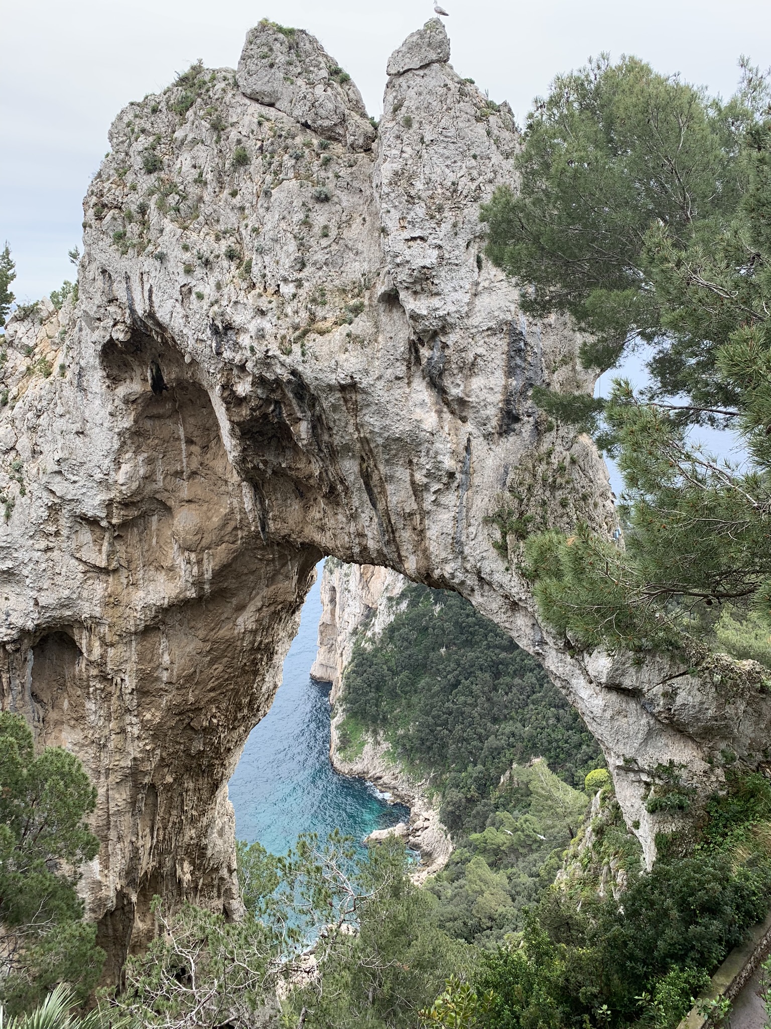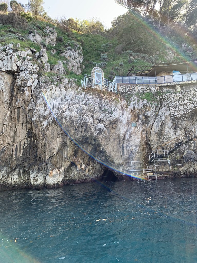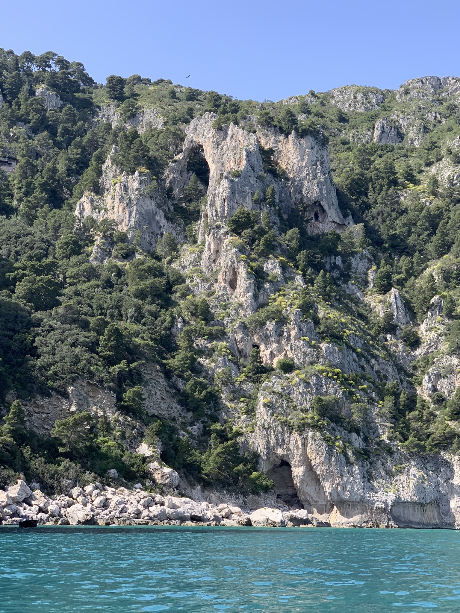 Capri by Sea. On our second day, we opted for a boat tour of Capri’s famous grottos. There are many tours available. Some go out of Sorrento across the bay, but there are lots in Capri proper. You basically need to choose the size of tour you want. We chose to do one in a small boat through Airbnb experiences and were not disappointed. We saw some of the bigger ones passing us by and they are too big to get anywhere near any of the caves. It was cool but sunny so, while we couldn’t swim in the grottos and caves, we did get to go into them. We also, because it was off-season, were basically by ourselves in the caves. A big plus. No queues of boats and hoards inside.