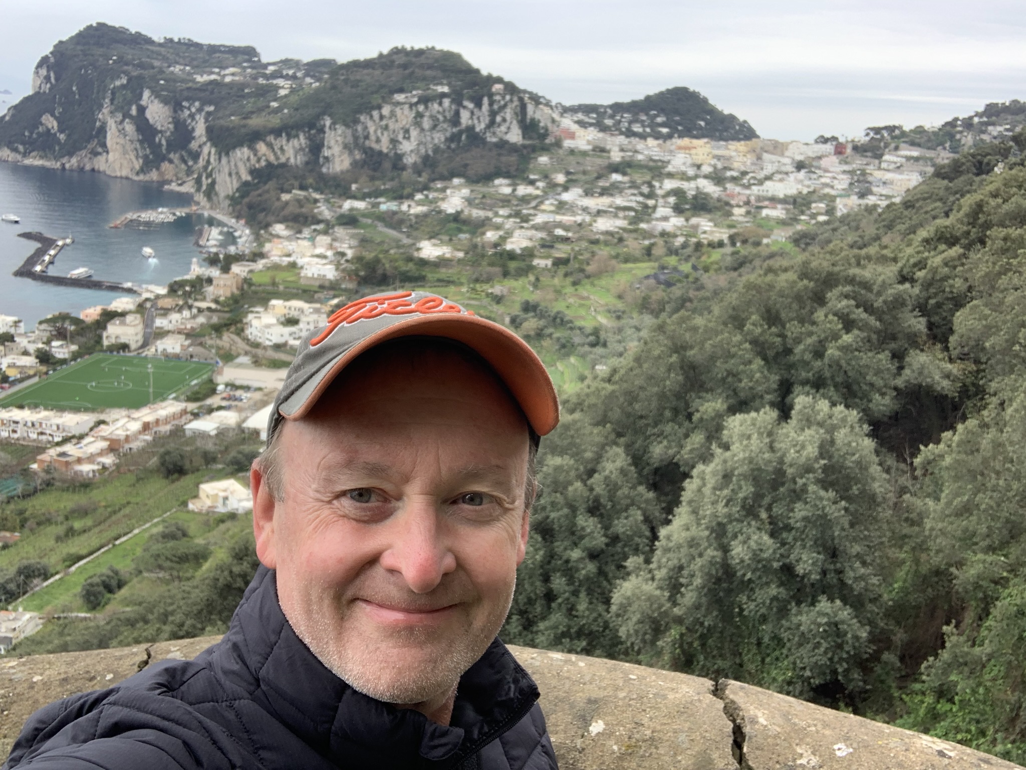 Melissa’s parents had visited Capri when they lived in Naples and had a painting of Capri hanging in their house, which now hangs in her sister’s house. With the help of Manuel, he pointed us to just the right street and while the view point has changed over the past 50 years we were able to find the approximate spot from which it was painted (or which inspired the painter) all those years ago.
