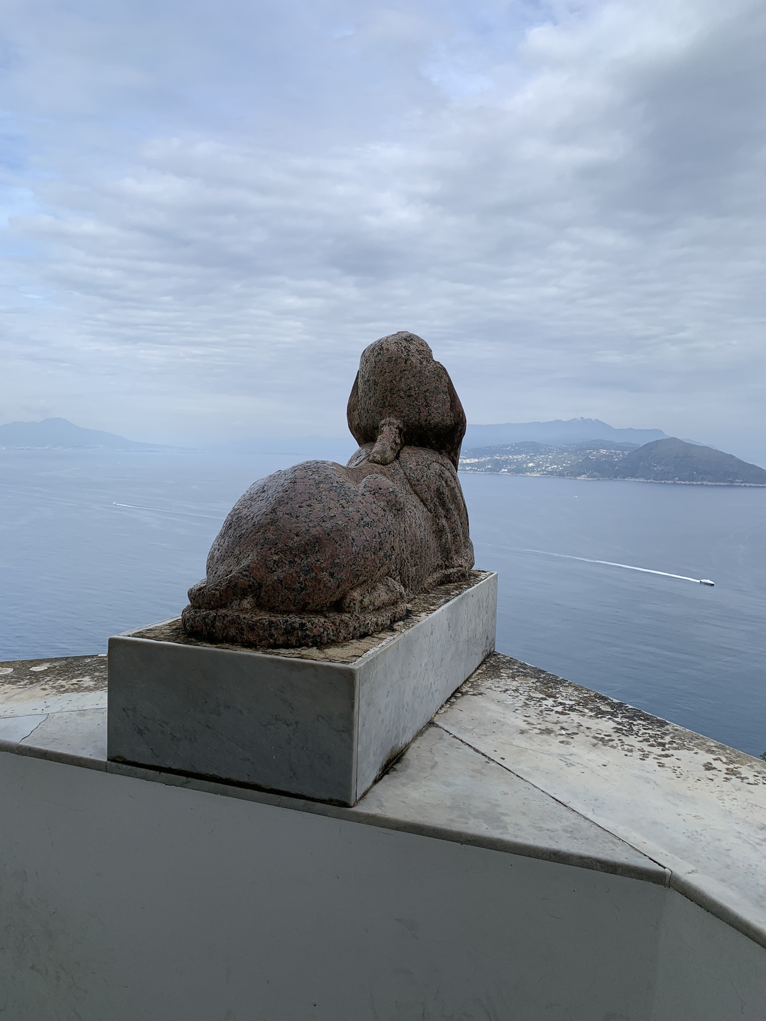 Once at the hilltop commune of Anacapri, I visited the Villa San Michele museum and gardens. Axel Munthe, who built the villa in the late 19th century and lived there, was a Swedish doctor and the author of The History of San Michele (call me illiterate, I’d never heard of it). The story of the history of the Villa apparently tells the story of its construction during which most of the materials were lugged up those same steps I just finished whining about, albeit via donkey, and makes you want to maybe read it for an appreciation of the efforts. The mansion is cool, but the award winning gardens are quite something with spectacular views of the Bay of Naples, the Amalfi Coast, lower Capri and the harbor.