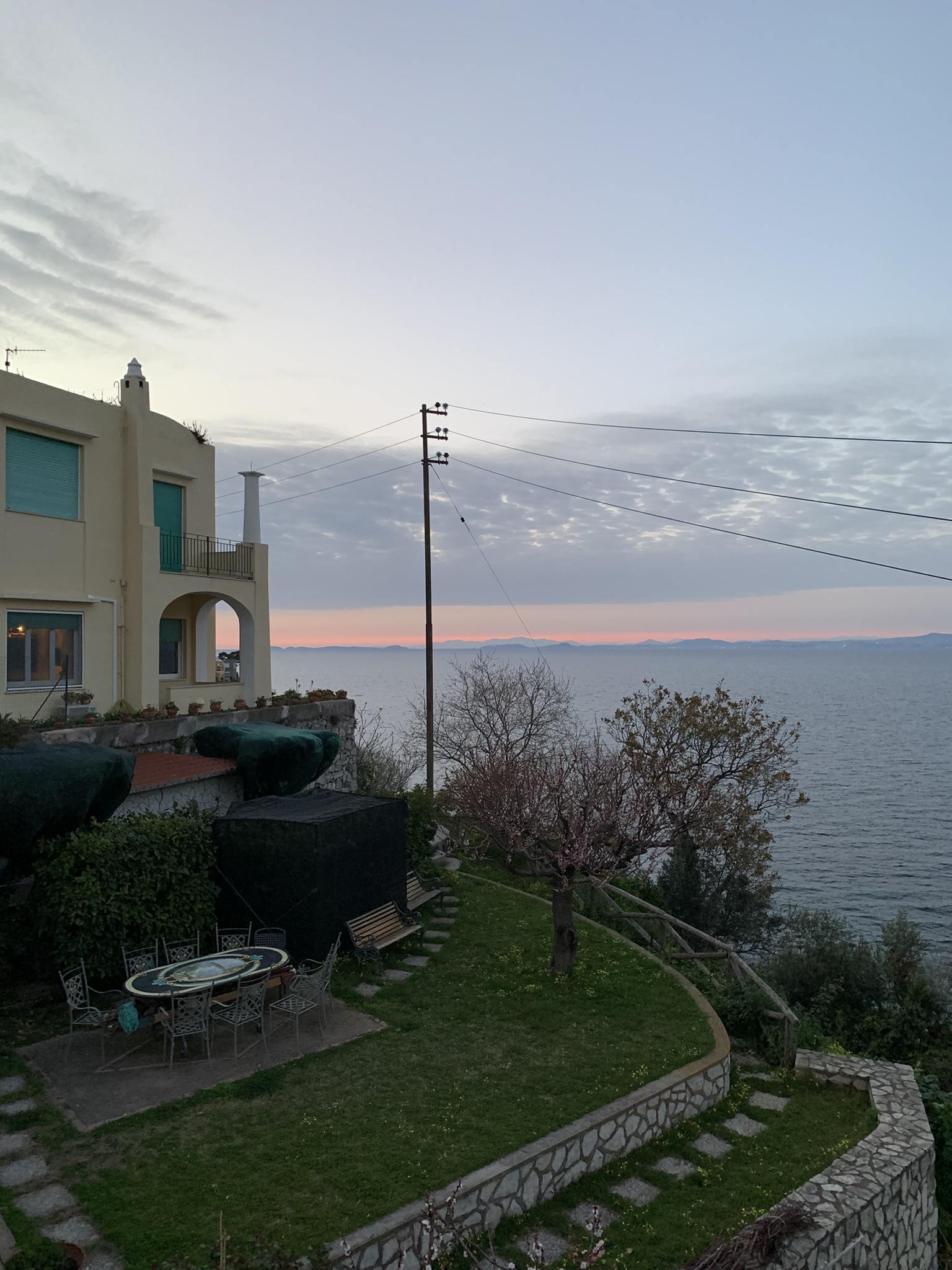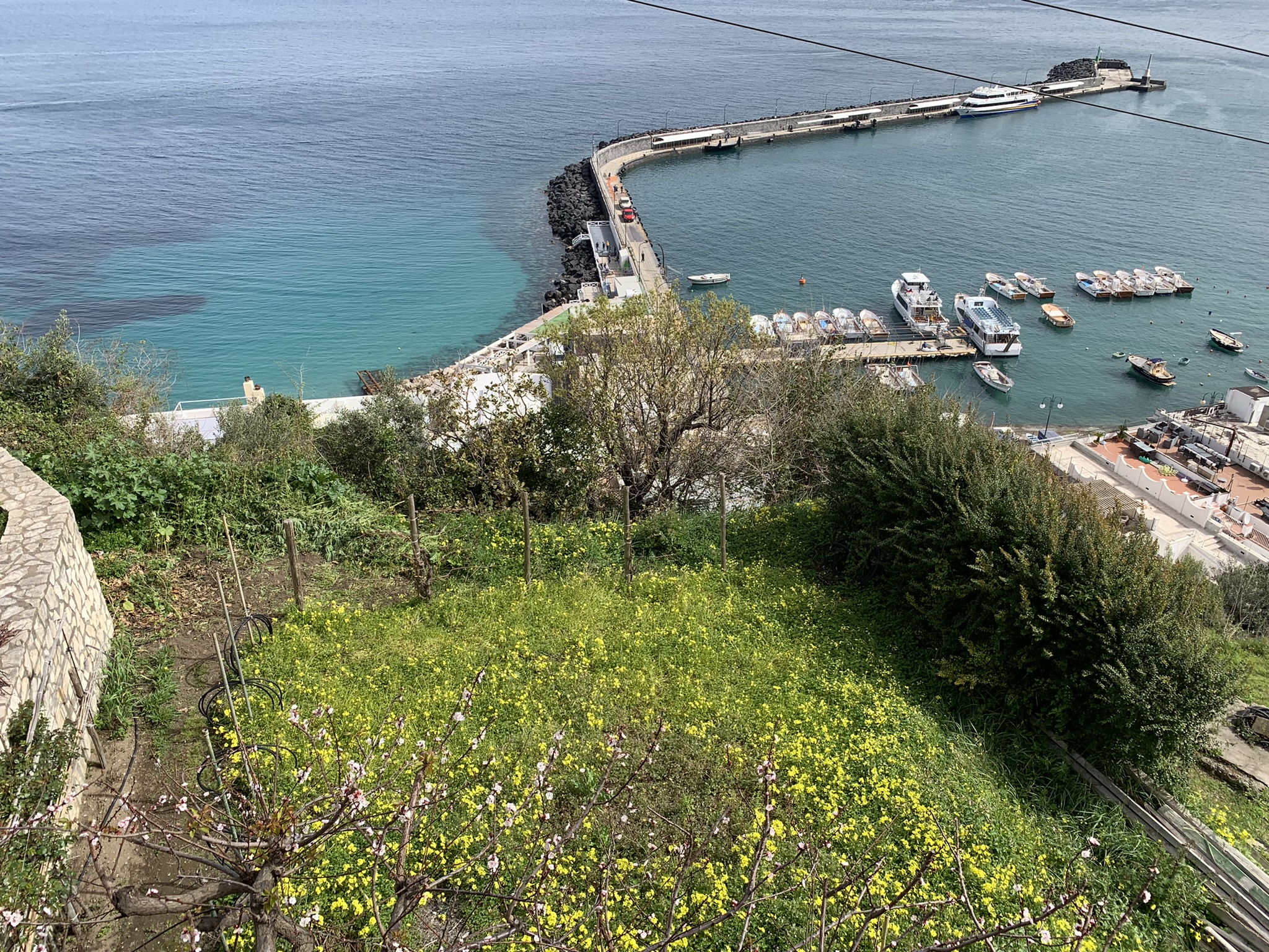 Our Airbnb overlooked the Marina Grande port, which made the schlep of heavy bags up the hills and stairs well worth it. For three nights we sat on our terrace, overlooking those same ferry boats carrying cars, supplies, tourists, locals, day trippers and cruisers to this magical little island. We’d listen to spring bird chirps and watch the lemons blooming and apple trees blossoming and linger as the sun went down until it was too cold to linger any longer.