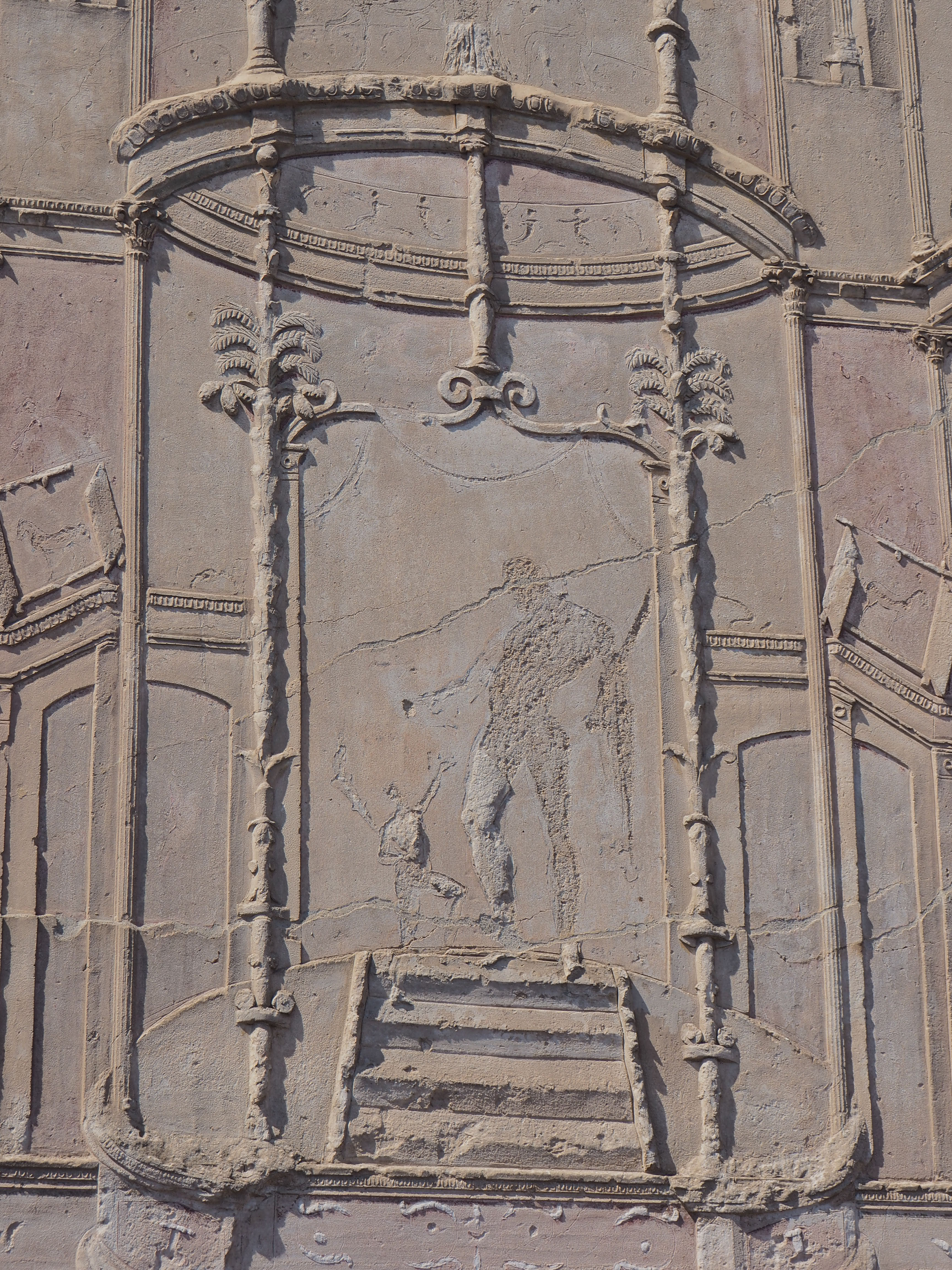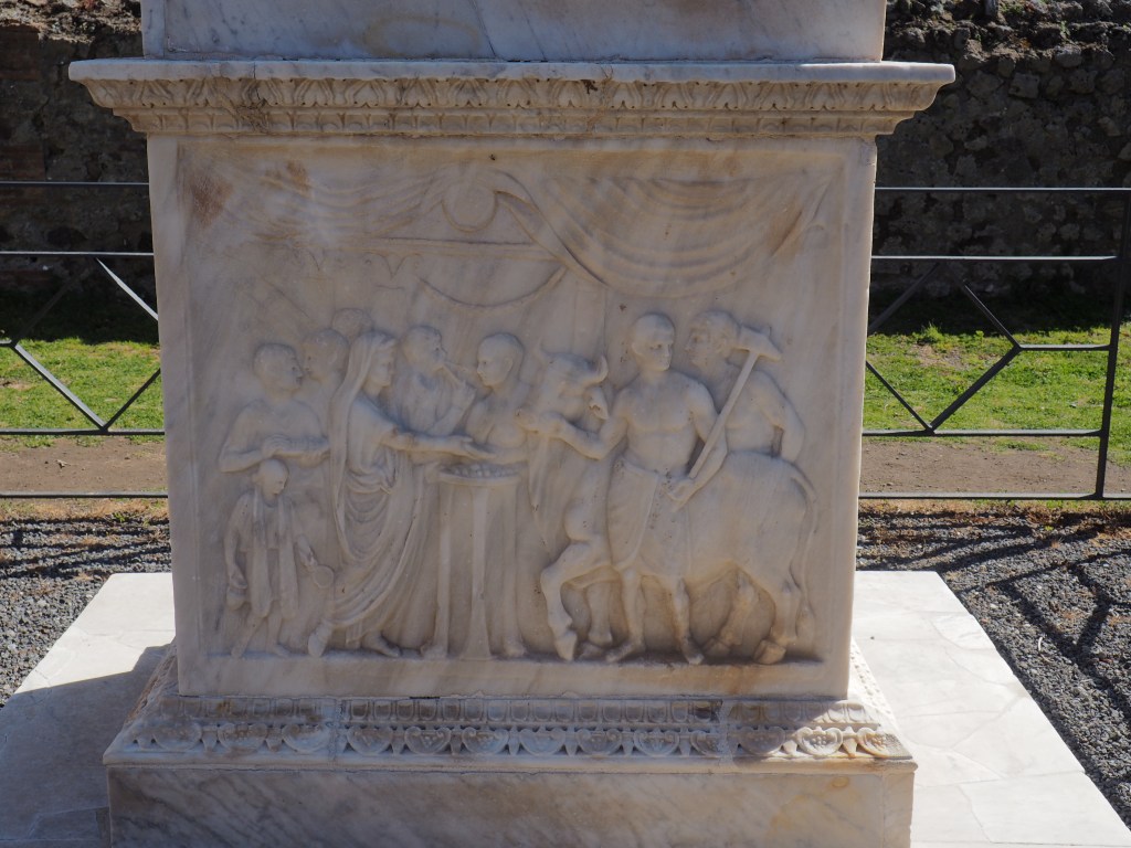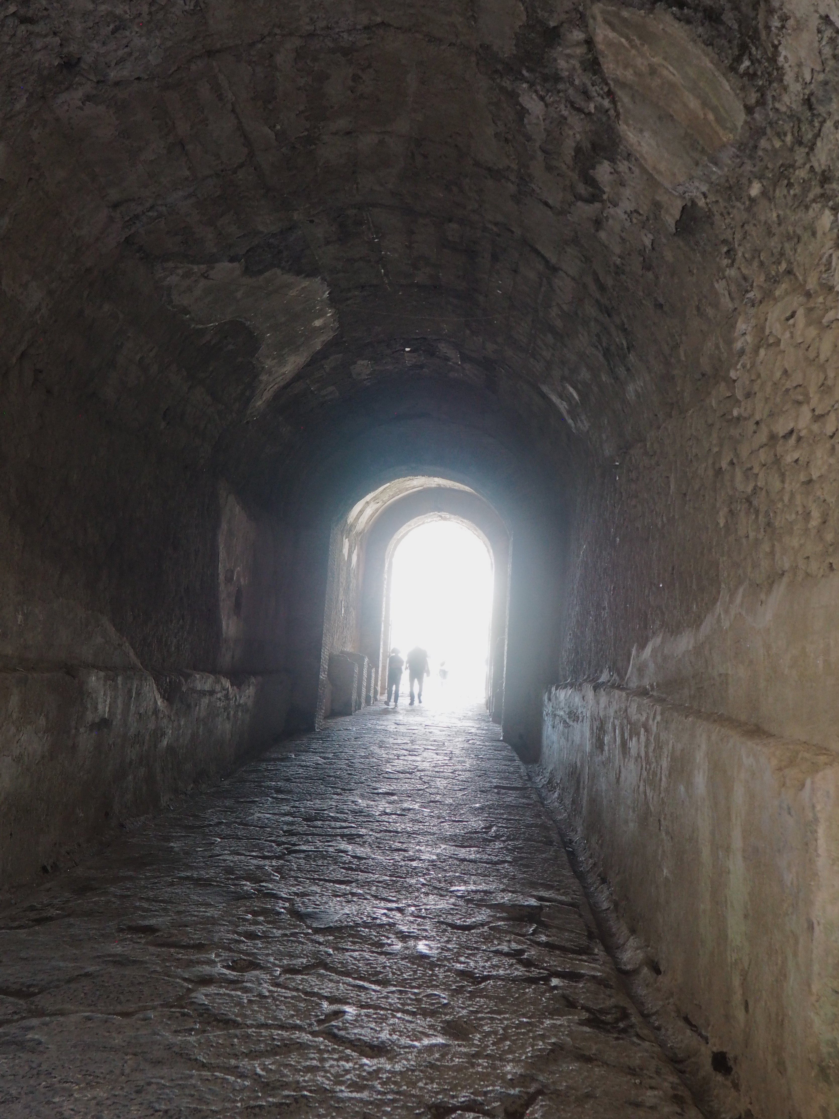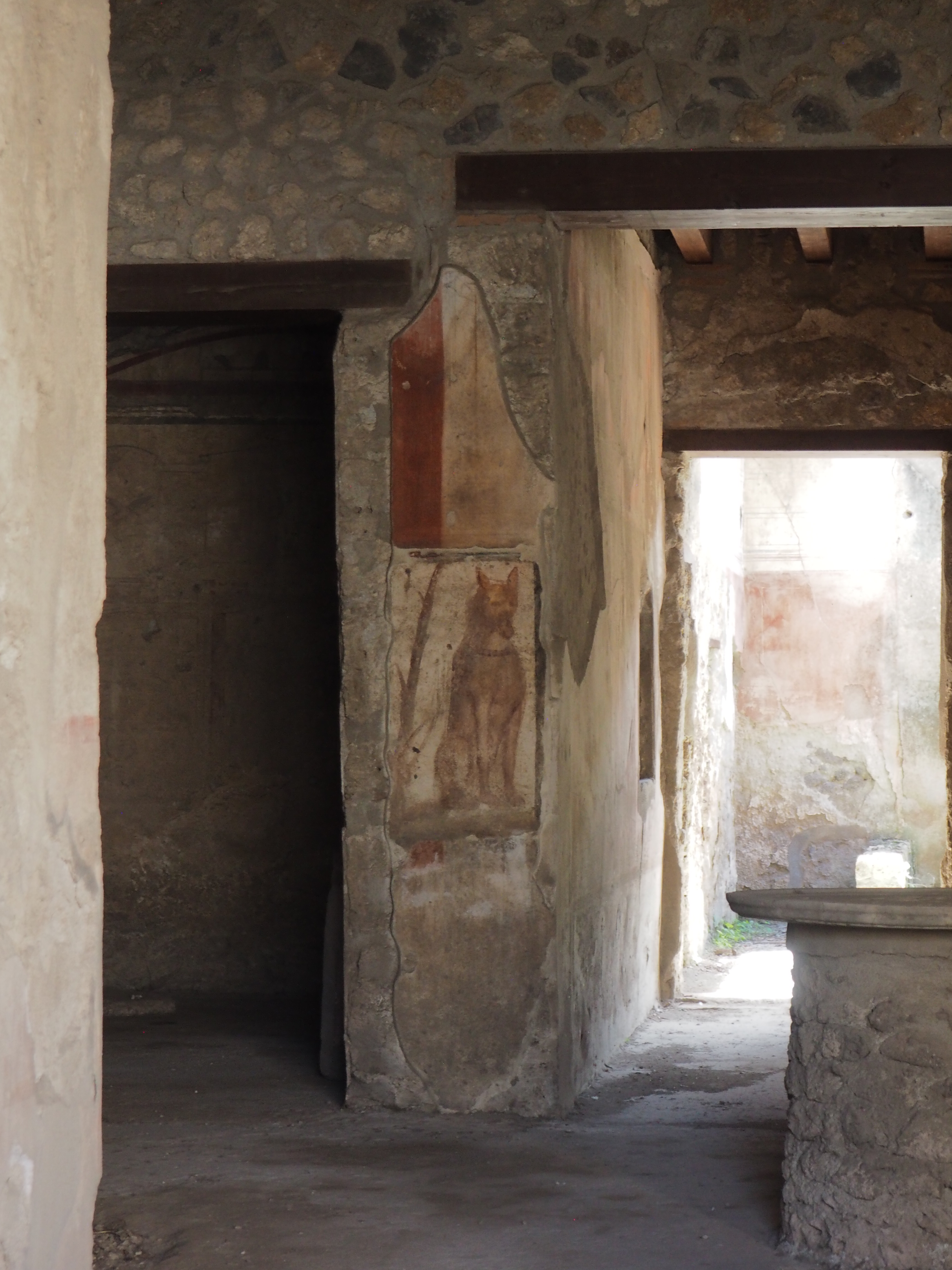 He explained the sidewalk system and crosswalks, set above the streets so when rain water flowed one could keep their feet dry. He showed us both original paint and mosaics and replicas whose originals reside in that same archaeology museum just a few kilometers away where you can find the aforementioned Pompeii porn and explained why many Pompeii homes had a mosaic of a bear or a wolf at the doorway to ward off the evil spirits.