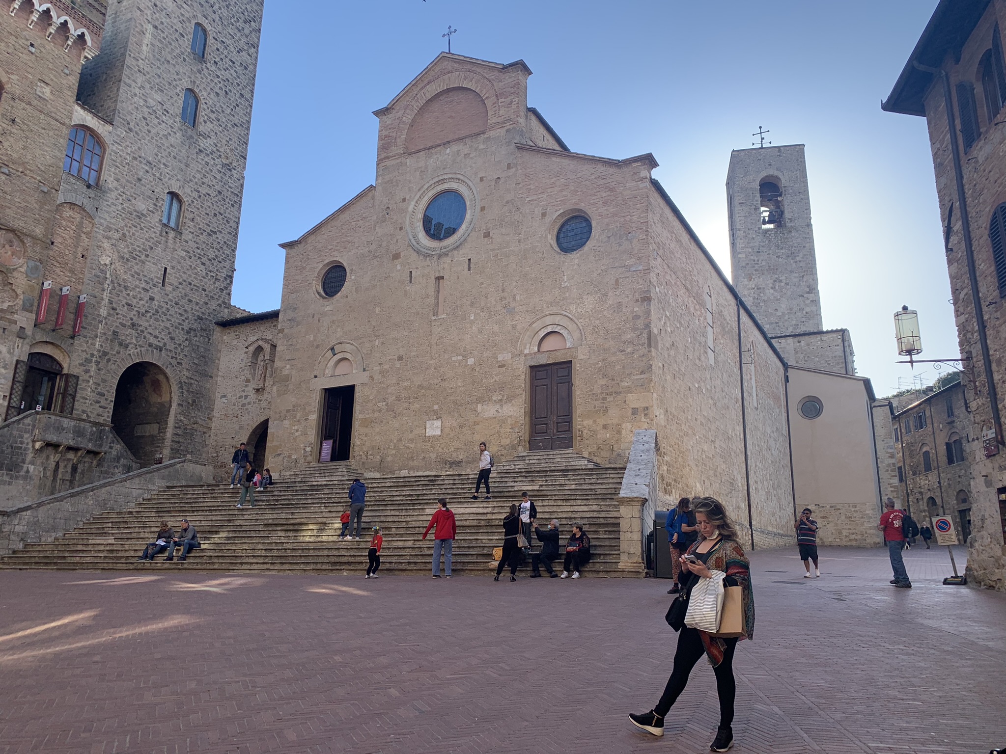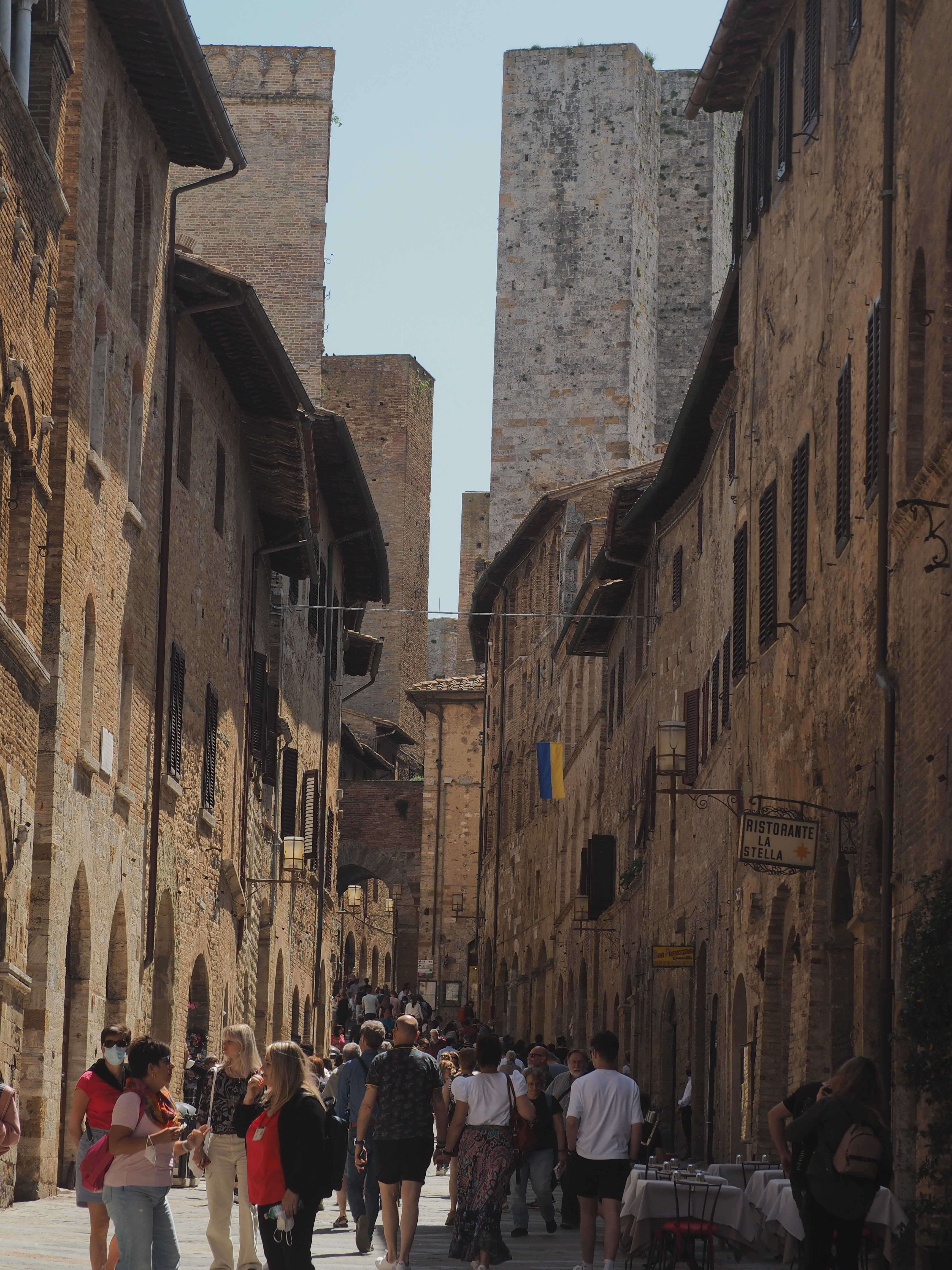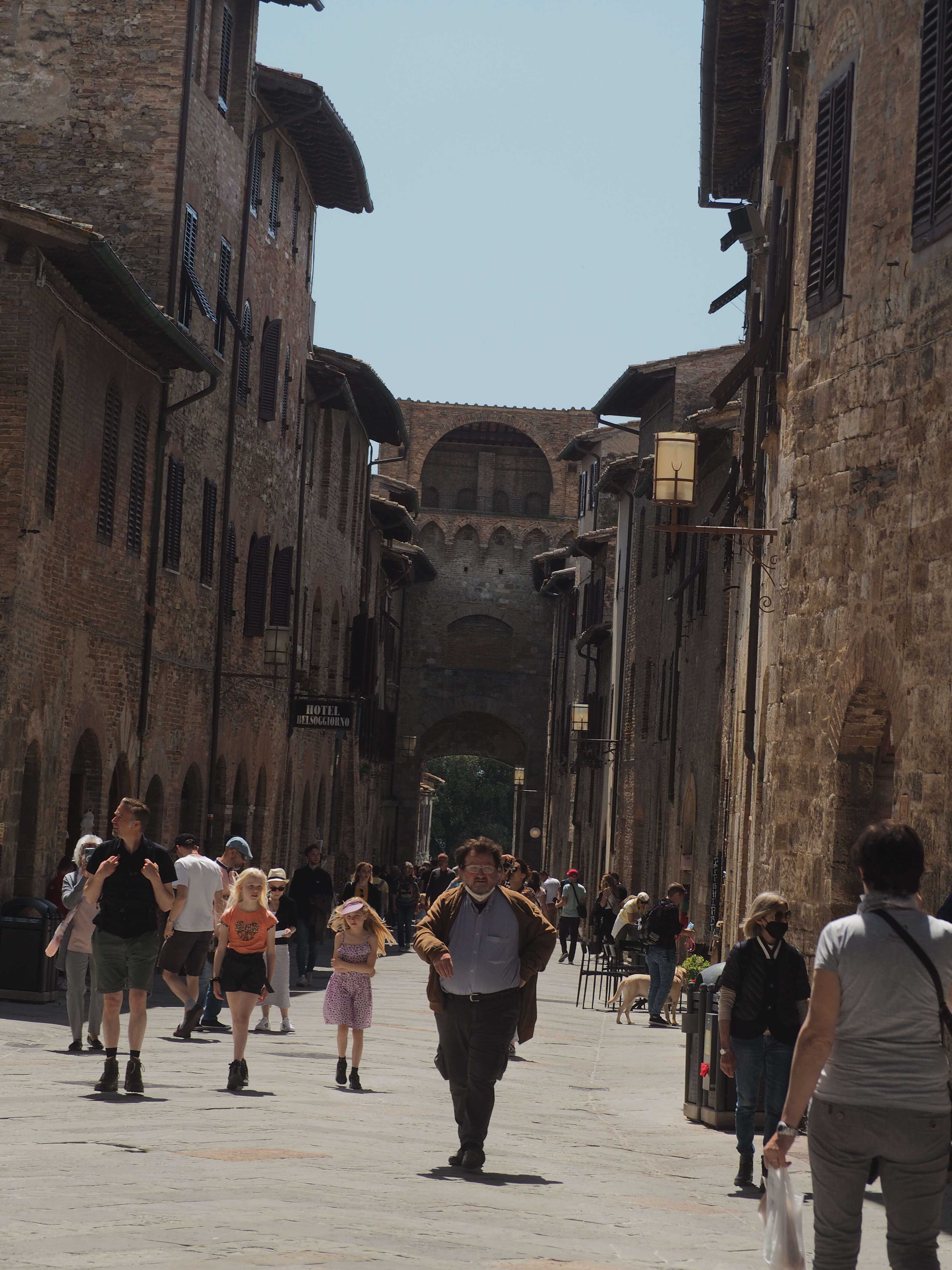 We arrived in San Gimignano after a brief stop in Siena. San Gimignano has been showing up more in my Facebook, internet search and Google news feeds lately. Whether it’s being discovered, or more is being written about it, or the pandemic is in a new phase and people are traveling more, or I knew we were coming here so I was noticing it more, or the ghost of Steve Jobs or the pervasiveness of Mark Zuckerberg is dominating my location and search-based internet experience; whatever the root cause: add San Gimignano to your list of places to visit if you come to Tuscany. But wait, what’s with the birds? Hang on, I’ll get to that.