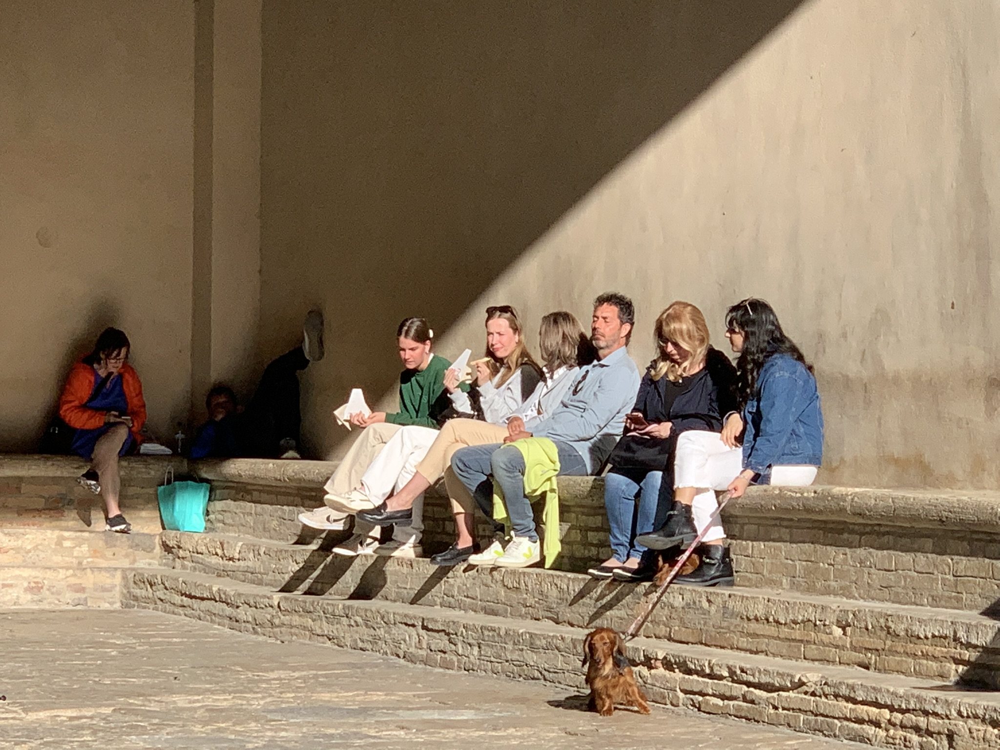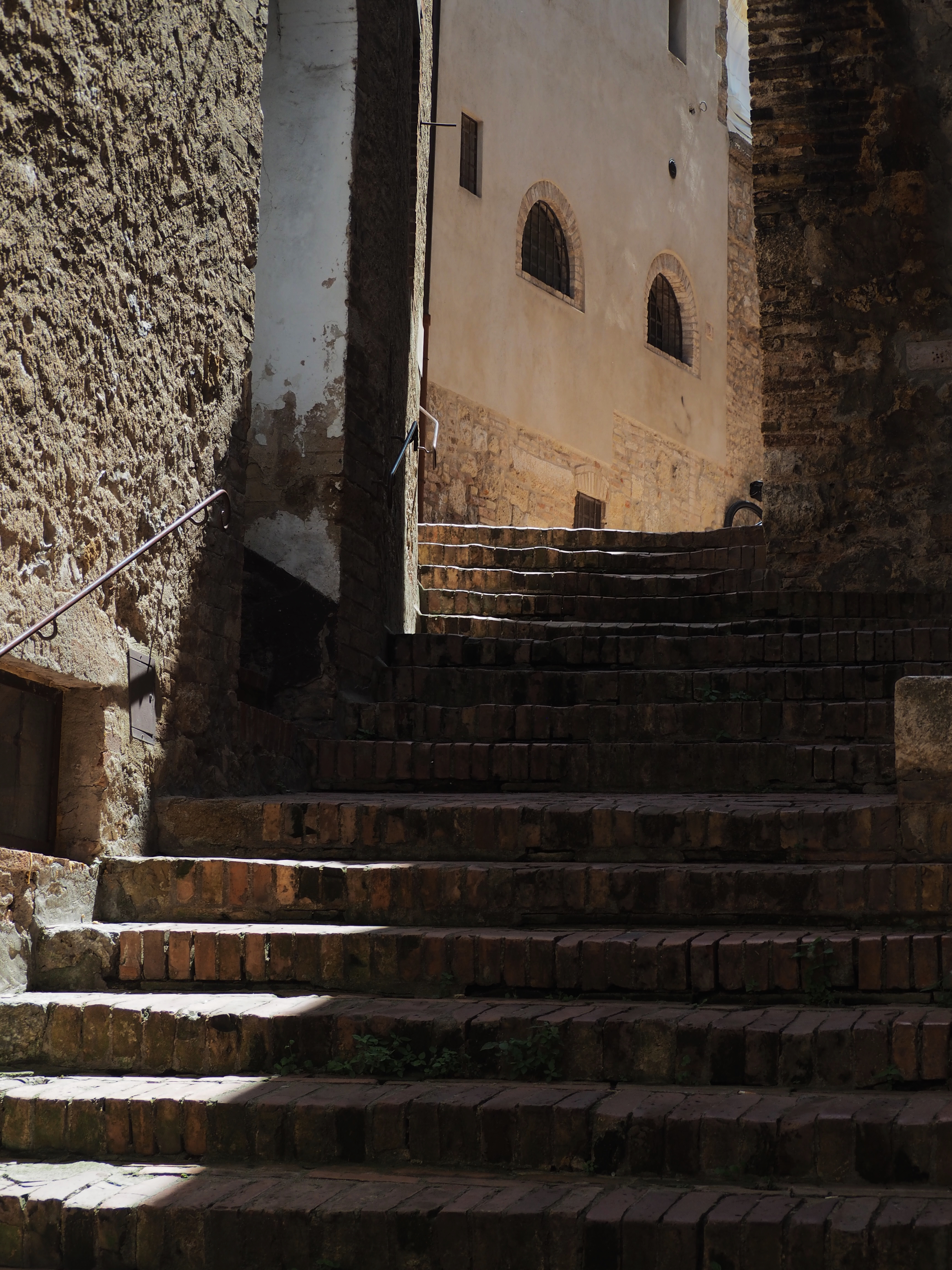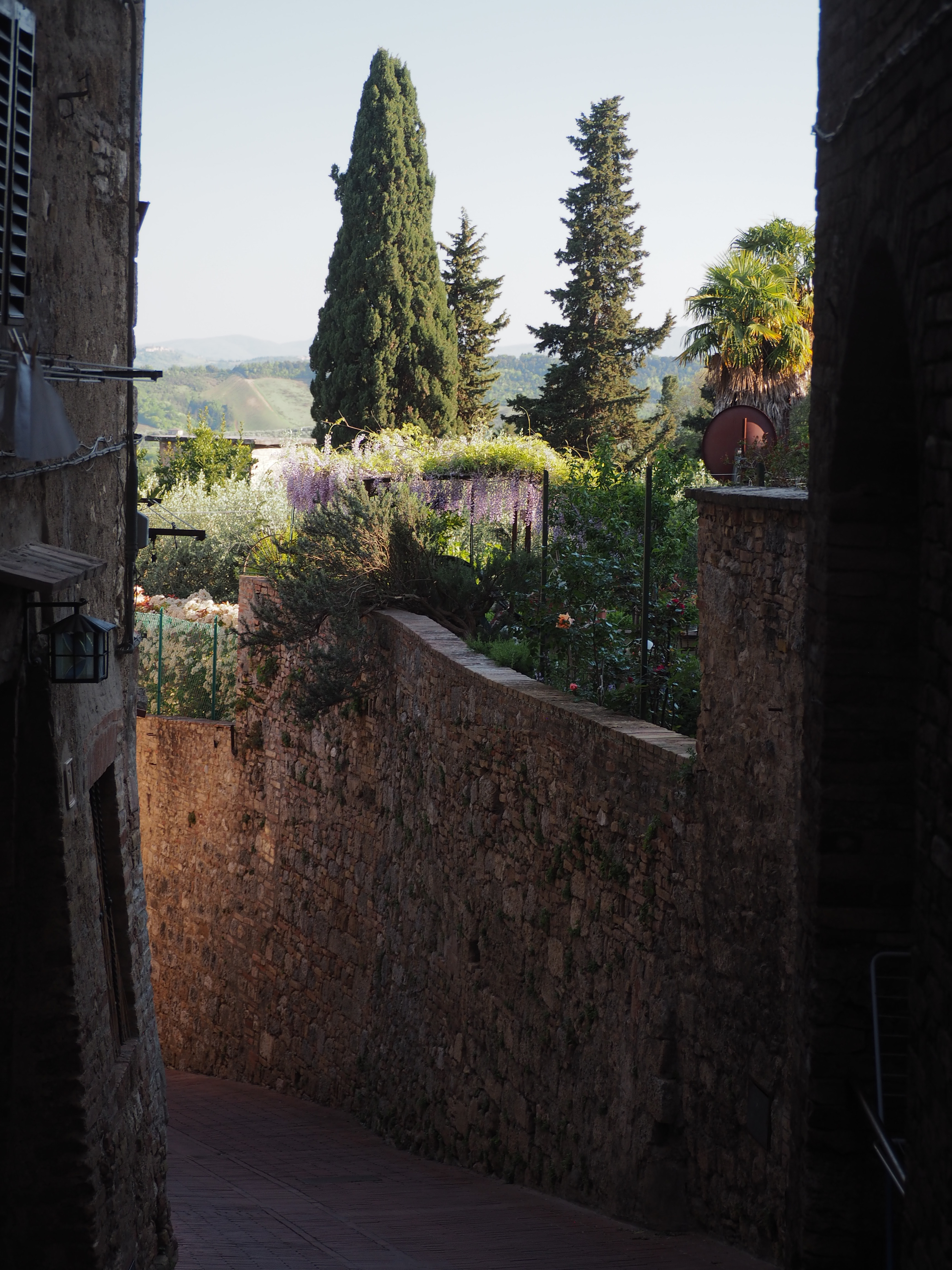When you stroll through the Porta San Giovanni you are transported back in time. Walk up Via San Giovanni to the the main square of the Piazza della Cisterna and it’s neighboring Piazza Delle Erbe. Wander past galleries, restaurants, gift shops and stores selling fresh cured Tuscan meats or local wines, sample some gelato, sit and relax. Explore some side streets and turn a corner to catch a view which comes upon you, unexpectedly, as a surprise gift for making that turn. You’ll be in good company and that’s just what we did.