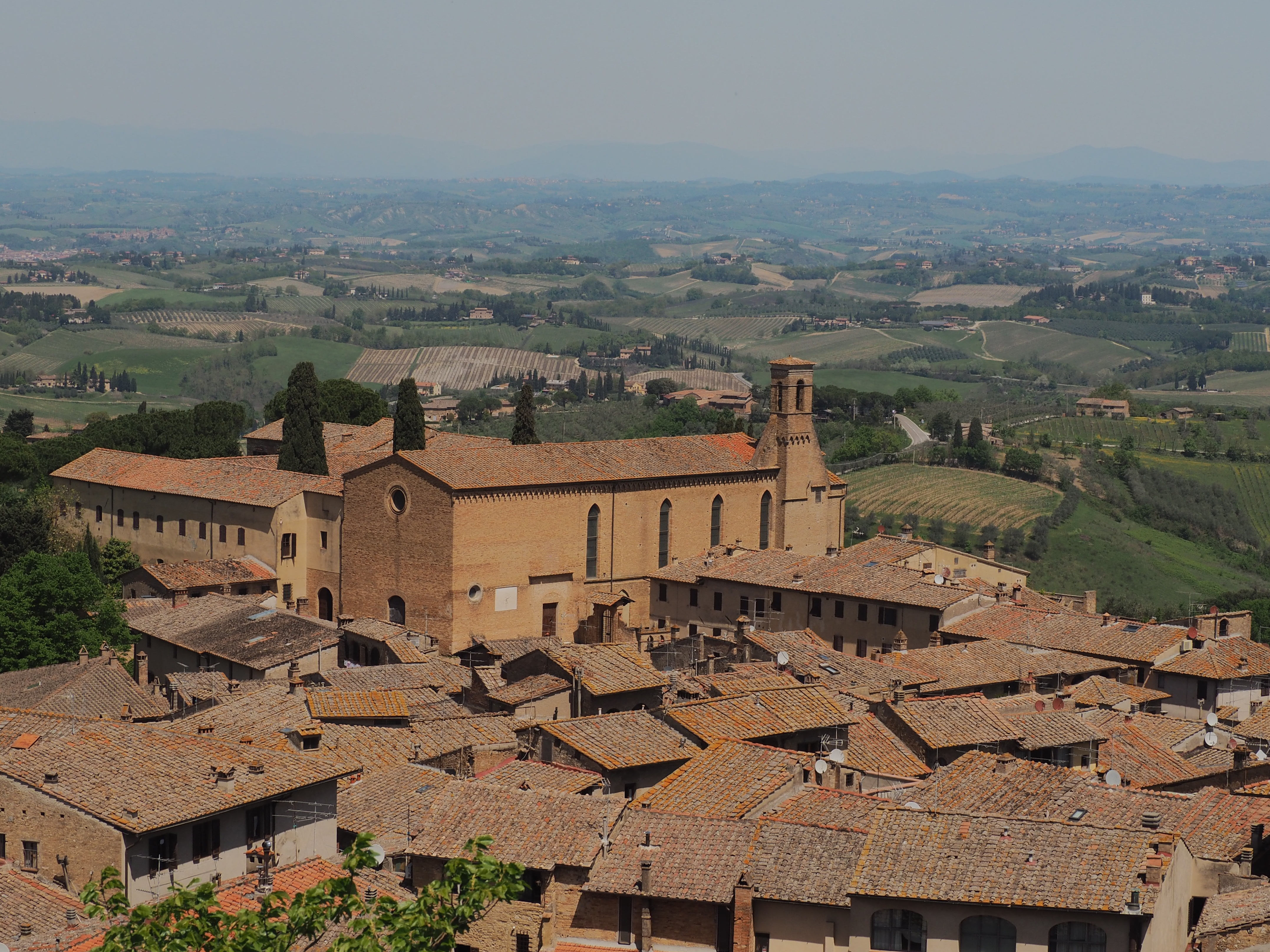 San Gimignano is a hilltop Tuscan medieval walled village in the heart of Tuscany. Surrounded by rolling miles of vineyards, olive groves and mountains on its horizons this area was first settled by the Etruscans in the 3rd century BC but whose current gothic and Romanesque buildings date back to the 13th and 14th centuries. It is known as “the city of fine towers”, some of which you can climb for better views of the aforementioned countryside and town below with its terra cotta roofed buildings.