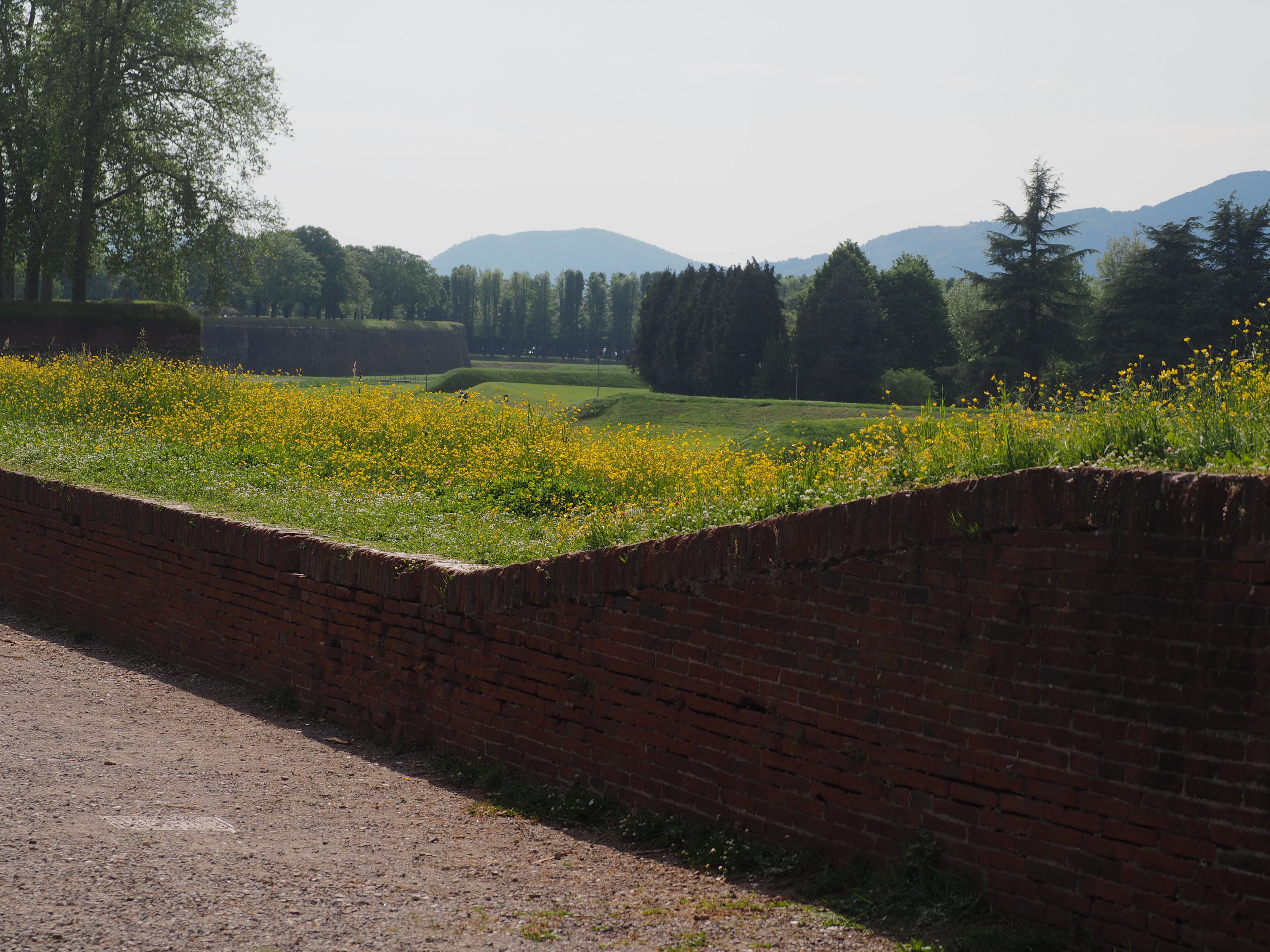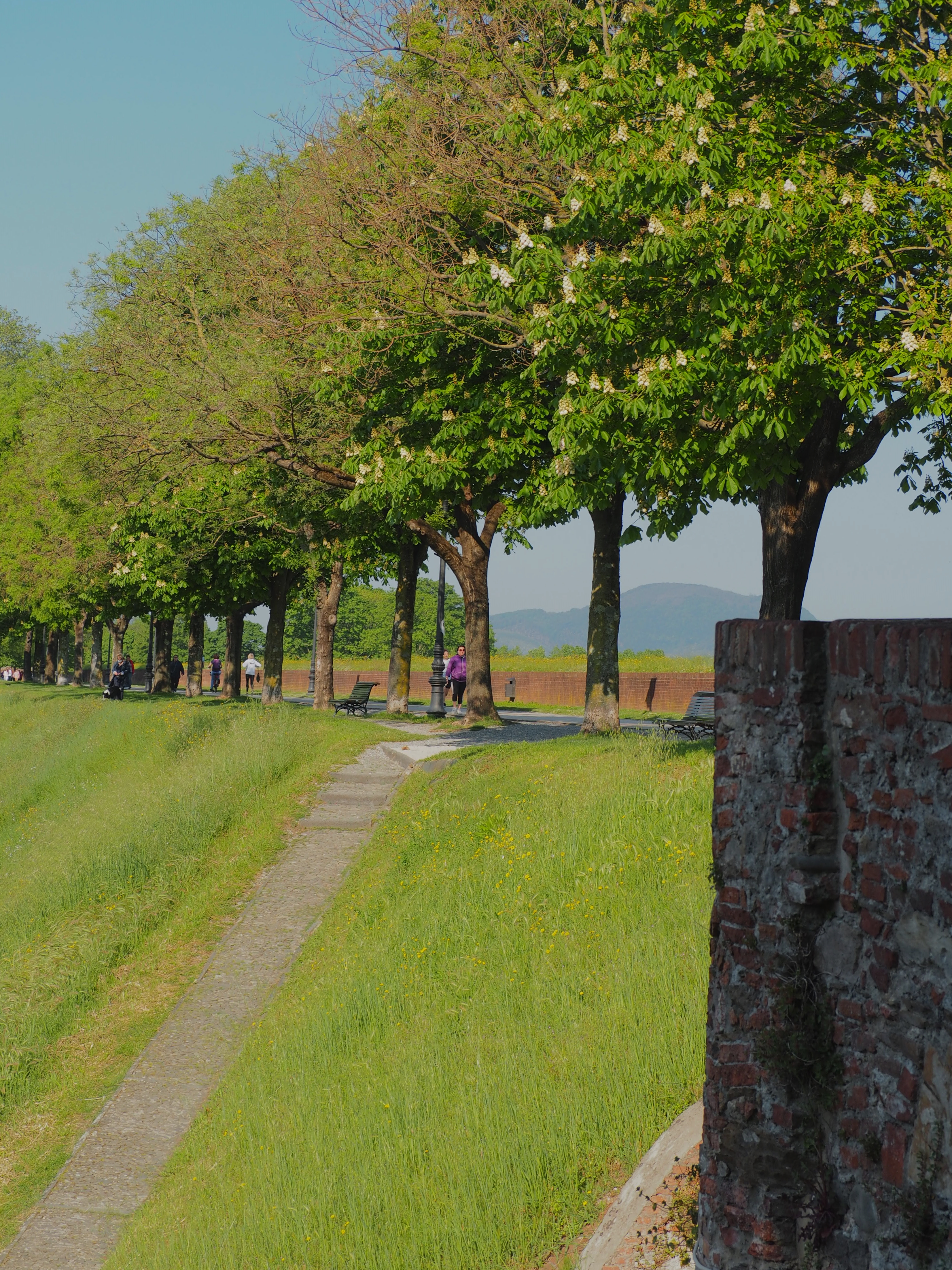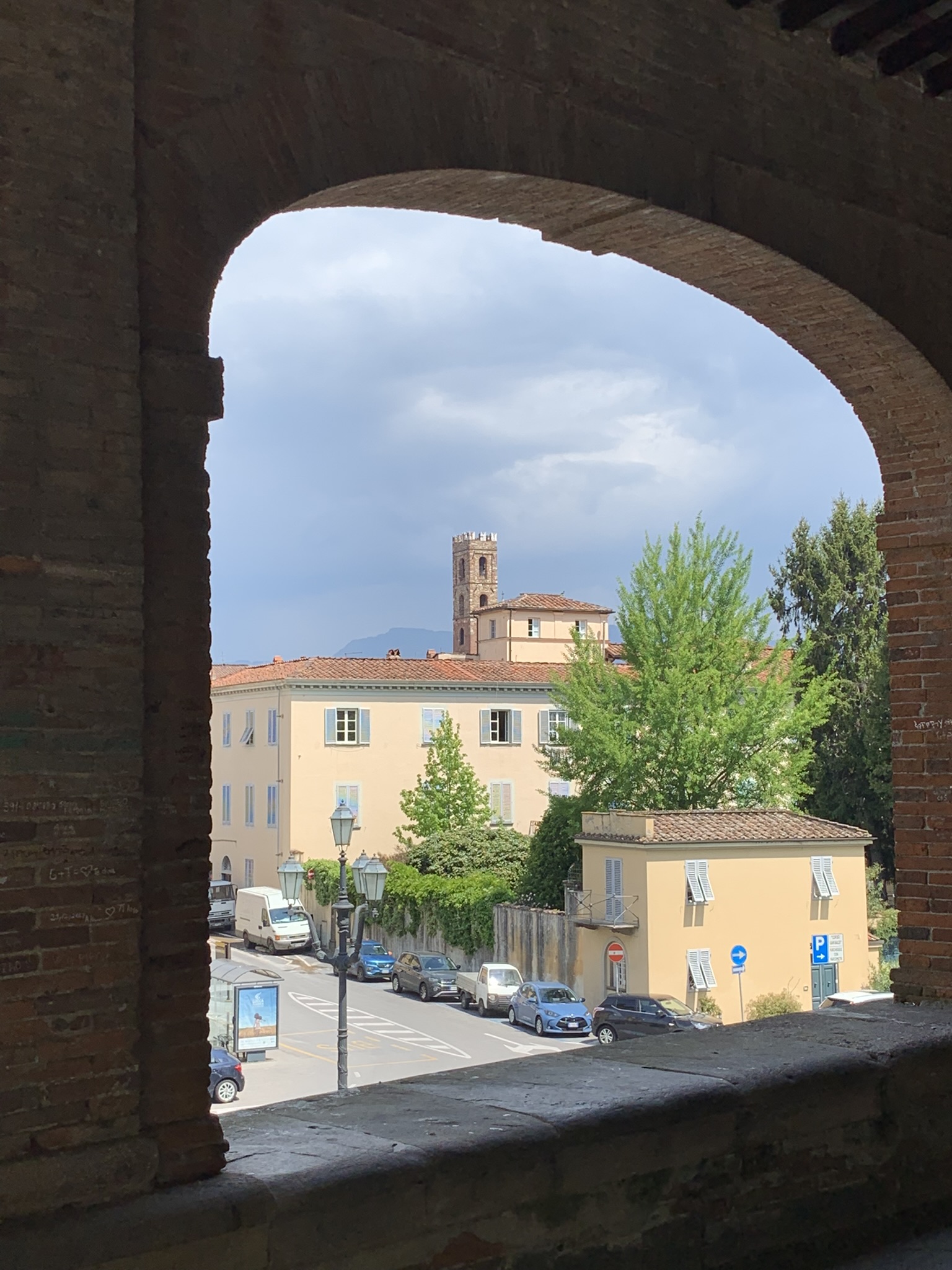 To burn off a few of the Pasquale calories, we hit the trail around the old city built on the remnants of the city’s walls. These are not the tall and narrow (and sometimes treacherous) stony walls of some of the other cities we’ve visited, they are short and wide and now covered with grass and a bike trail. The trail is reminiscent of bike trails in the USA: wide with lots of room for runners, walkers and bikers to share the road. Walking around (we did it three times throughout the day) gives you the feeling you actually live in Lucca, mixed in with locals, as you encircle the town. And that’s just the feel of Lucca. It is larger than we expected. The old town is encircled by the walls which are encircled by the new town which is encircled by mountains of the Apuan Alps. It’s a place you would want to live. It’s near the sea and the mountains and is a beautiful little city.