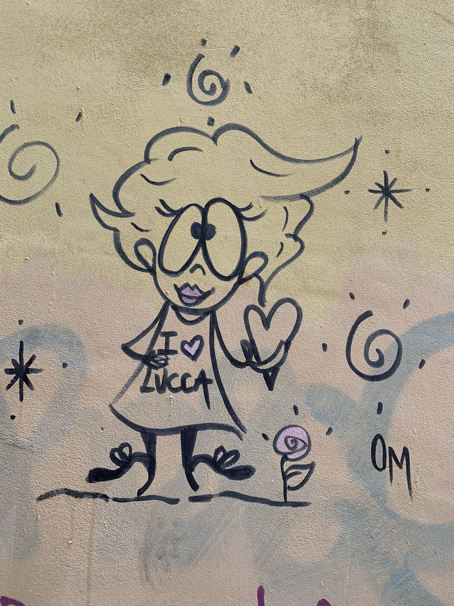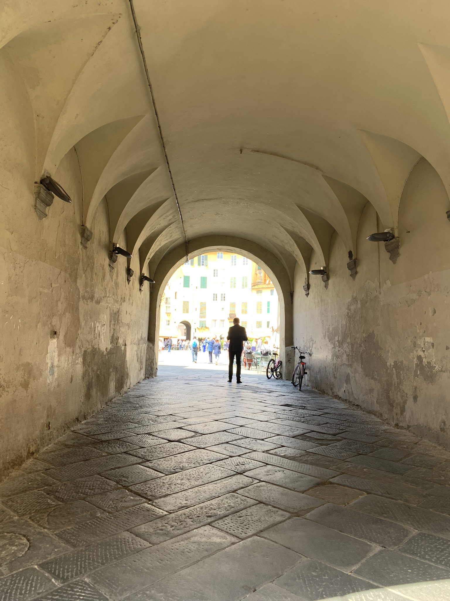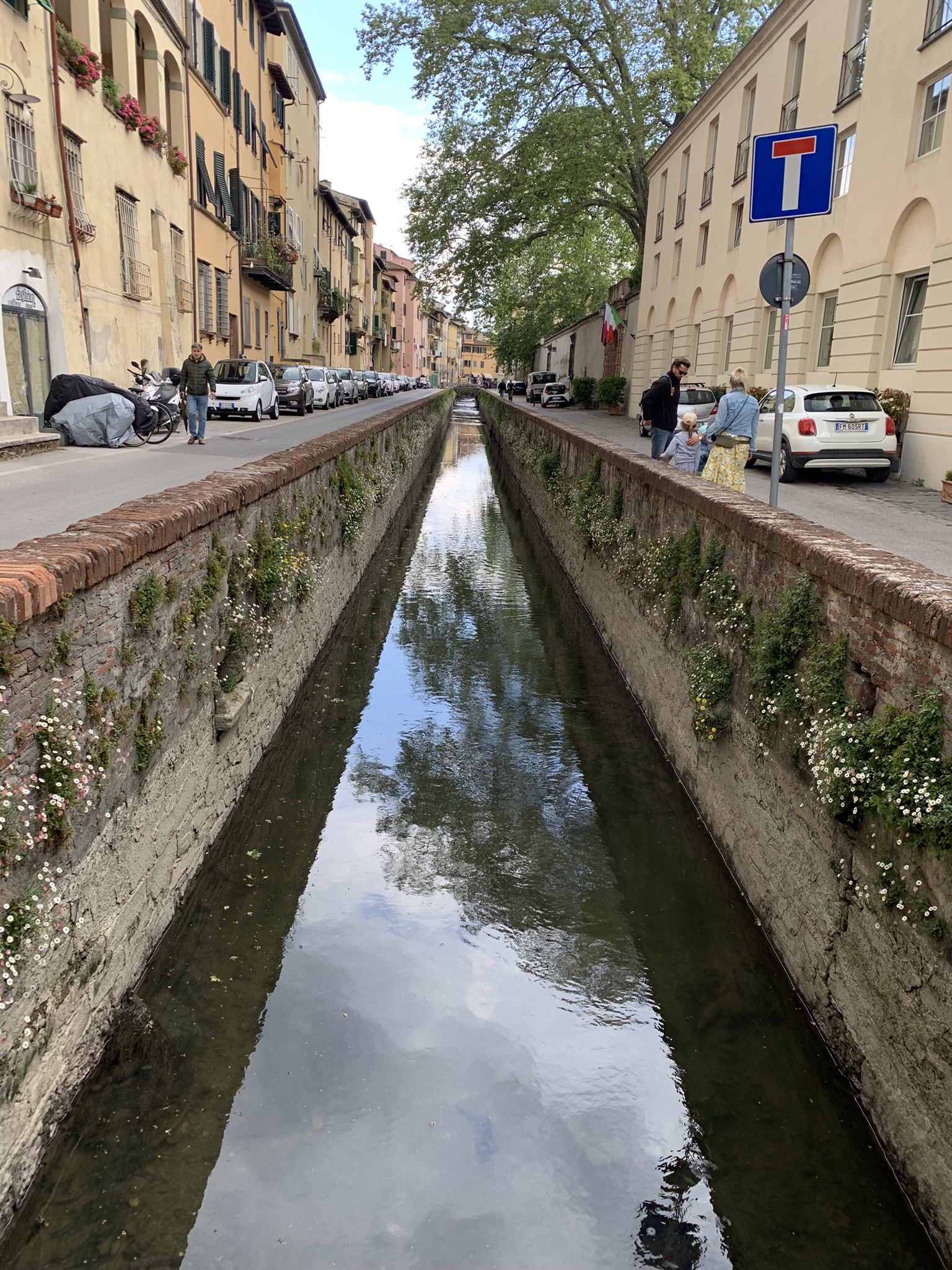 To burn off a few of the Pasquale calories, we hit the trail around the old city built on the remnants of the city’s walls. These are not the tall and narrow (and sometimes treacherous) stony walls of some of the other cities we’ve visited, they are short and wide and now covered with grass and a bike trail. The trail is reminiscent of bike trails in the USA: wide with lots of room for runners, walkers and bikers to share the road. Walking around (we did it three times throughout the day) gives you the feeling you actually live in Lucca, mixed in with locals, as you encircle the town. And that’s just the feel of Lucca. It is larger than we expected. The old town is encircled by the walls which are encircled by the new town which is encircled by mountains of the Apuan Alps. It’s a place you would want to live. It’s near the sea and the mountains and is a beautiful little city.