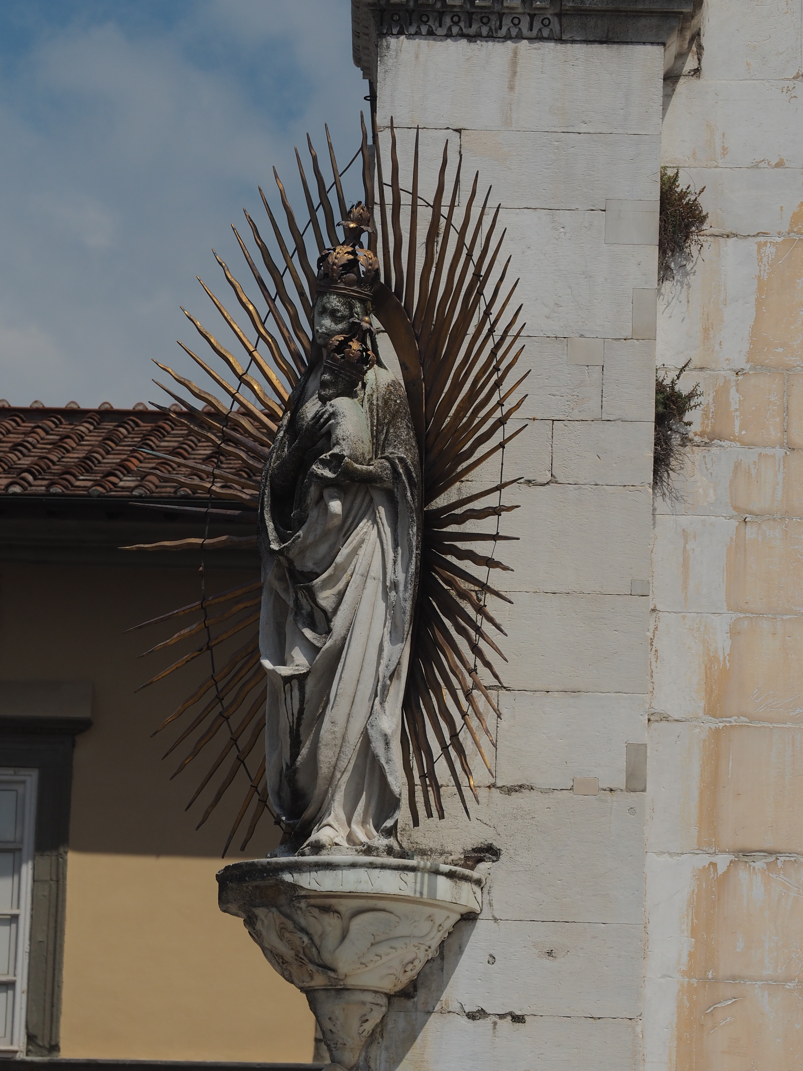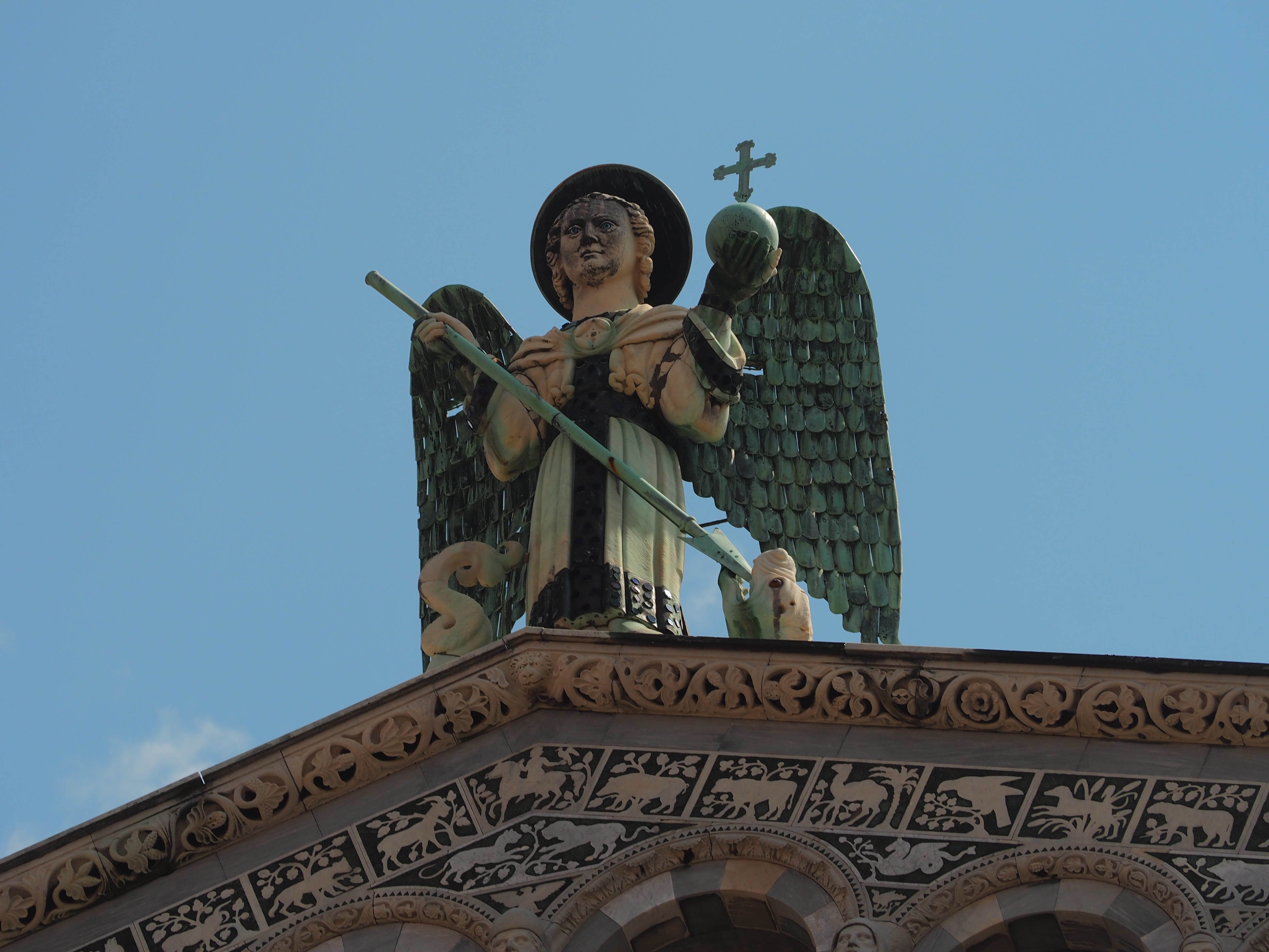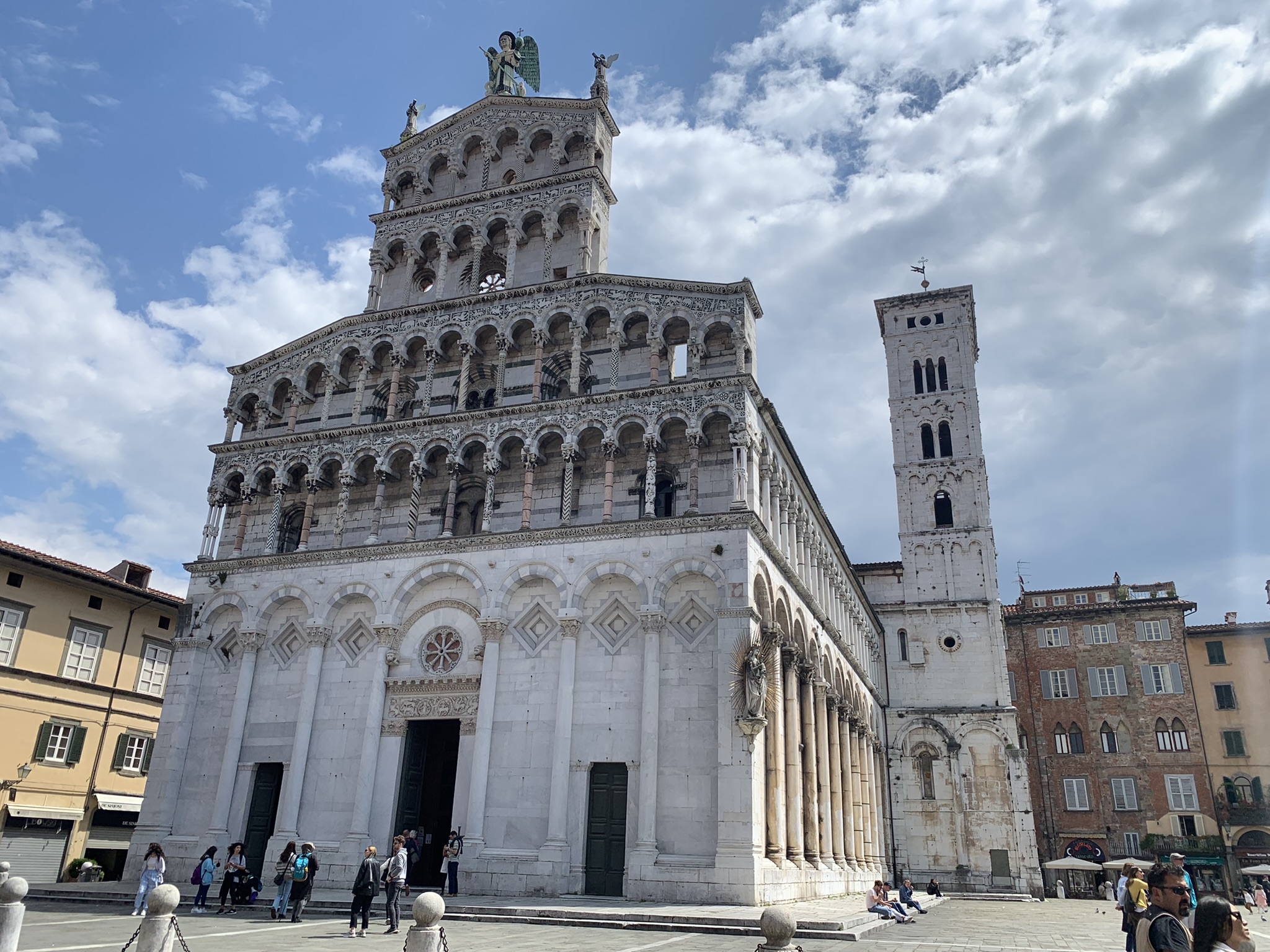 San Michele in Foro. This church is certainly unique. It was built over a Roman Forum (which, to be clear, is not what makes it unique) and the façade is different and interesting. Atop it sits Archangel Michael defeating a dragon, flanked by two angels. I scanned the internet for about an hour trying to find more info about this interesting façade and statue as it looks almost modern. I found very little other than the angel was fixed up to flap its wings on special occasions by a crude contraption (source: Rick Steves) and that on the brightest days (like the one when we visited) you can see the bright glow of green from the emerald allegedly set on its surface (source: visittuscany.com). I guess, for now anyway, I’ll just be fascinated by the almost whimsical nature of the angels atop the church.