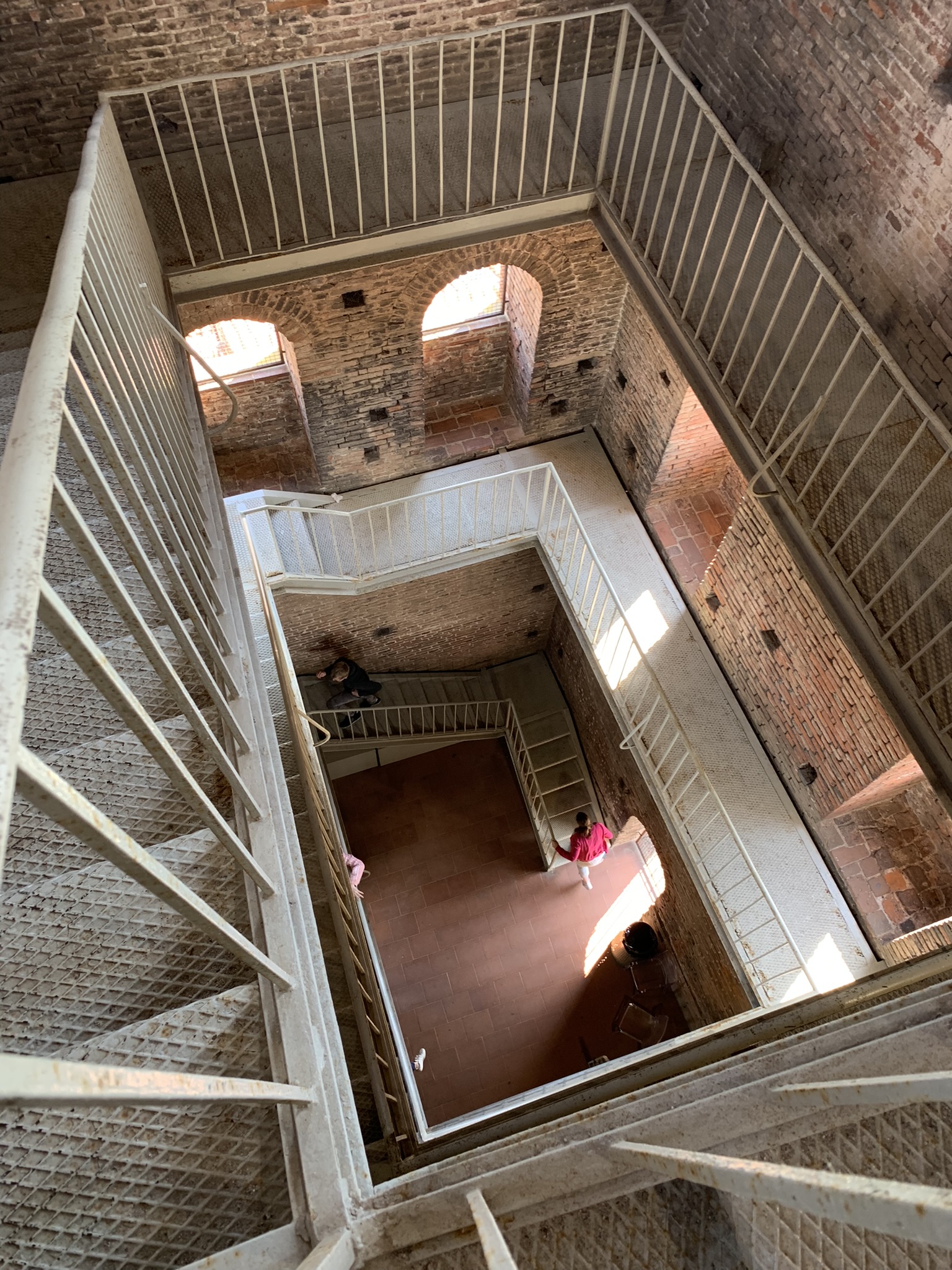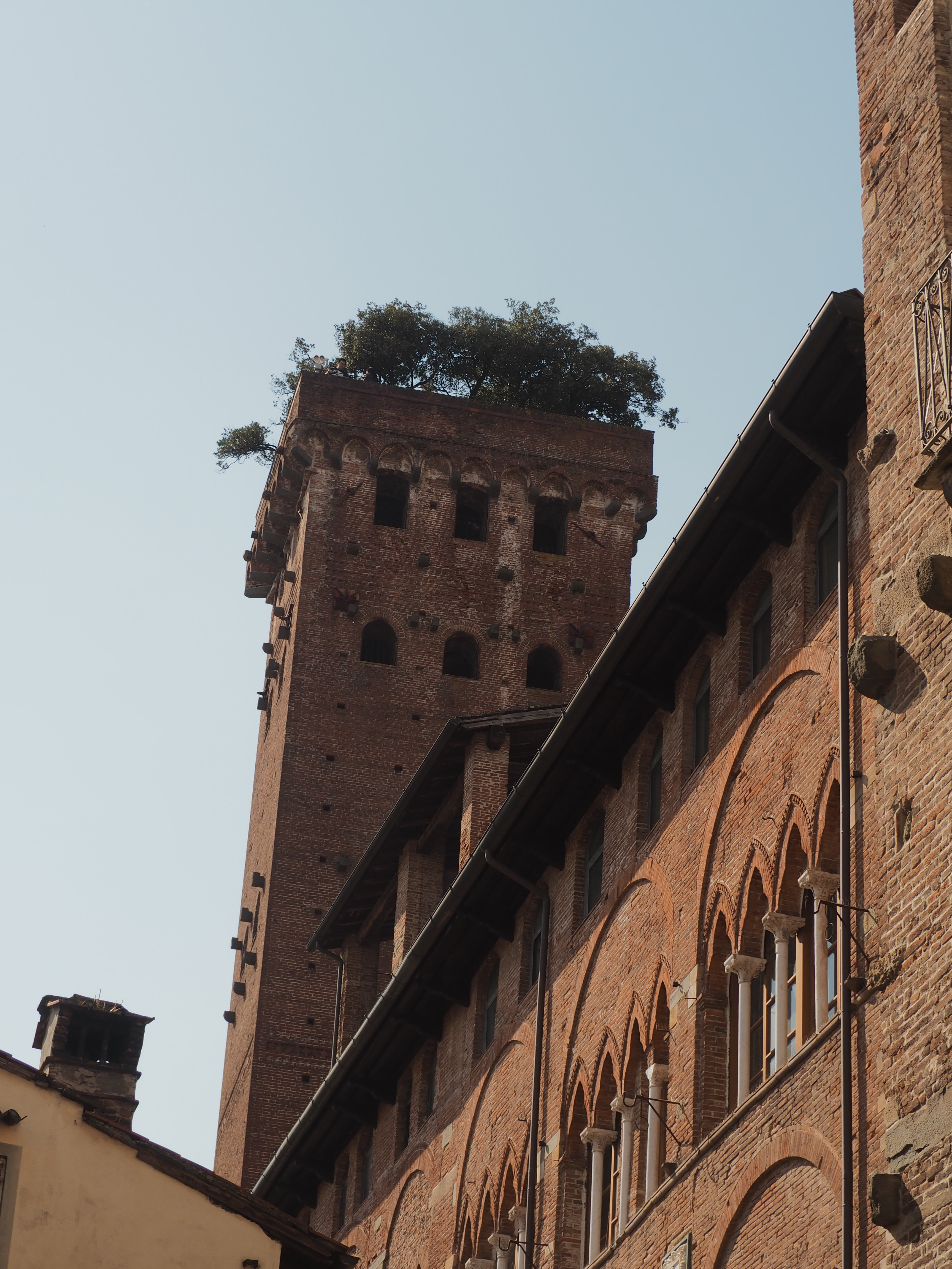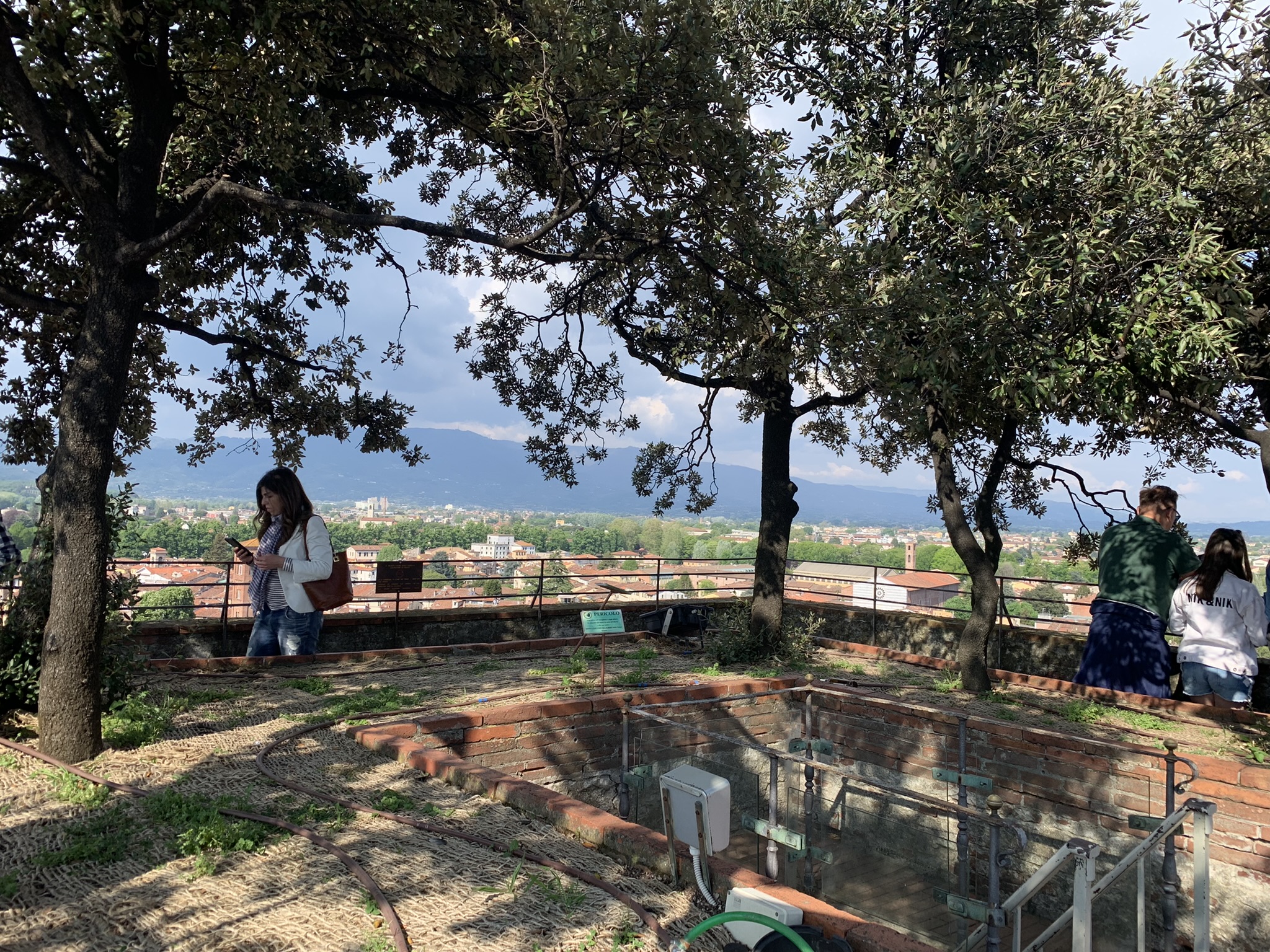 The Guinigi tower. In a whose tower is bigger/keeping up with the Joneses type deal, back in the 1300s the rich families of Lucca were building bell towers throughout the city. This is one of those that remains. It is easily identified, as it has trees growing on top (and is easily found by following the signage with the tree-atop-tower symbol on it). You can climb the 233 steps to the top for about 5 euro. The stairway starts out as wide interior steps winding upward and finishes off as metal wrought staircase, fire-escape style, which are very, very narrow in the final pitch. There’s not a ton of room atop, but the views of Lucca below and the countryside beyond are good. Legend has it that the tallest tree was planted by Paulo Guinigi and when he was captured, imprisoned and eventually executed the leaves fell off.
