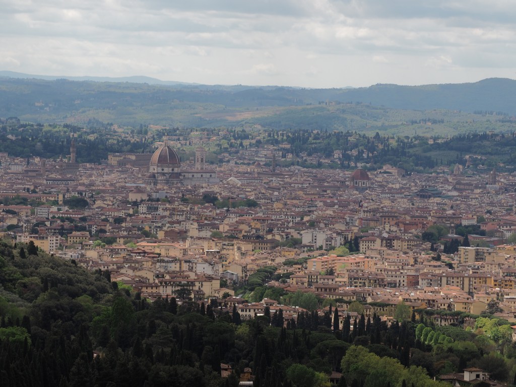 We rolled through Tuscan towns past hilltop villas with the Apennine mountains on the horizon framed by Tuscan cypress trees and footnoted by pastures of green fields, olives, grapes and spring flowers eventually meeting up with the Arno River as it guided us into Florence. One of our favorite ways to travel in Europe is by train. They are clean (most of them), efficient (when a strike is not called) and both of us can look out the window without the worry of driving off the road. They give you time to sit, think and observe as the thud of the tracks rumbles below you. This train, from Assisi, was particularly pretty with lots of unobstructed views of the countryside.