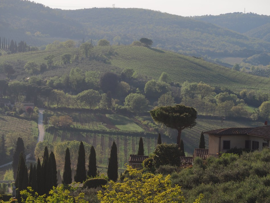 Greve was in a guidebook we had. We knew nothing about it at all. The Greve River runs through town, Tuscany bikers and hikers stop for lunch in the town’s main square. Unlike so many of the towns it is not atop a hill, but down in the valley. We had salad and pizza in one of the aforementioned town square restaurants and we loved it. It feels like a place people actually live and don’t just make their livelihoods from supporting tourism. We’d stay here if we were doing a Chianti focused tour. We took the SR222, which is a beautiful road, and Panzano appeared to be a good runner up for an overnight. Alas, our Airbnb host was waiting so we mapped to San Gimignano without further Chianti exploration until next time.