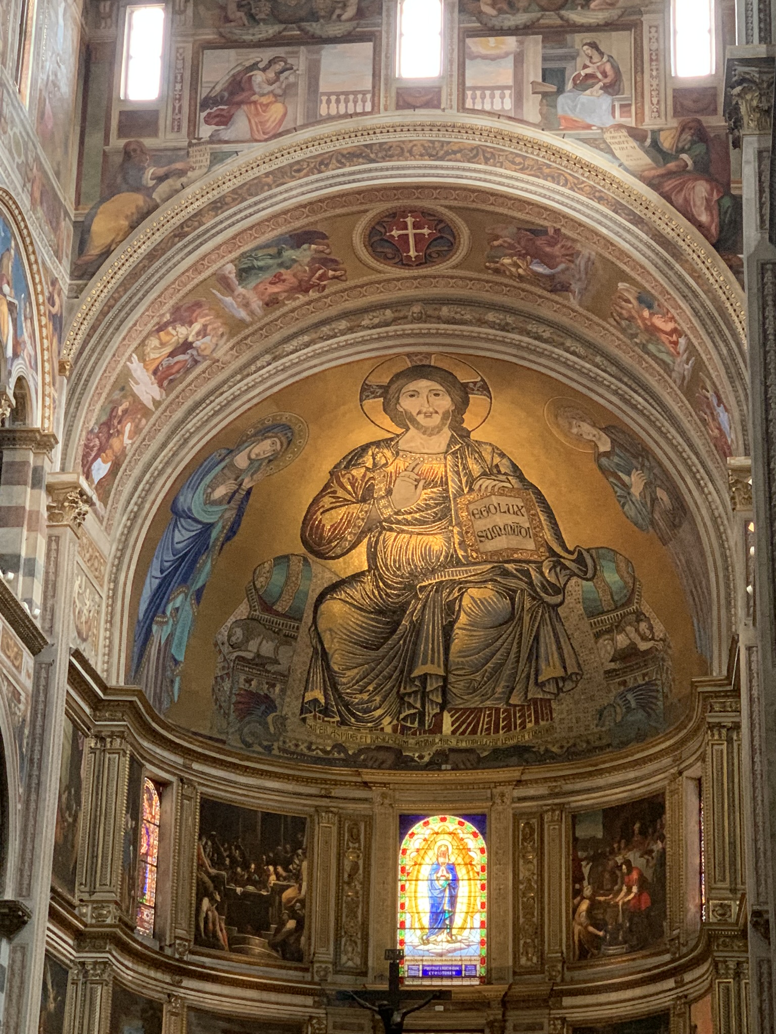 The Duomo has an impressive altar with Jesus as the highlight both behind and in artworks depicting his life. It was once the largest cathedral in Italy and sits between the tower and Bapistry completing the Campo dei Miracoli.