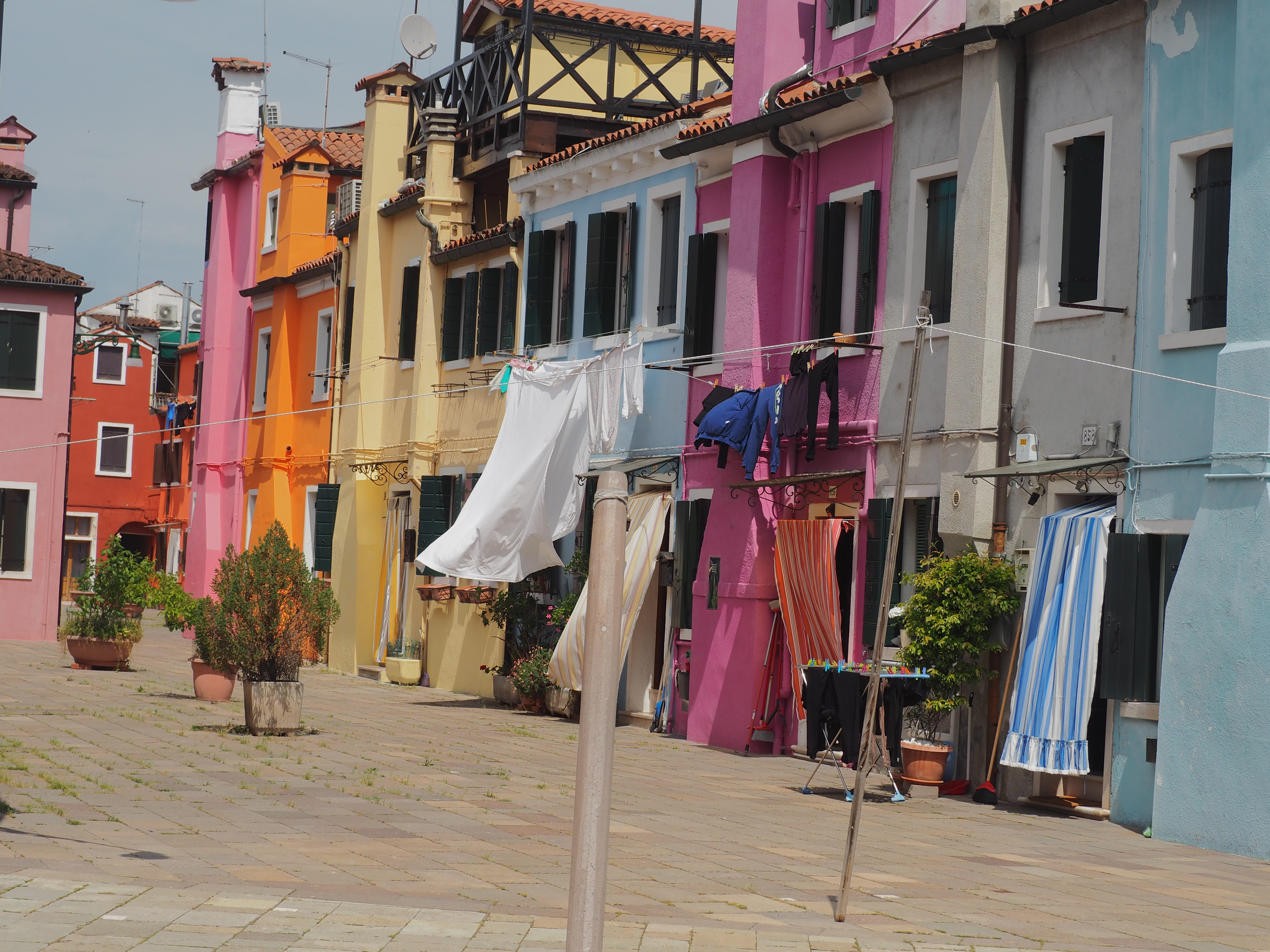 We did take a day trip over to Burano Island on one of our days here. The Vaporetto line 12 takes you there and to Murano (if you want to see some glass blown), Mazzorto (also connected to Burano via a small foot bridge) and Treporti. I’d read that Burano was a “small and quiet fishing village with colorful buildings”. It was all of the above except for quiet. When we got on the #12 boat I assumed most people were big glass blowing fans. I was wrong. On an unseasonably hot and humid Saturday in May, the masses were headed to Burano. Without a lunch reservation, we struck out a couple of times before arriving at Osteria Al Museo across from the creepily quiet (but perhaps understandably so) lace museum. It was delicious and we arrived just ahead of our fellow reservation-less riders to enjoy some squid ink pasta and a chocolate mouse for Melissa’s birthday.