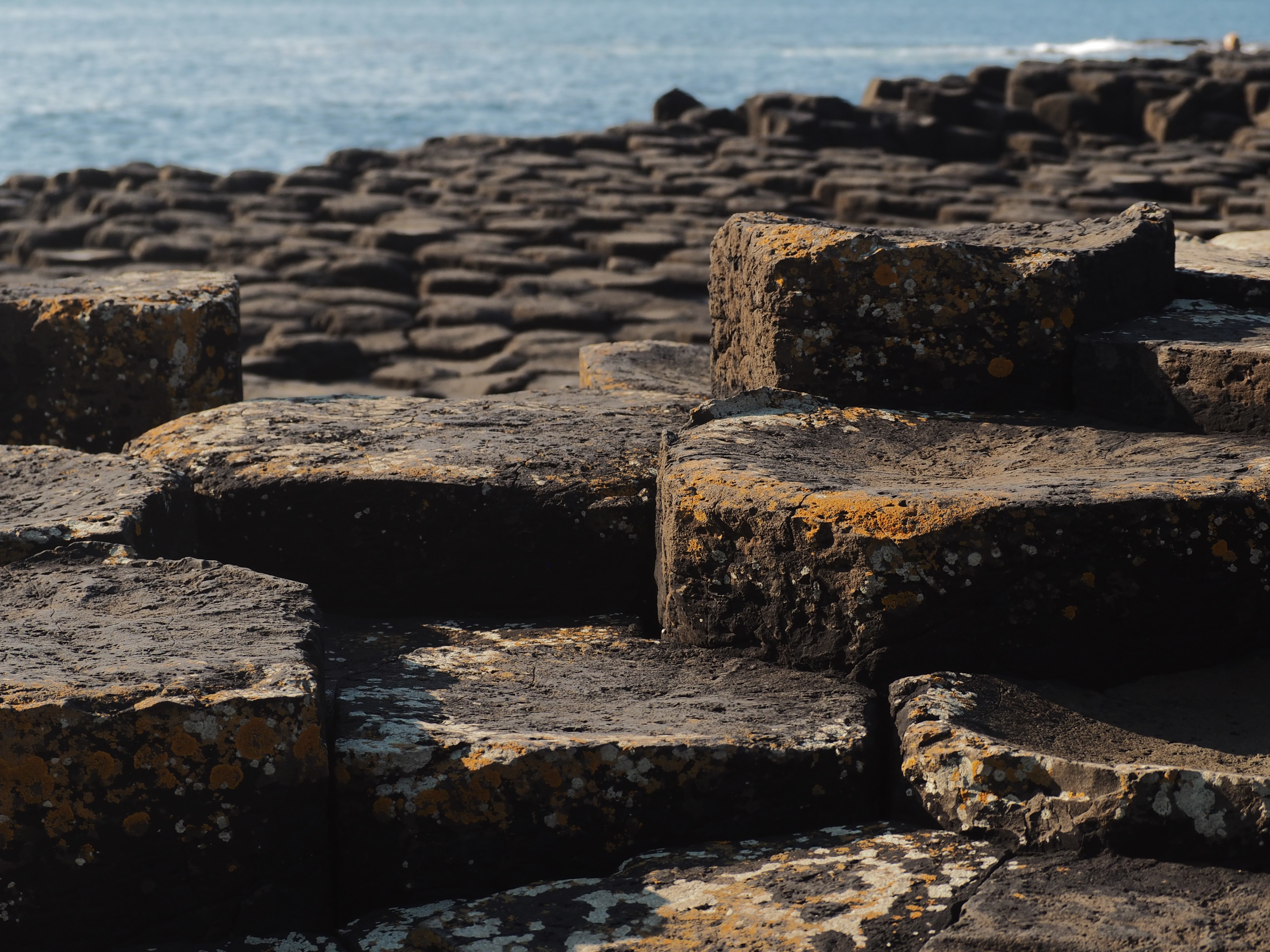 Our last stop before ending at the Bushmills Inn (yes, that Bushmills, whiskey lovers) was the Giant’s Causeway. We took the low road, vs the cliffside path, both down and back and were glad that the sun was shining so we could enjoy the rocks themselves without fear of slipping. Thrusting upward in unique patterns, we’ve never seen anything quite like it. Whether they were placed here by Finn McCaul in preparation for his battle with the Scottish giant or by volcanic activity they’re definitely worth a stopover.