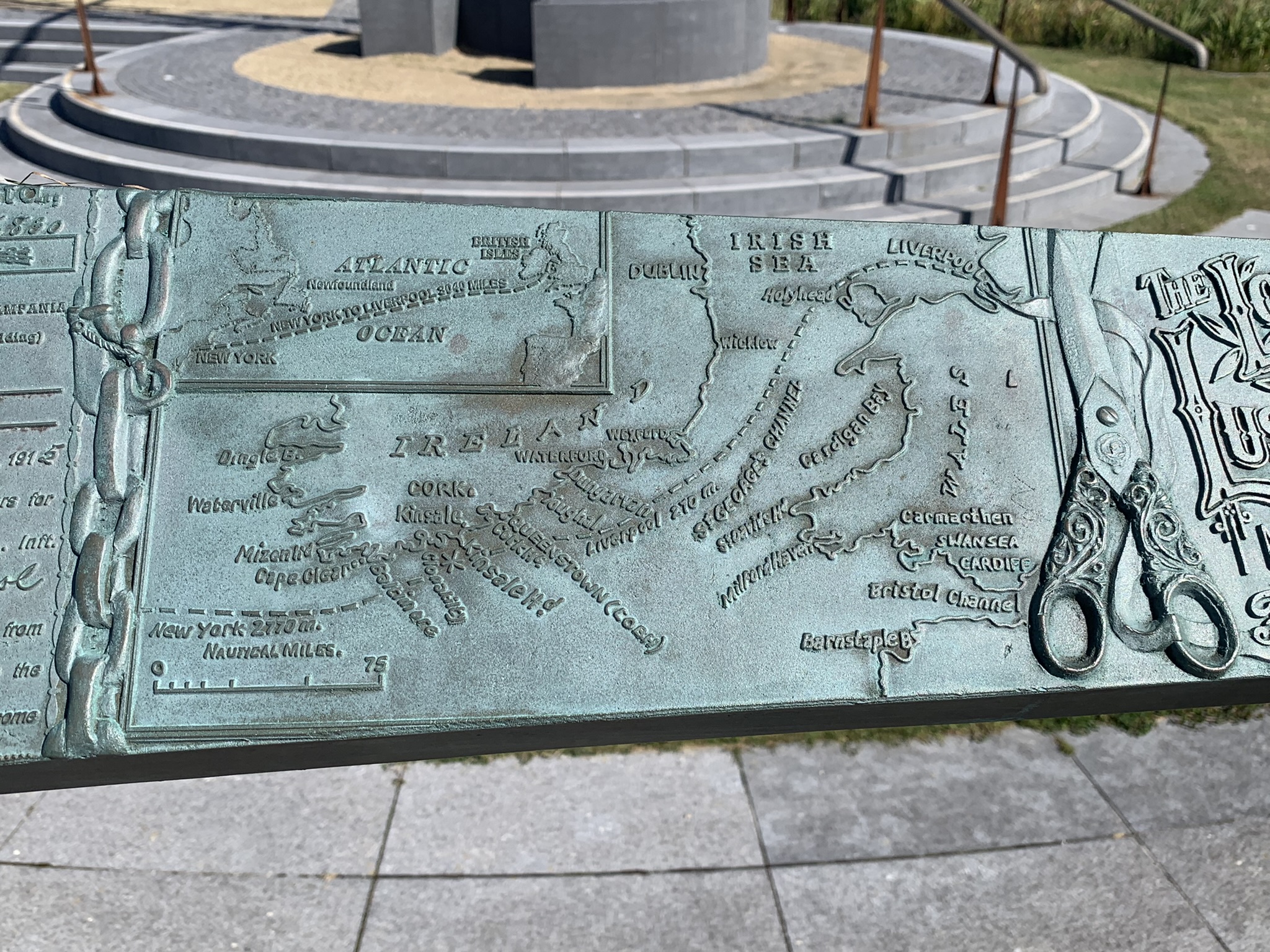 On our way out of town, we popped over to Old Head to visit the Lusitania Memorial there. The Lusitania cruise ship was torpedoed off the coast of Ireland by a German U-boat in 1915. Memorials dot the shoreline in the small towns along this part of the Irish coast. The ship was visible from the shores of these southern Irish port towns and the locals rallied to save 761 people. Alas, not all were saved and 1201 died that day despite best efforts as the ship sank in a mere 20 minutes. The memorial is small and honors the lives lost on this beautiful peninsula poking into the Atlantic.
