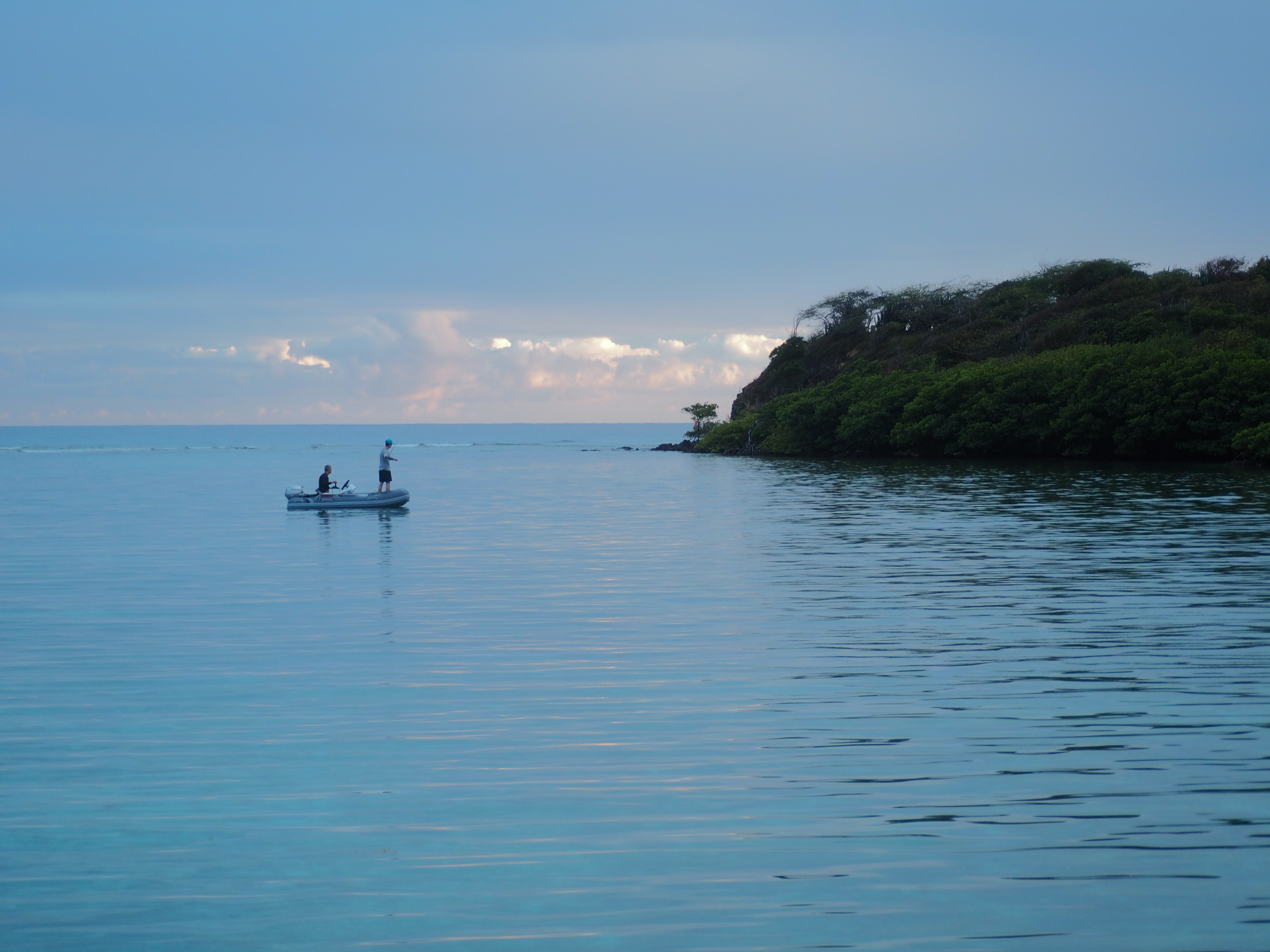 We spent the next four days on and around the island of Culebra. Poking into inlets for snorkeling, swimming or fishing. During the day, the bright blue skies reflected on the water below where various shades of blues, greens and aquas marked the depth of the seas and existence of coral beds like a colorful depth chart. There was little wind to speak of, so our movements were all motorized.