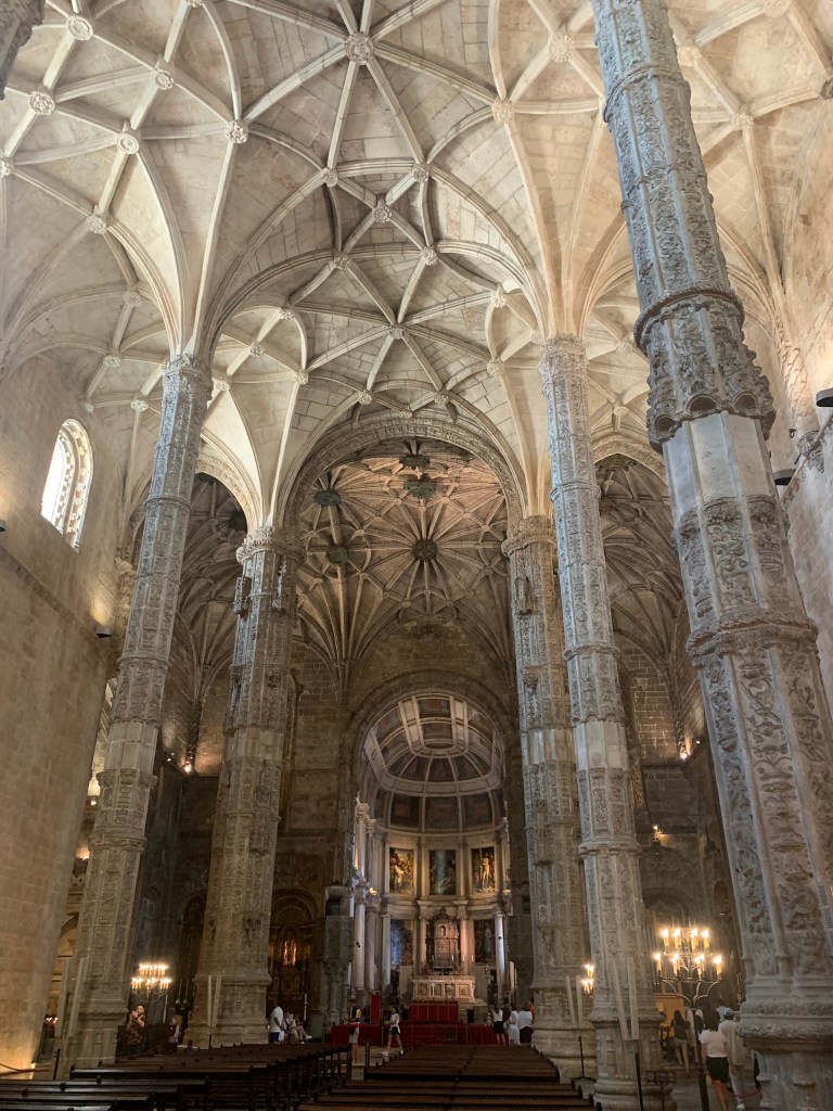 The monastery is European Gothic built in the Manueline style (“a Portuguese style of depicting sculptural details and maritime motifs”) to celebrate the “Discoveries”, which were the quests to the east made by Portuguese sailors of the day. The Hieronymites (the Order of Saint Jerome), whose spiritual purpose was to give guidance to sailors, populated the monastery. The architecture is spectacular and worth a stroll through for the €10 adult admission price (also covered if you have the Lisbon card).