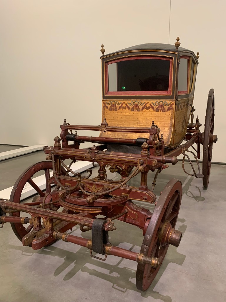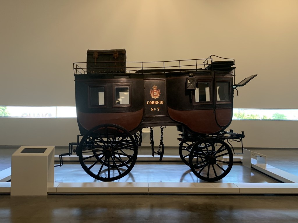 4. National Museum of Coaches. Back on terra firma, it’s time to check out some modes of land transport. We had this museum on our list for our very first visit to Lisbon in 2018 but we didn’t make it to Belem that time. Sadly, it took us 5 years to finally get here. I’d read somewhere that it is Lisbon’s most visited museum. Despite the sparse crowd on a beautiful Friday afternoon as evidence to the contrary, if it isn’t, it should be. It’s fantastic. You can view horse drawn (and some people drawn) coaches through the years, including those of Portuguese royalty, a coach for prisoners, a coach for carrying sick people (not a lot of ventilation), a mail coach and everything in between. Be sure to read the placards with interesting little tidbits about the decorations and carriage uses.