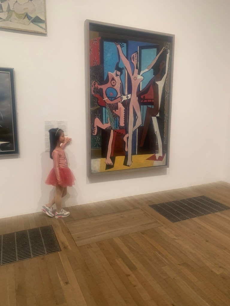 Day Three: Bankside. On our third day, we crossed the Thames to visit Bankside. We began at Tate Modern (free to visit except for special exhibitions). We love a good gallery and are typically more drawn to the impressionists but our visit to the Picasso Museum in Antibes last year really helped us appreciate the works of Pablo and fellow cubists. We particularly liked the gallery on floor 3 of the main building, in particular, with its randomly placed (seemingly) smattering of Picasso, Jackson Pollack and others. We don’t totally understand or haven’t found (yet) appreciation for some of the message art (words stenciled on a wall or a pile of sand just don’t feel like “art”, but what do I know?) but we did enjoy our visit and avoided enough of the really disturbing stuff to fend off dark nights full of terrors.
