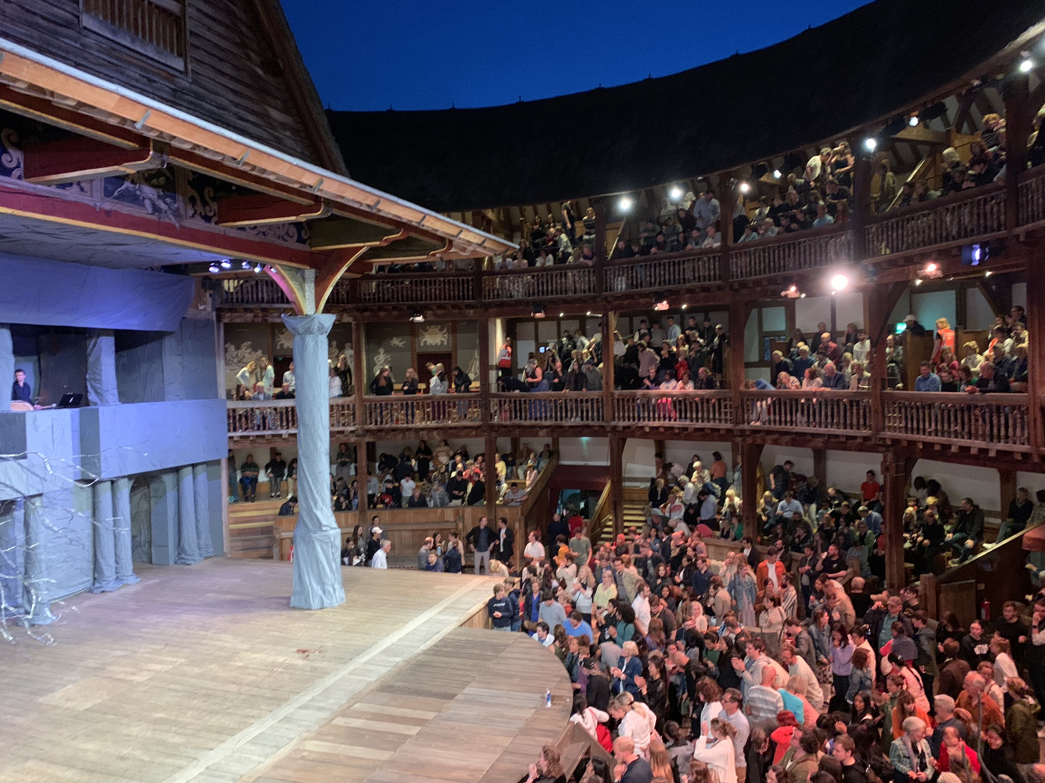After some tapas for an early dinner, we made our way to The Globe Theater for a playing of MacBeth. This was a classic tale filled with modern props and costumes (spider man PJs, a blender filling in for the cauldron, gurneys for the corpses struck down by King and Queen). The theater itself (the one rebuilt in 1997 as the original burned down in 1613) helped us appreciate Shakespeare’s staging of performances in the original and the weather continued to cooperate making for a more pleasant open air showing and a beautiful night to observe the lights reflecting upon the river on our walk across the Millennium Bridge towards home.