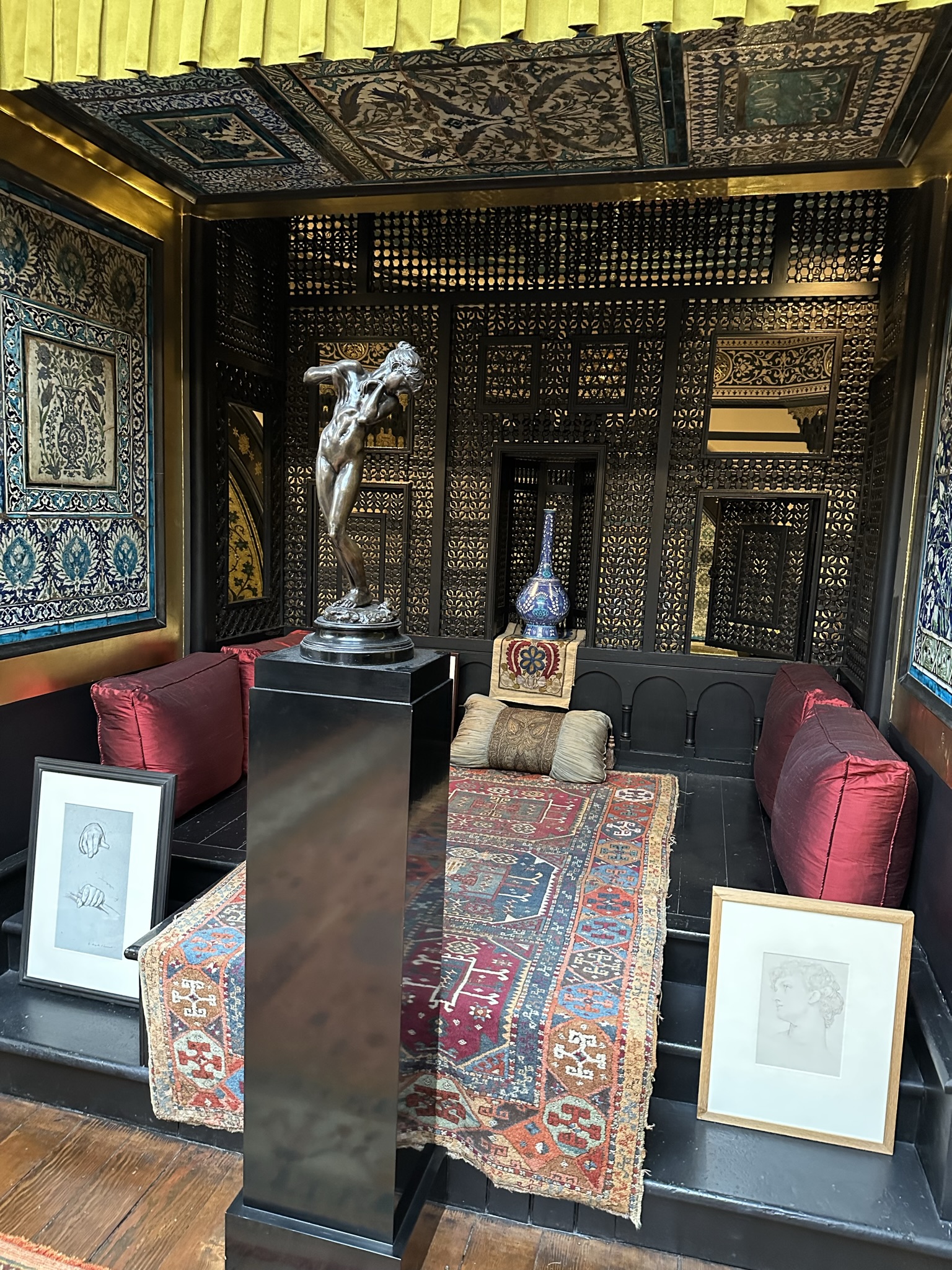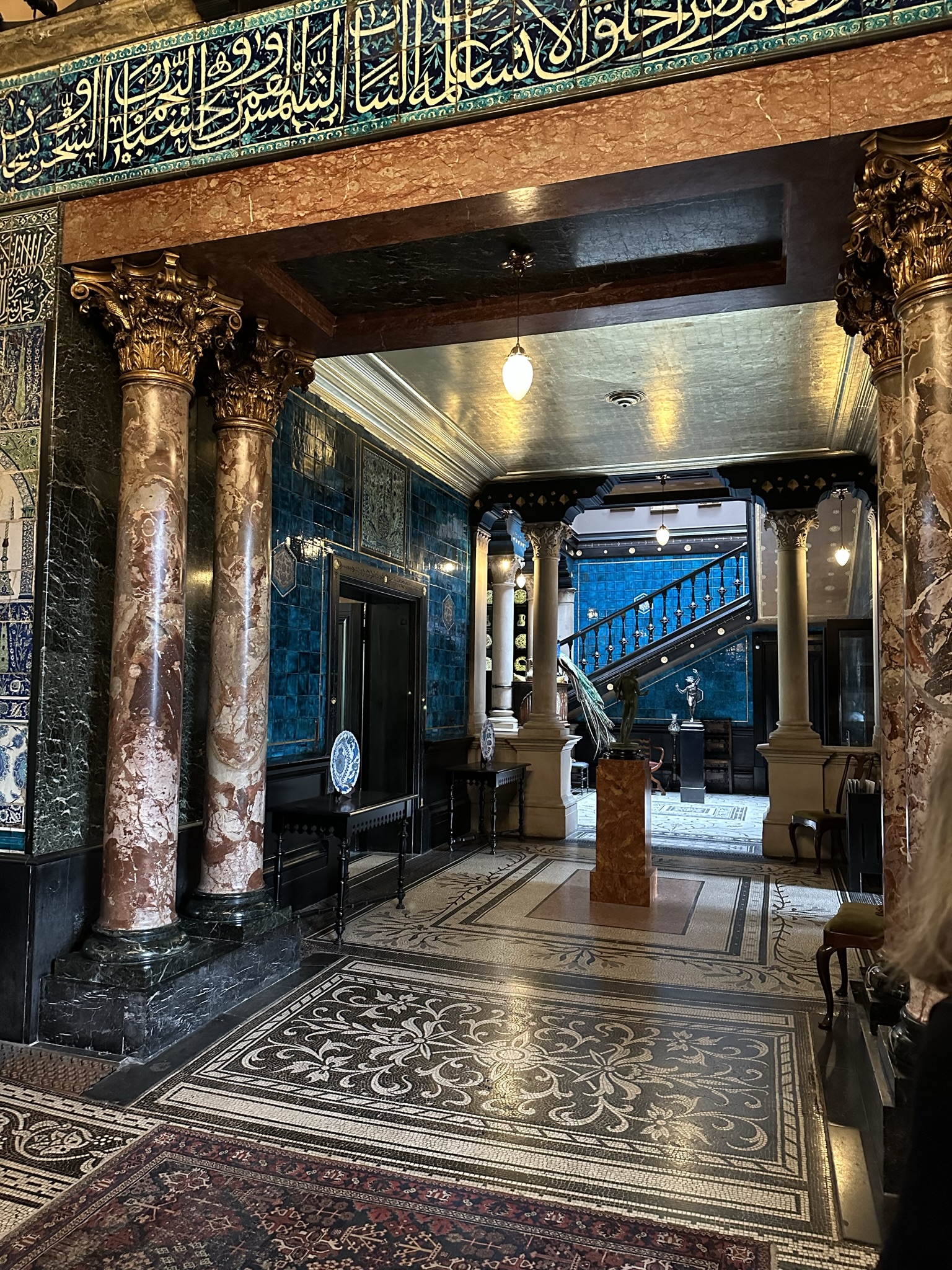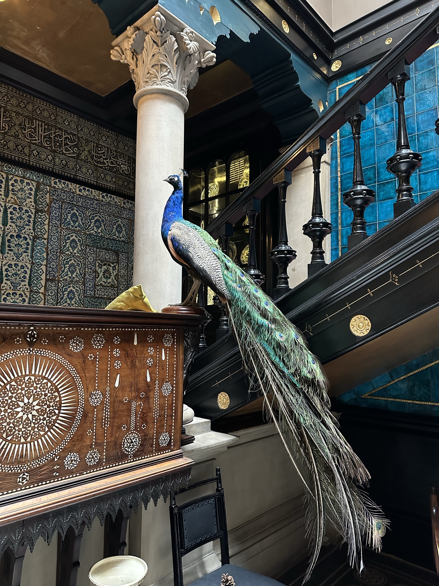 Then, exiting the park, we visited Leighton House (an admission fee is charged) an old Victorian mansion of the artist Frederic Leighton whose decor was influenced by his travels and Islamic designs. We stopped off in the back garden cafe for cappuccinos and what they called a Turkish Pancake, a shortbread pastry which didn’t strike as overly Turkish and was certainly not a pancake but was what caught our eye and made us sit.