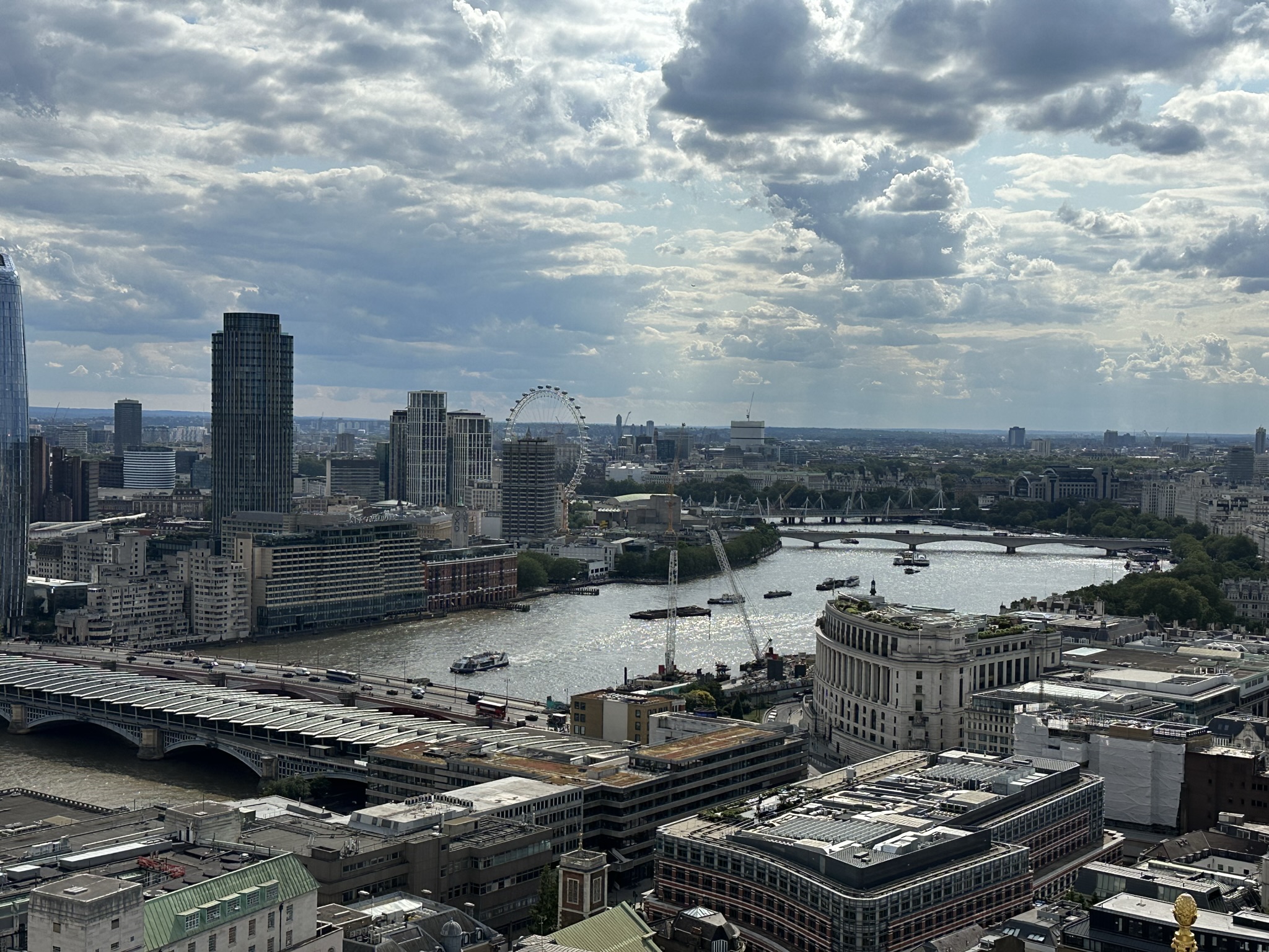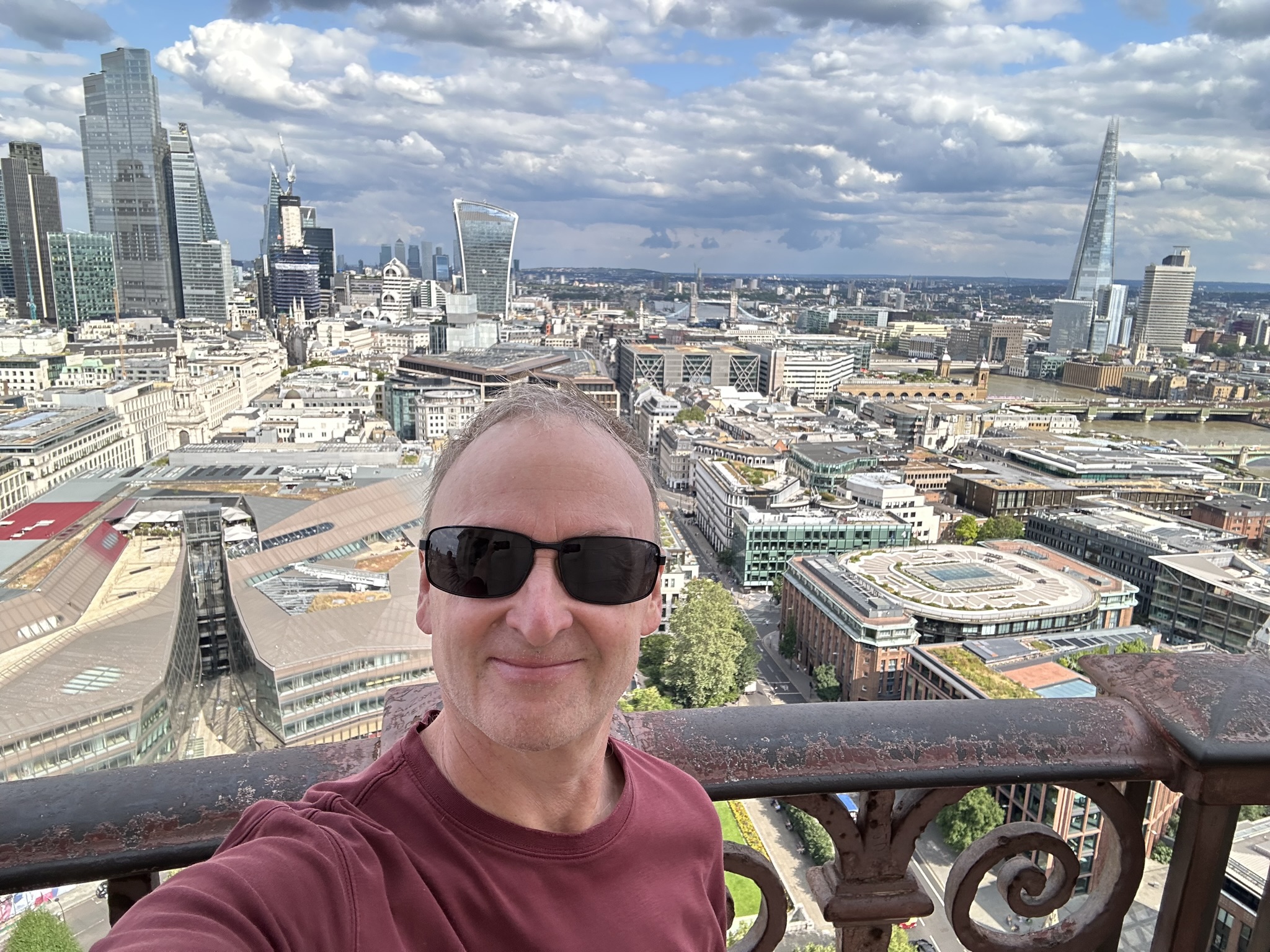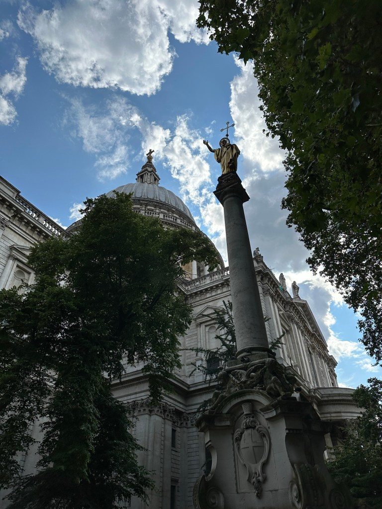 While Melissa worked, I set off in the afternoon to visit Saint Paul’s Cathedral (free to worship, admission fee to tour – advanced purchase for a discount and recommended). She’s not a huge fan of crowded, cramped, winding staircases to the top of towers and, well, I am. With Rick in my ears, I toured the chapel, viewed the dome from below and checked out the altar and the American Memorial chapel. My visit was accompanied by a choir practicing for that evening’s service, an added bonus.