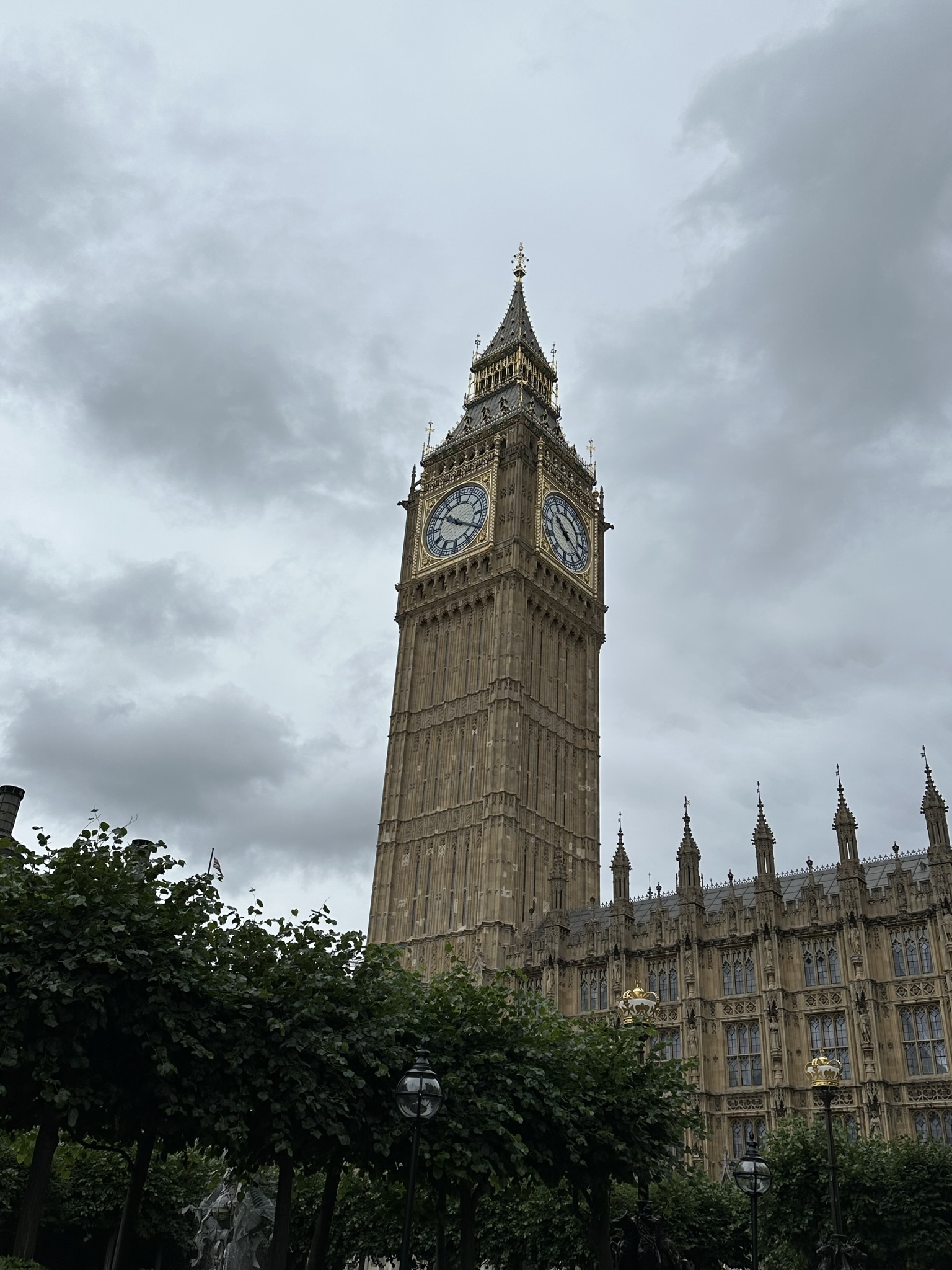 Our Final Full Day: Look Kids: Big Ben, Parliament. For our last full day, I’d booked us a Parliament tour with the audio guide (there is a fee to tour Parliament). Rain (our first) was in the forecast so we donned our rain jackets and headed down through Hyde Park, past the Wellington Arch and Buckingham Palace and landed at Parliament Square. Last time we came here, we toured the Churchill War Rooms which is on our London must do list. That’s close by here as well if you’re hitting the Parliament area sights (and well worth it).