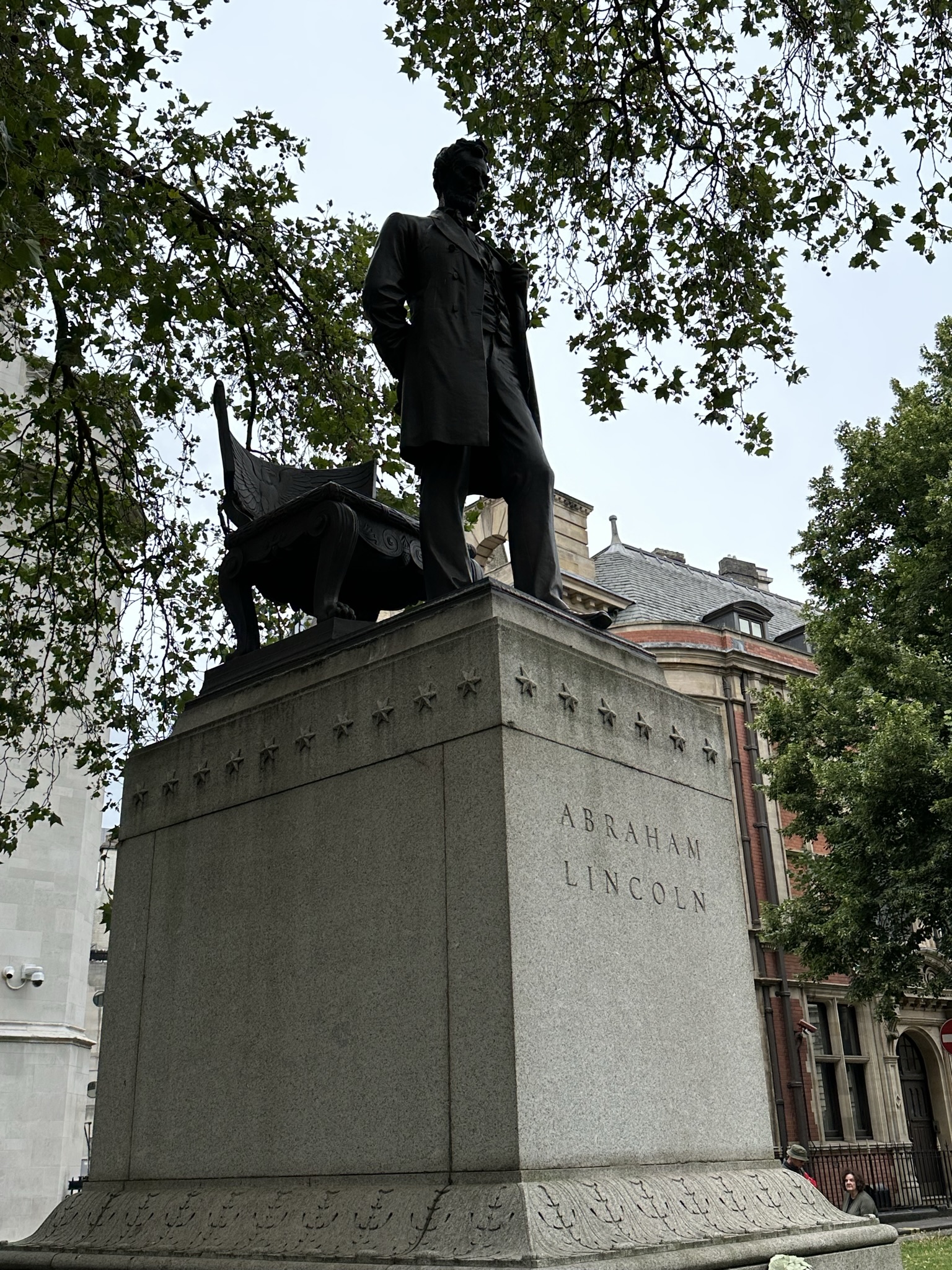 We’d planned to visit Westminster Abbey as well, but not knowing how long the Parliament tour would take I’d neglected to buy tickets in advance and they were all sold out, so we swung by the statue of Abe Lincoln (built to commemorate the 100-year anniversary of the War of 1812) and headed back in the developing rain retracing our morning route home.