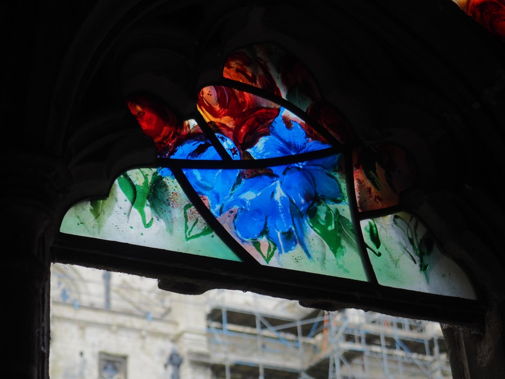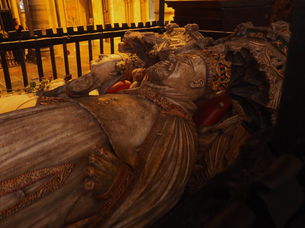 The Cathedral in and of itself took us nearly two hours to tour, which we were told it might when they handed us the audio guides and I thought, “surely not”, but she was right, and we took our time. You enter the spectacular nave, visit the cloister, learn about St. Thomas’ martyrdom, visit the crypt then the quire (choir) and Trinity Chapel where you can view the miracle windows (stained glass windows depicting the miracles at the site of St. Thomas’ assassination and tomb), the eternal flame which has replaced Thomas’ tomb when Henry VIII had it removed (only room in this kingdom for one hero), the tomb of Henry II, who came here after Thomas was sainted to beg forgiveness and be flogged for his misdeeds, and the tomb of Edward, the Black Prince, a successful English commander in the 100 Years War along with his helmet, shield, gauntlets (and dog at his feet).