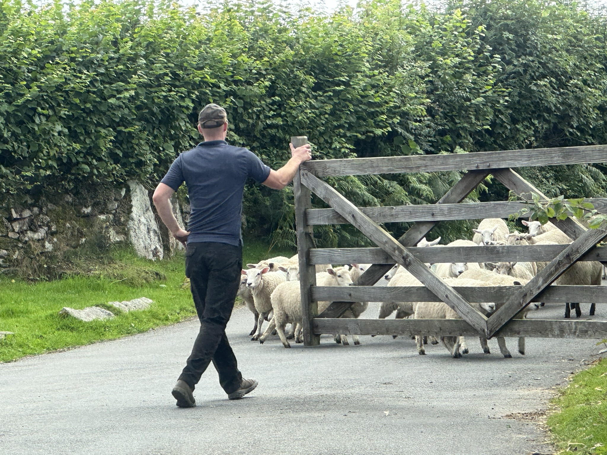 Dartmoor National Park. Dartmoor Park has 450 miles of public walking trails and 90% of it is used for farming. Grazing sheep, goats, cattle and ponies outnumber the cars along the winding roadways, some narrowed by forests with lush growth alongside and overhead or 15- to 20-foot-tall ivy and vegetation covered stone walls built long before the automobile made its way to southwest England.