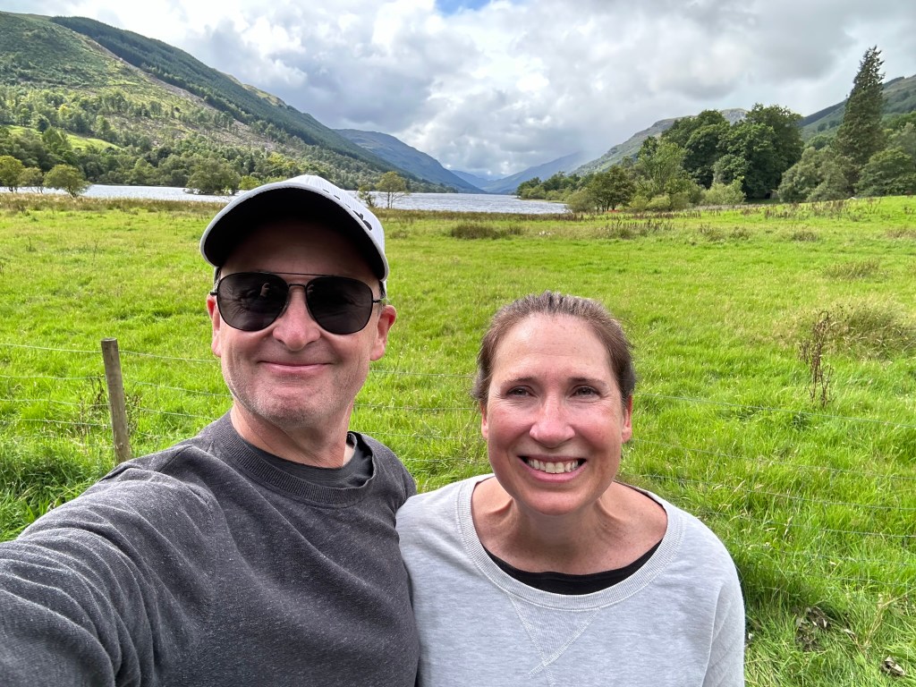 Glen Affric. On our first full day, we hit the road in search of a view I found in our guidebook in Glen Affric. One thing we’ve learned in Europe, reinforced in England and really experienced in Scotland is that a few miles to a destination does not mean something is close, especially when those miles include swing bridges which are unpredictably open and tiny narrow single lane roads which frequently require pausing for livestock crossings or pulling into passing lanes to let oncoming or larger vehicles by. It took a little less than 2 hours to go about 50 miles to get there and a little more than 90 minutes to get back, but we did get out and walk for a while, including up to the aforementioned viewpoint which defined our quest. Though most of it was from behind the windshield, we passed through some pretty beautiful country on the west side of Loch Ness and up into the hills of Glen Affric.