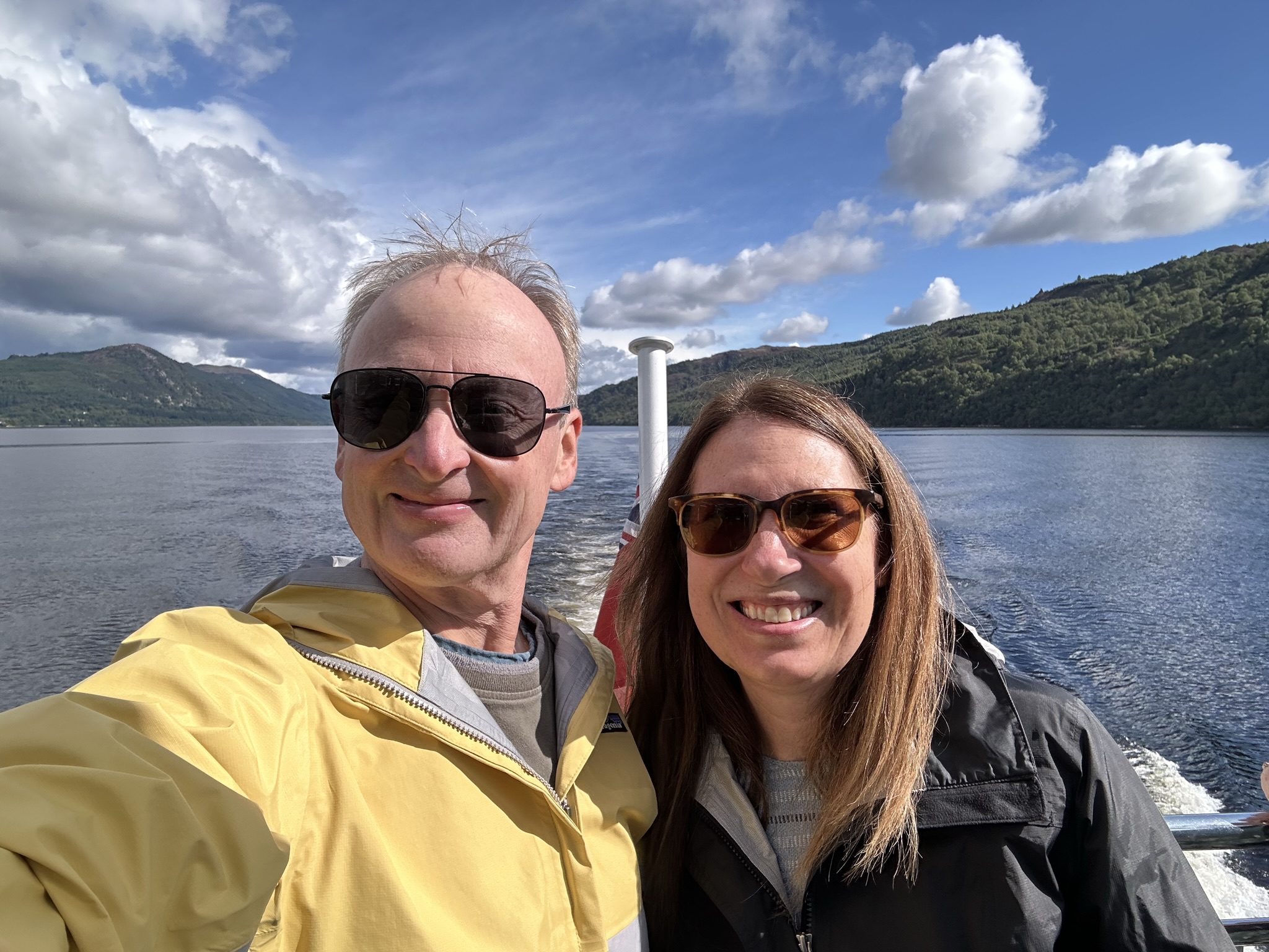 Loch Ness. In another break from the action (aka, the rain), we got lucky in that our pre-booked cruise on Loch Ness was under brilliant sunny skies, cloudless by Scottish standards. We went on Cruise Loch Ness, a 50-minute tour around the south end of the loch with a very well narrated trip full of interesting facts, the history of the search for Nessie and a wee bit of Scottish humor sprinkled throughout.