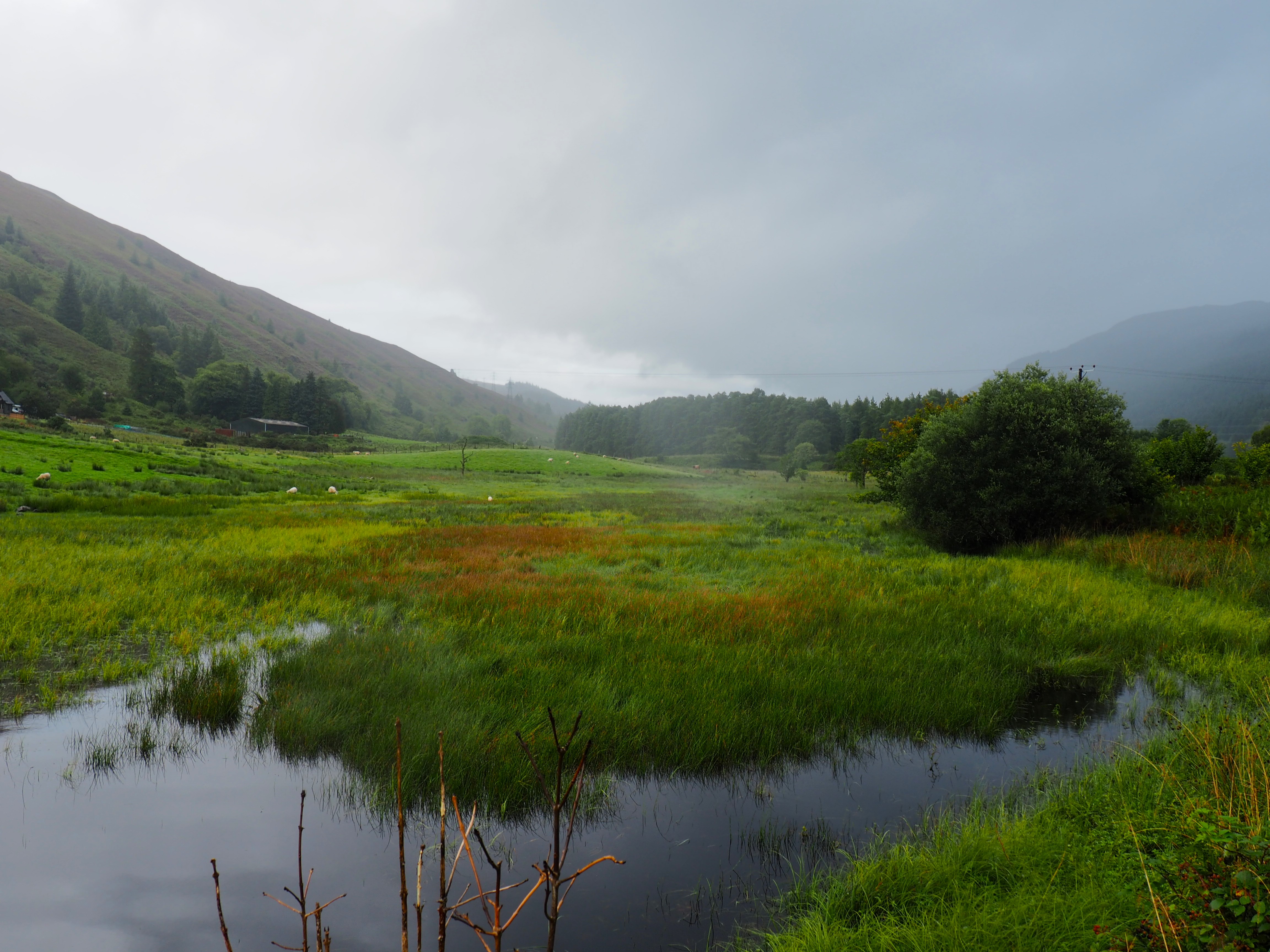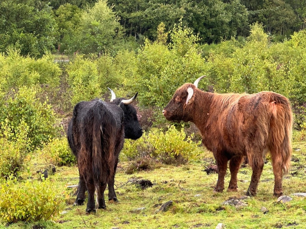 Cairngorms National Park. We arrived in Grantown-on-Spey on the day of a Harley Davidson rally and lunched at the local cafe with the bikers eating lox and bagels and sipping cappucinos (Sturgis, this is not). We followed it up with a two hour walk along the river Spey and in the Anagach Woods under nearly sunny skies. With a skinny latte in hand, we strolled back to the car as the skies opened up and rode back on a stunningly beautiful (but narrow and windy) drive through the Cairngorms National Park through Laggan on the A86.