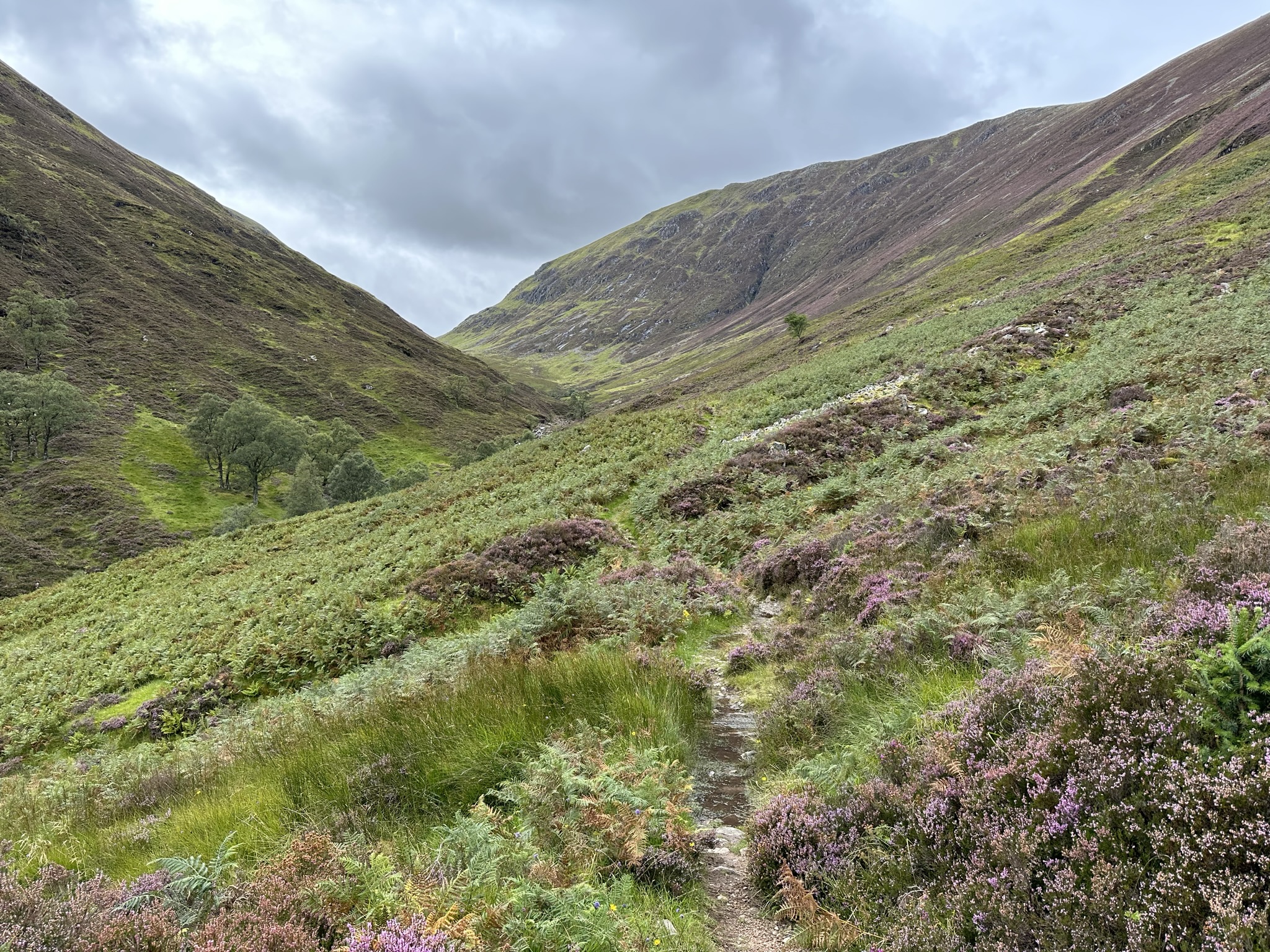 So, I set off, about an hour’s walk from our Airbnb along the Great Glen Way to the trailhead for the ascent. When they tell you on AllTrails that a trail is “Hard” in Scotland, believe them. This sucker went straight up for probably a third of a mile and then wound its way as it climbed through gorgeous highlands meadows filled with heather and hardy trees being whipped by wind over a rocky and muddy trail as it was bathed by the week’s rainwater most of the way. Hard? Yes. Beautiful? Yes. Worth it? Yes.
