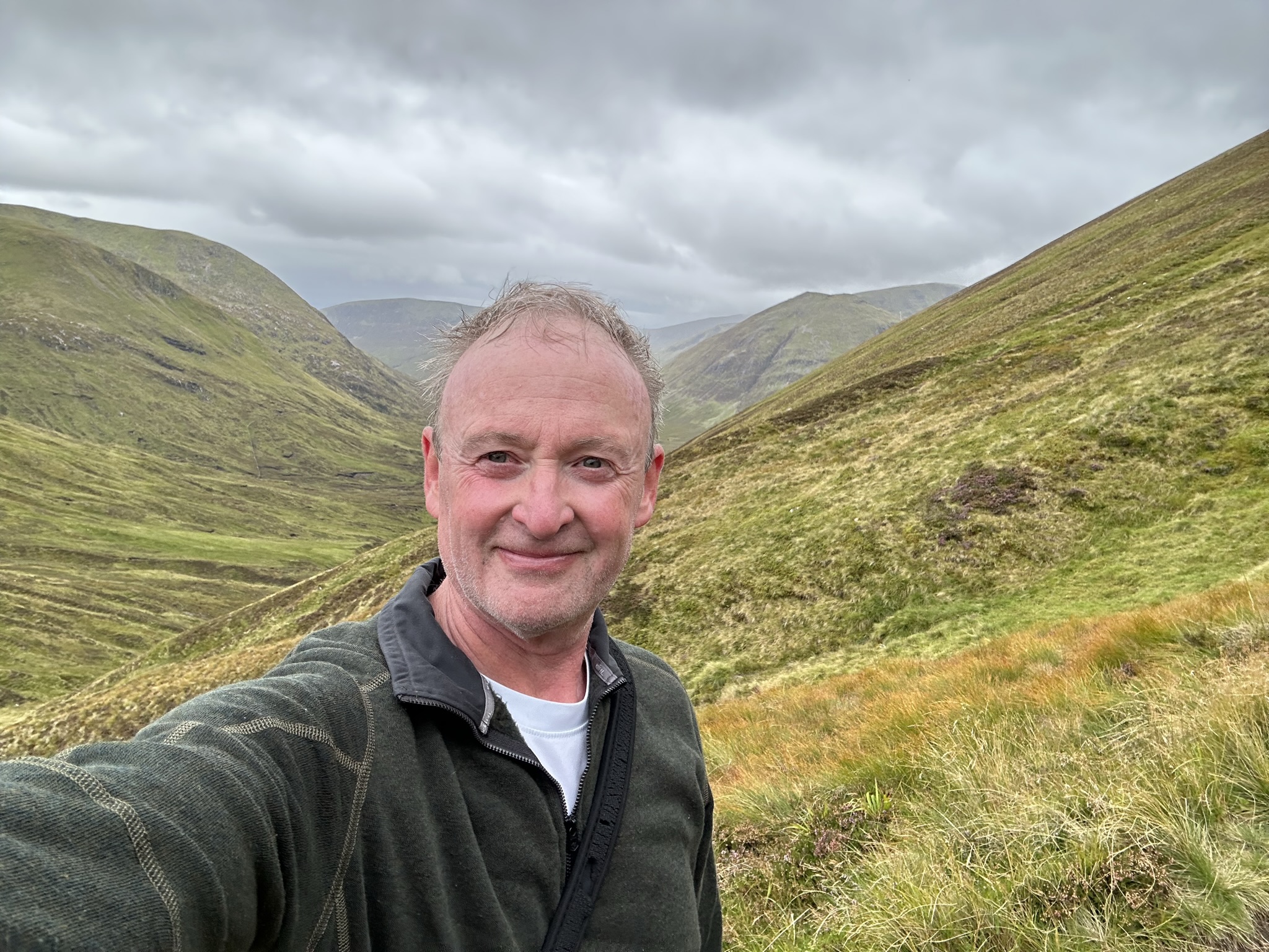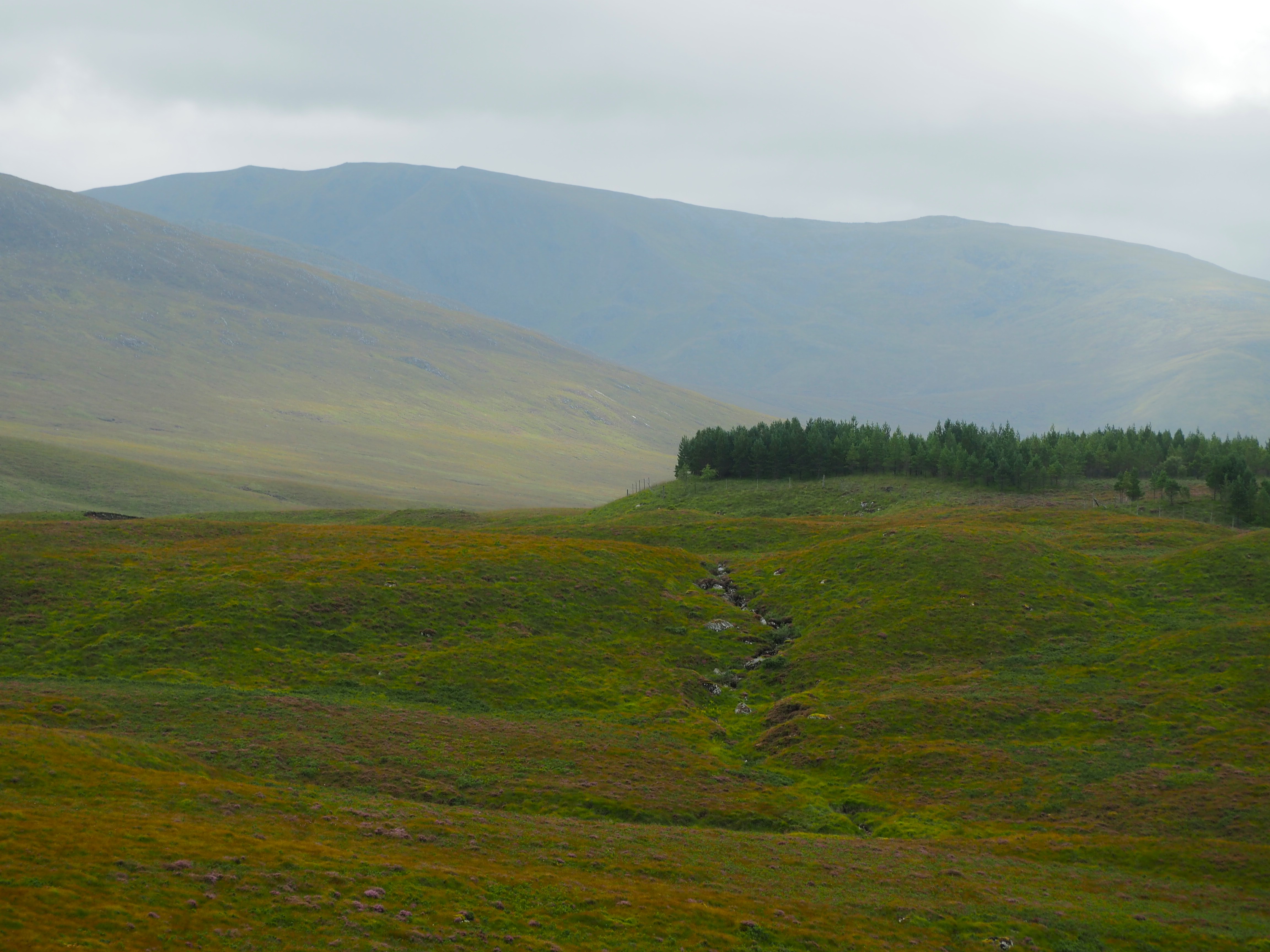 Loch Lochy Munros from Kilfinnan trail. After navigating the lochside trail of Loch Oich and with sunny skies, not by Colorado or Portugal standards mind you, and a forecast of “possible rain showers around 5pm”, after lunch, I set out to tackle some incline on the Lochy Lochy Munros trail and climb Meall na Teanga, the mountain which has loomed over us for nearly a week. After five days in the highlands of Scotland I now translate “possible rain showers around 5pm” to “near certain rain in varying degrees of intensity from a light refreshing mist to an outright downpour occurring anywhere between 3:30 and 7:00pm”. You can’t fool this old dog more than three days in a row before I’m on to your tricks, Scottish weather.