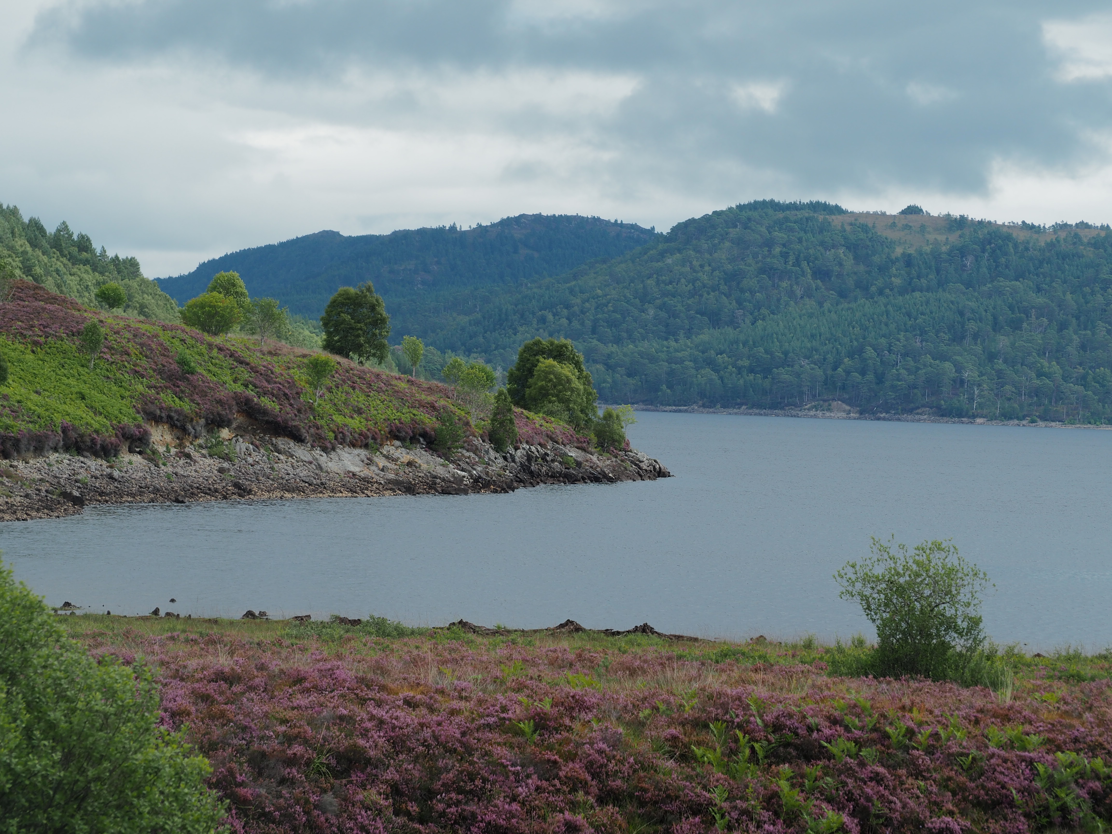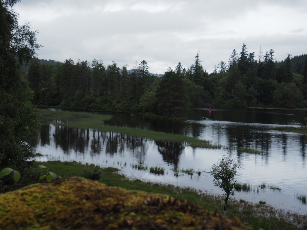 Loch Oich. Closer to home, we took to a trail I found, part of the Great Glen Way, a 79 mile path which passes from Fort William to Inverness through the central highlands, along Loch Oich. We took the eastern path from Oich Bridge to its north down almost the length of the Loch to South Laggan. The trail was closed for tree clearing at South Laggan but ordinarily encircles the loch (about 12 miles around).
