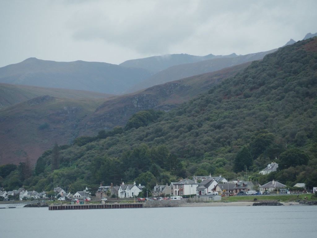 Charming Arran. We arrived on the ferry into the tiny village of Lochranza at midday. We stopped off at the Sandwich Station (seasonally open, only April to end of September) directly across the street from the ferry and enjoyed two enormous sandwiches: a pork tenderloin and a spicy broccoli with babaganoush and spring onions. So big, we couldn’t finish them.