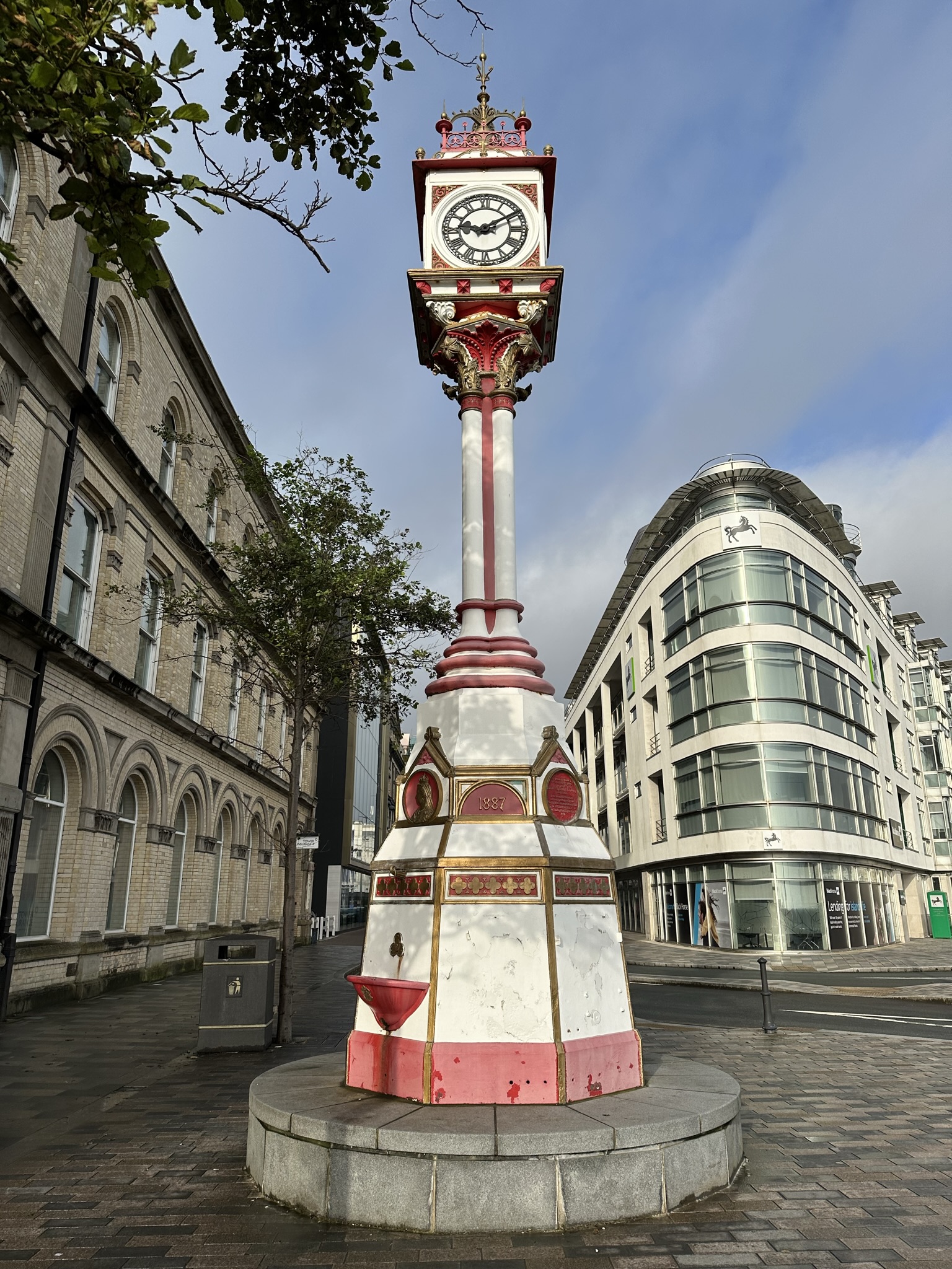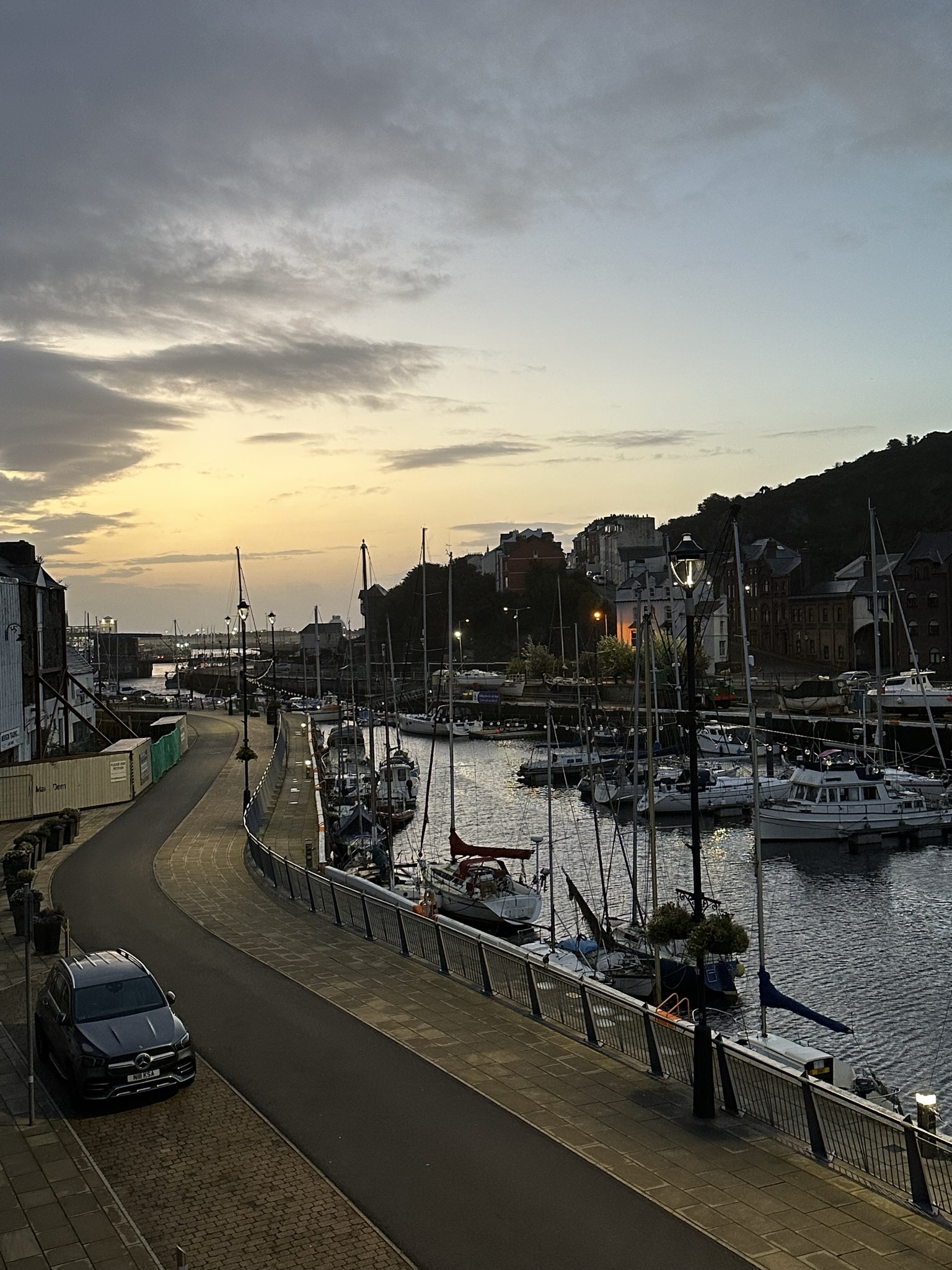 Douglas. The main port town has a beautiful promenade and beach with Victorian era buildings lining the seaside road and a fabulous opera house. Blocks off of the promenade are rows of, primarily pedestrian, streets with shops, bars and restaurants. We stayed quayside just down from the ferry docks.