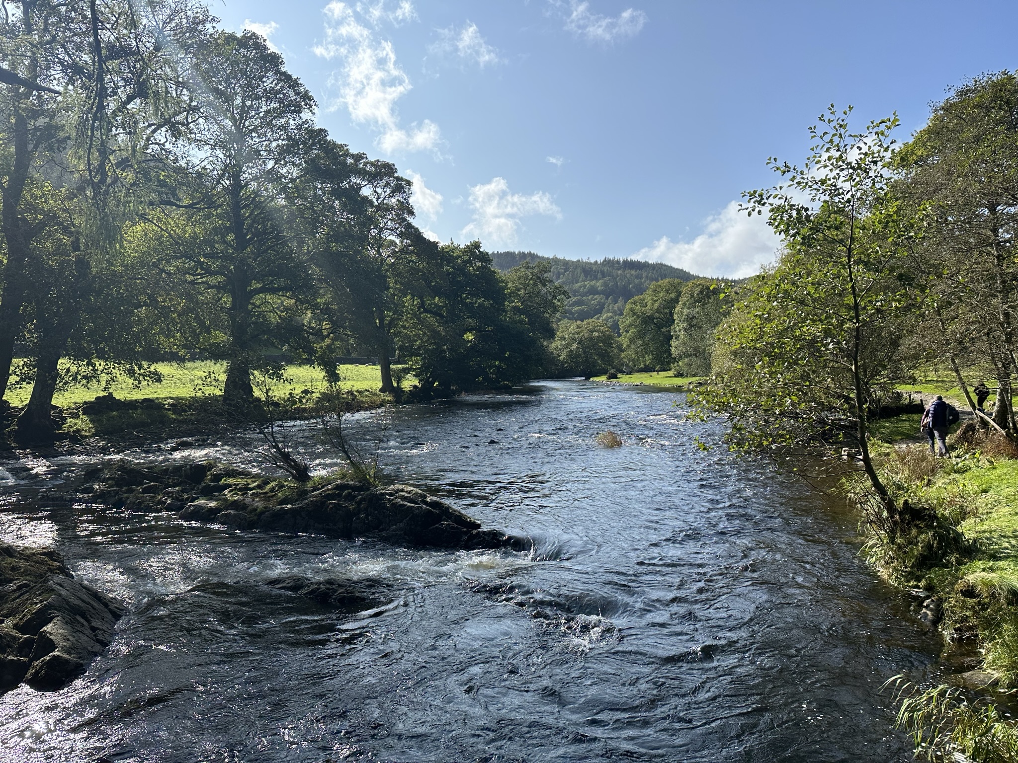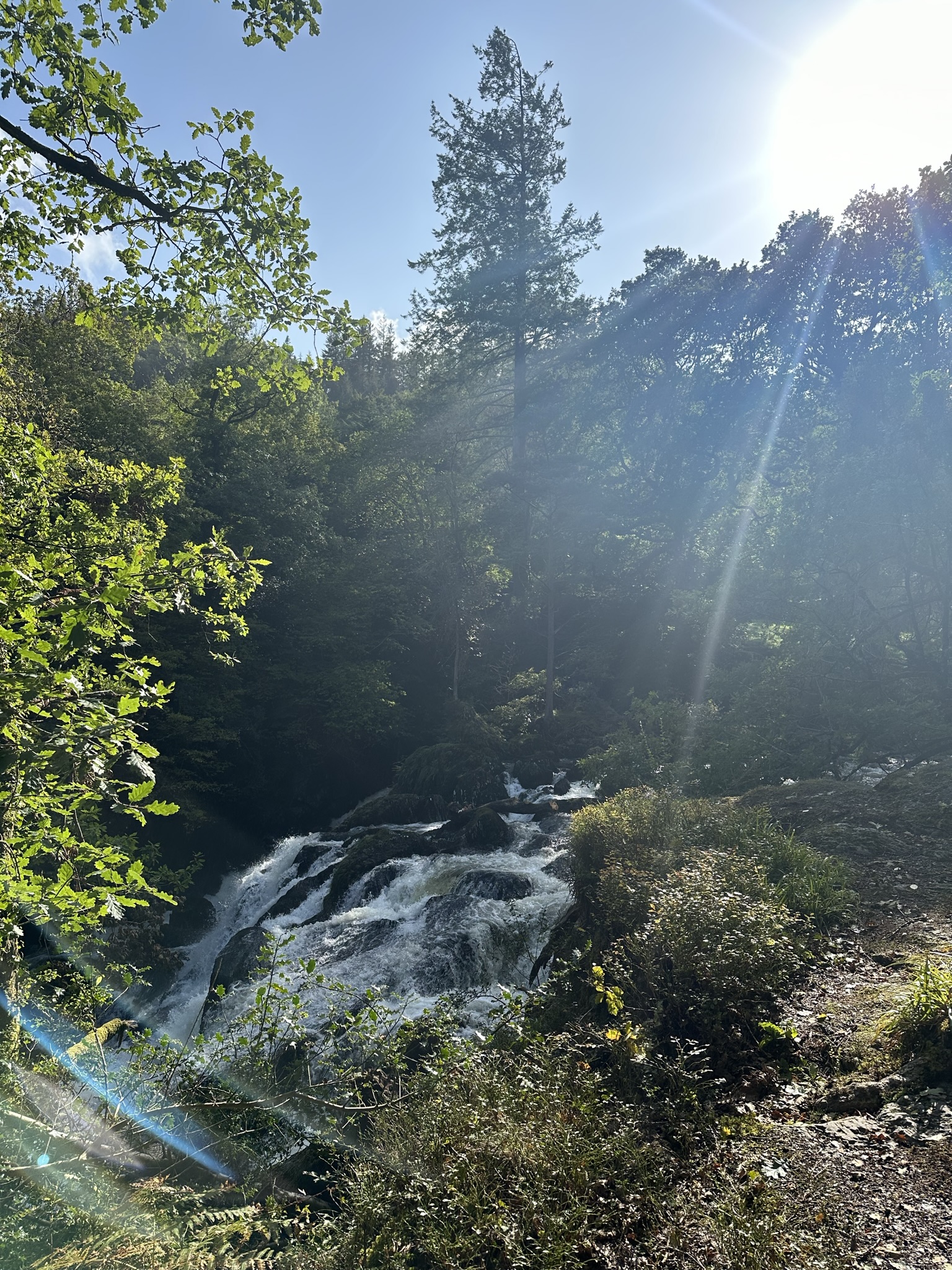 I chose a hike to Swallow Falls to ring in autumn mere days after the equinox. I’d looked into climbing Cader Idris but all the trails I could find on AllTrails were rated as hard, even the ones my guidebook had said were the easiest ascents. Most descriptions and reviews described scrambles, really really steep inclines and scree. One even said: “do not attempt”, not exactly a ringing endorsement. After my experiences in the Scottish Highlands and on the Isle of Skye climbing AllTrails “hard”-rated trails and with wind and a slight chance of rain in the forecast (the wind materialized, the rain did not), I opted for something mellower and rated “moderate”. AllTrails needs a rating beyond hard, in my humble, something like “hard with some moments of terror”. Just a suggestion.