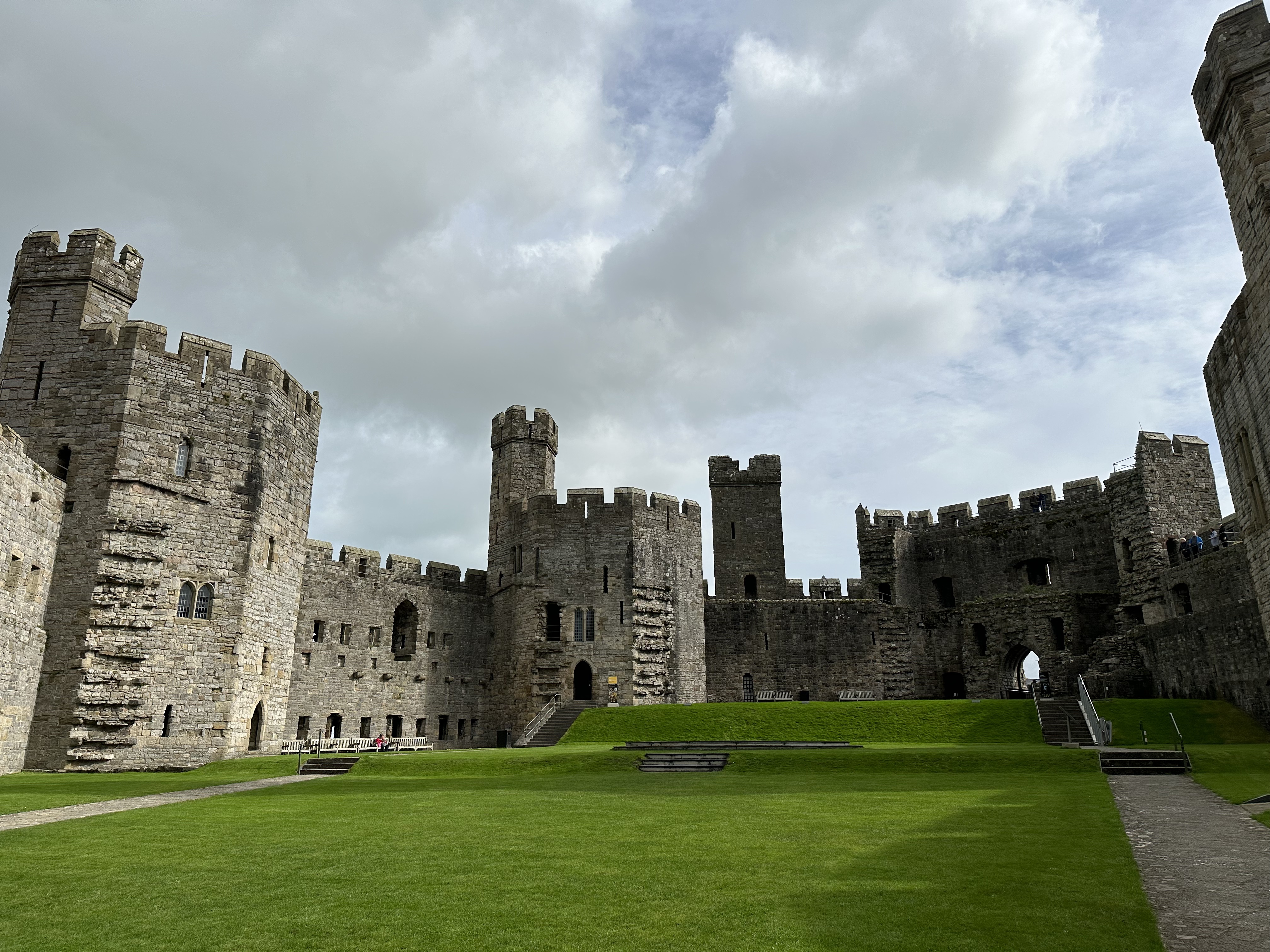Caernarfon was built to, essentially, be impenetrable. The main gate, the King’s Gate had two drawbridges, five sets of doors, six portcullises, murder holes (through which hot sand was dropped to sift into chain mail, ouch), arrow slots and right angles. It withstood many uprisings and attacks, but was overtaken in 1294 by the Welsh, only to be taken back one year later by Edward who then built the aforementioned defense system to prevent it from being taken again.