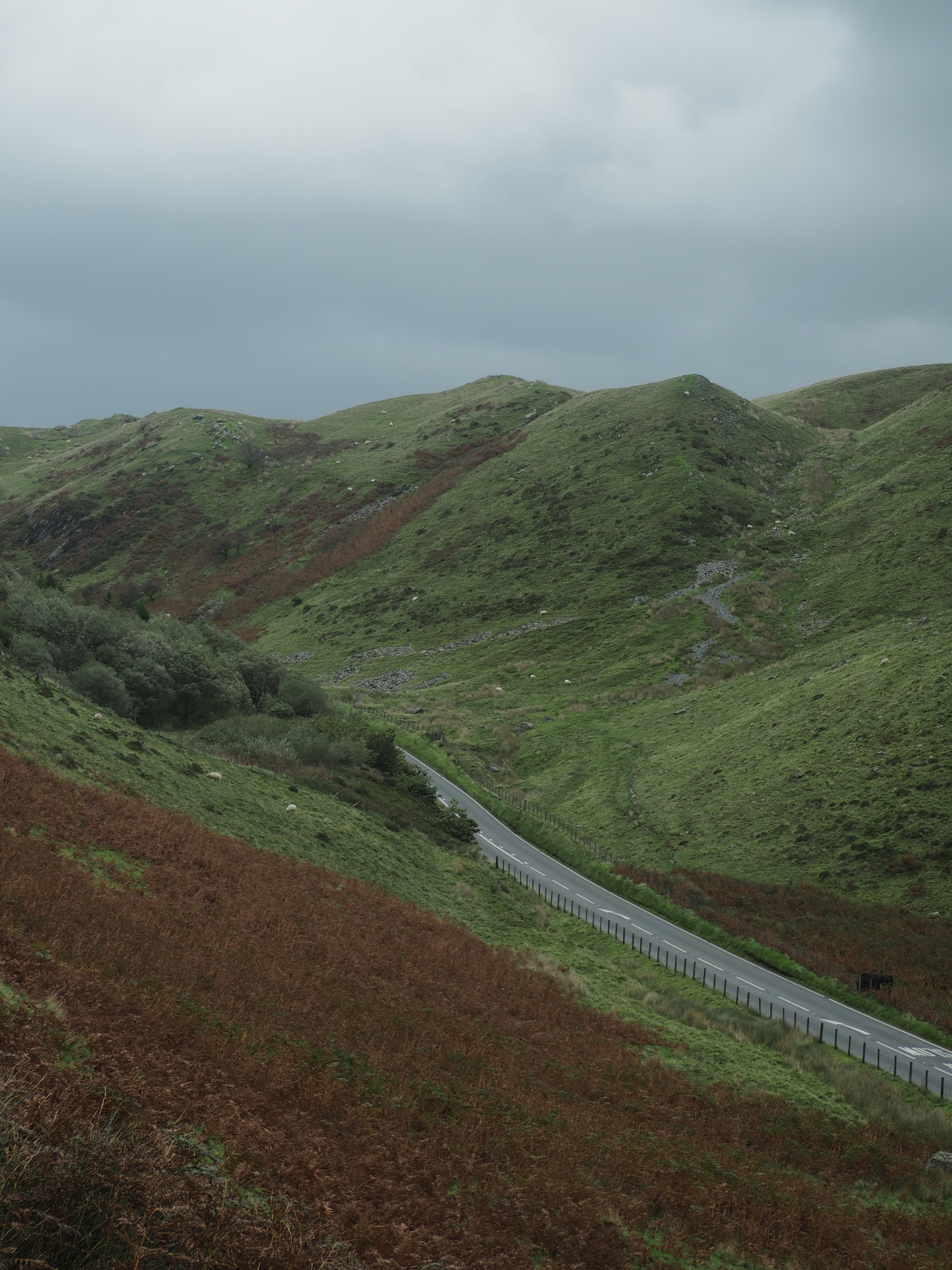 As we left northern Wales and drove south along the western perimeter of Snowdownia, we were treated to one of the most beautiful drives we’ve taken on this trip and maybe ever. Impossibly green fields with reddish-orange bushes run up to tall stone mountains as you wind through valleys, up over passes and into little stone Welsh villages. Spectacular. Pictures really don’t do it justice.