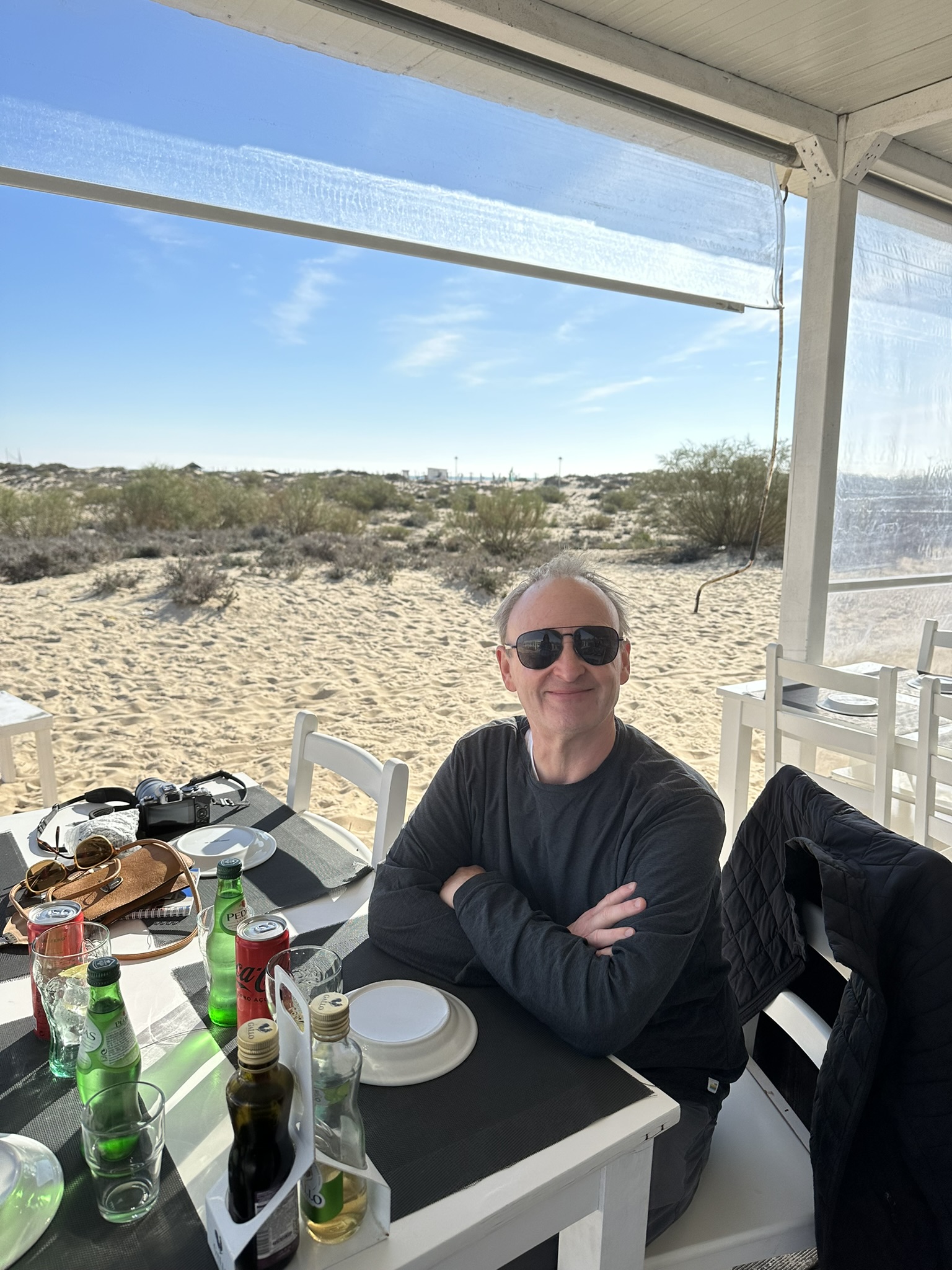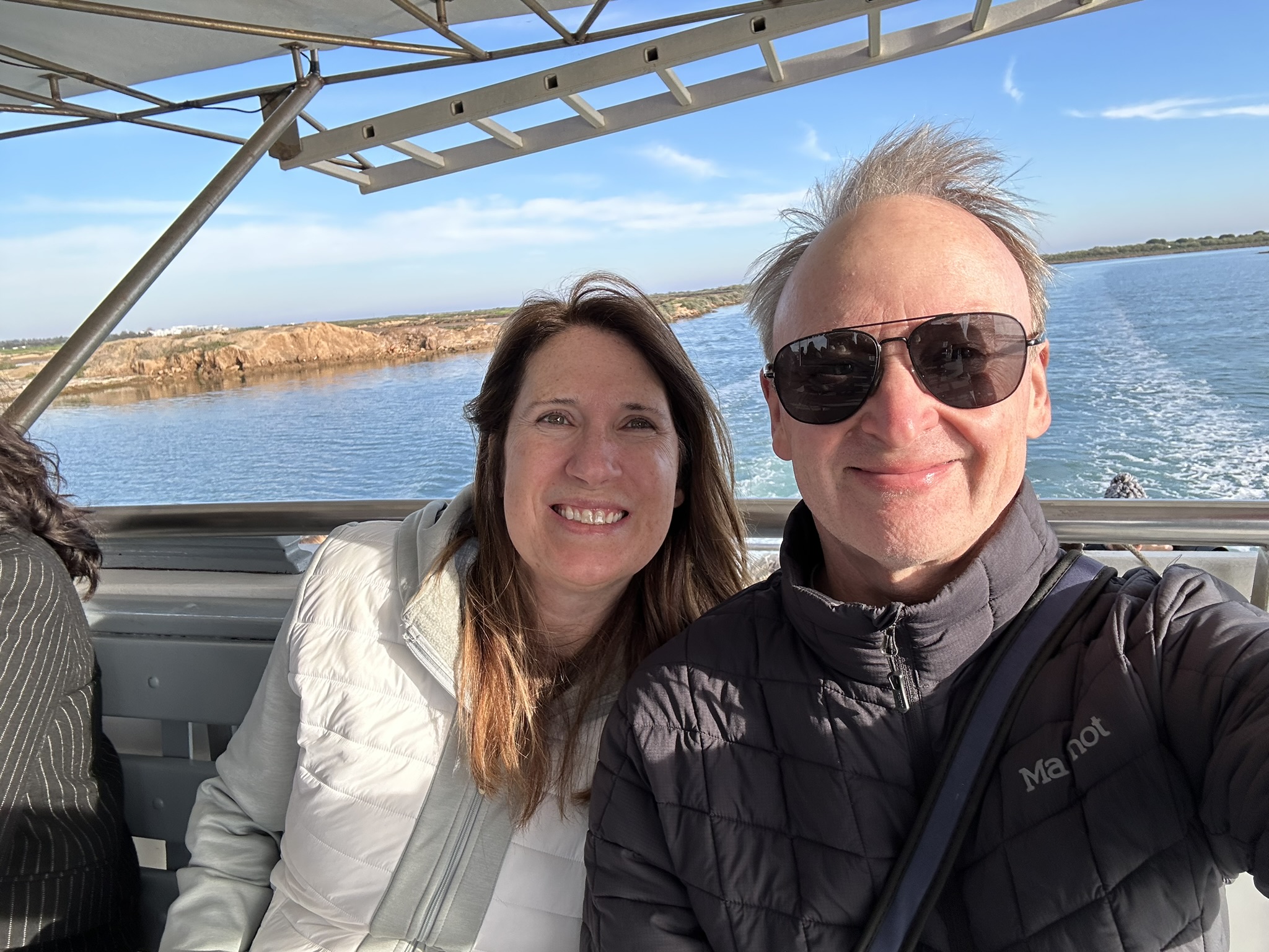 After the museum, we hit the short (and inexpensive) ferry ride to the Ilha de Tavira for a stroll on its remote (and unpopulated on a late December mid-weekday) stretch of beach before turning back towards town and stopping off for lunch at one of the two open restaurants on this offseason day and catching sight of some wading flamingos on the return boat ride.
